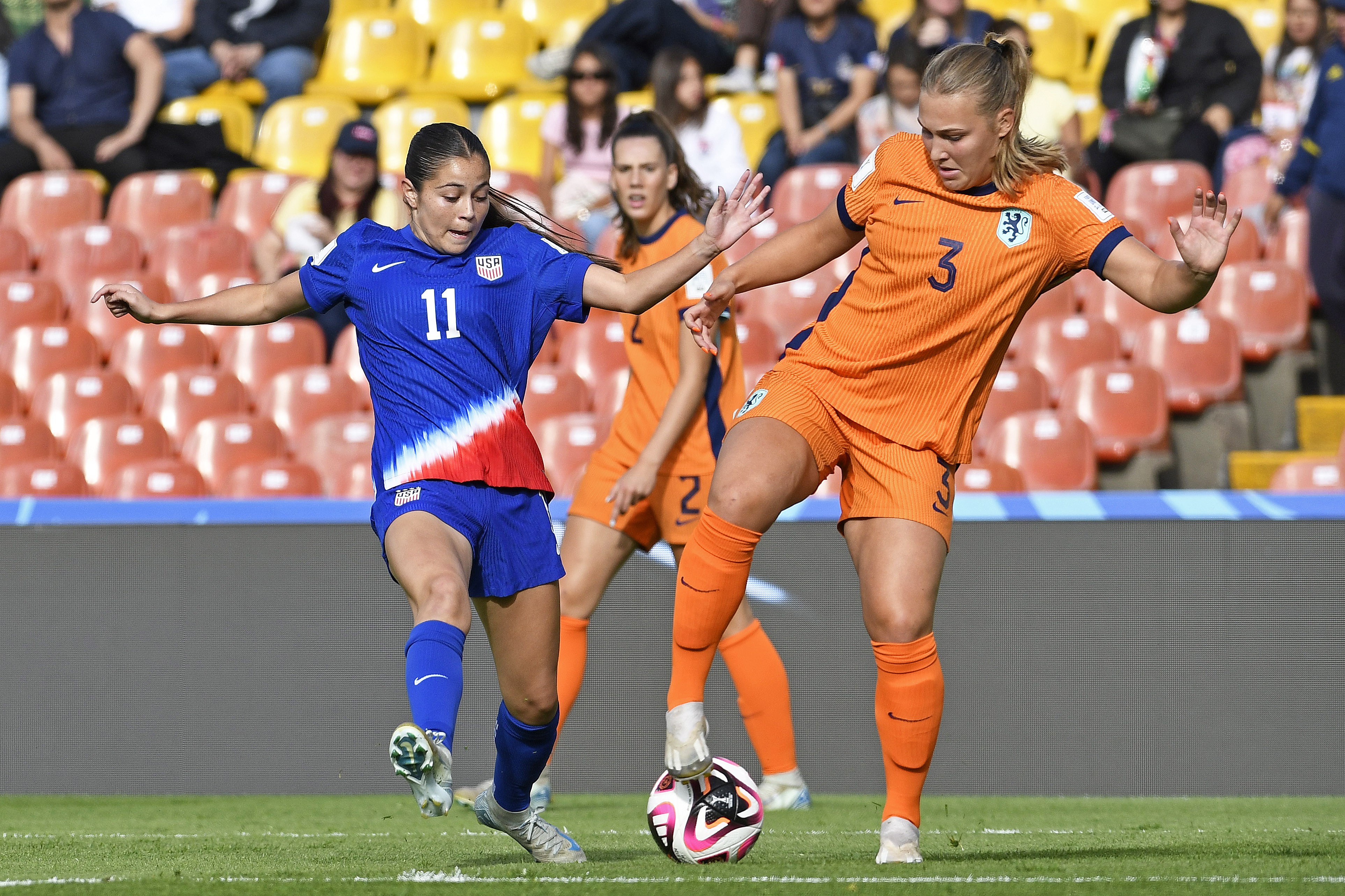 De Ridder in duel met de Verenigde Staten op het WK Onder 20 in Colombia.