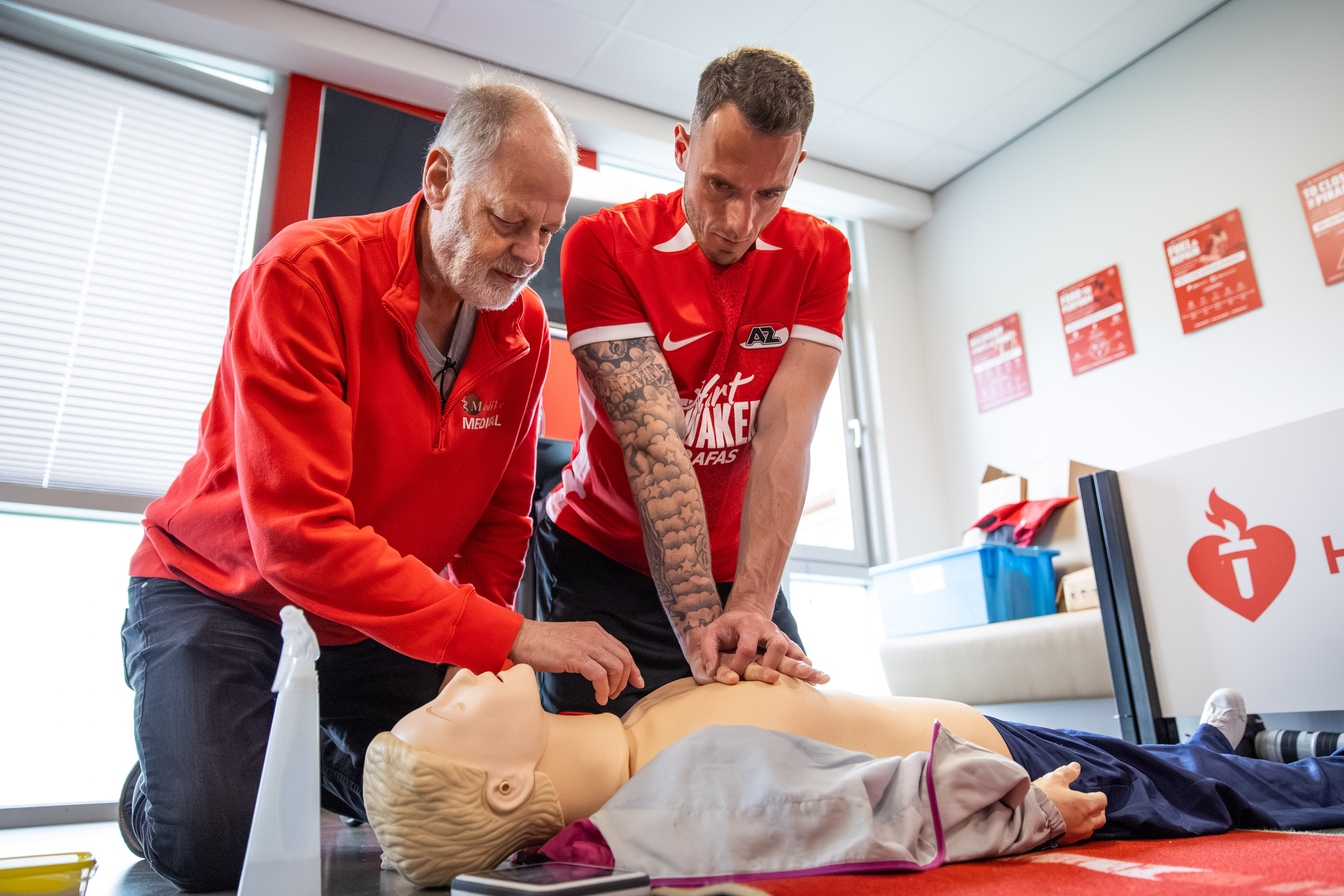 De spelers en staf van het eerste elftal van AZ waren de eersten die binnen deze campagne een reanimatiecursus aangeboden kregen. Op het AFAS Trainingscomplex begon het educatieve programma met een korte introductie over het belang van levensreddende vaardigheden (binnen de voetbalwereld) en een uitleg van de zes stappen van reanimatie. Vervolgens mochten de spelers zelf oefenen met het geven van borstcompressies en het noodzakelijke gebruik van de AED op speciale poppen. Snelheid is hierbij van cruciaal belang, omdat bij een hartstilstand iedere seconde telt. Door snel en kundig te reanimeren en een AED te gebruiken, wordt de overlevingskans aanzienlijk verhoogd.