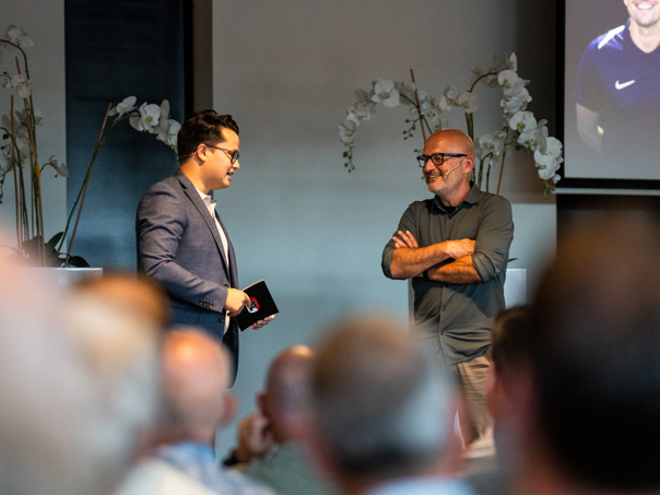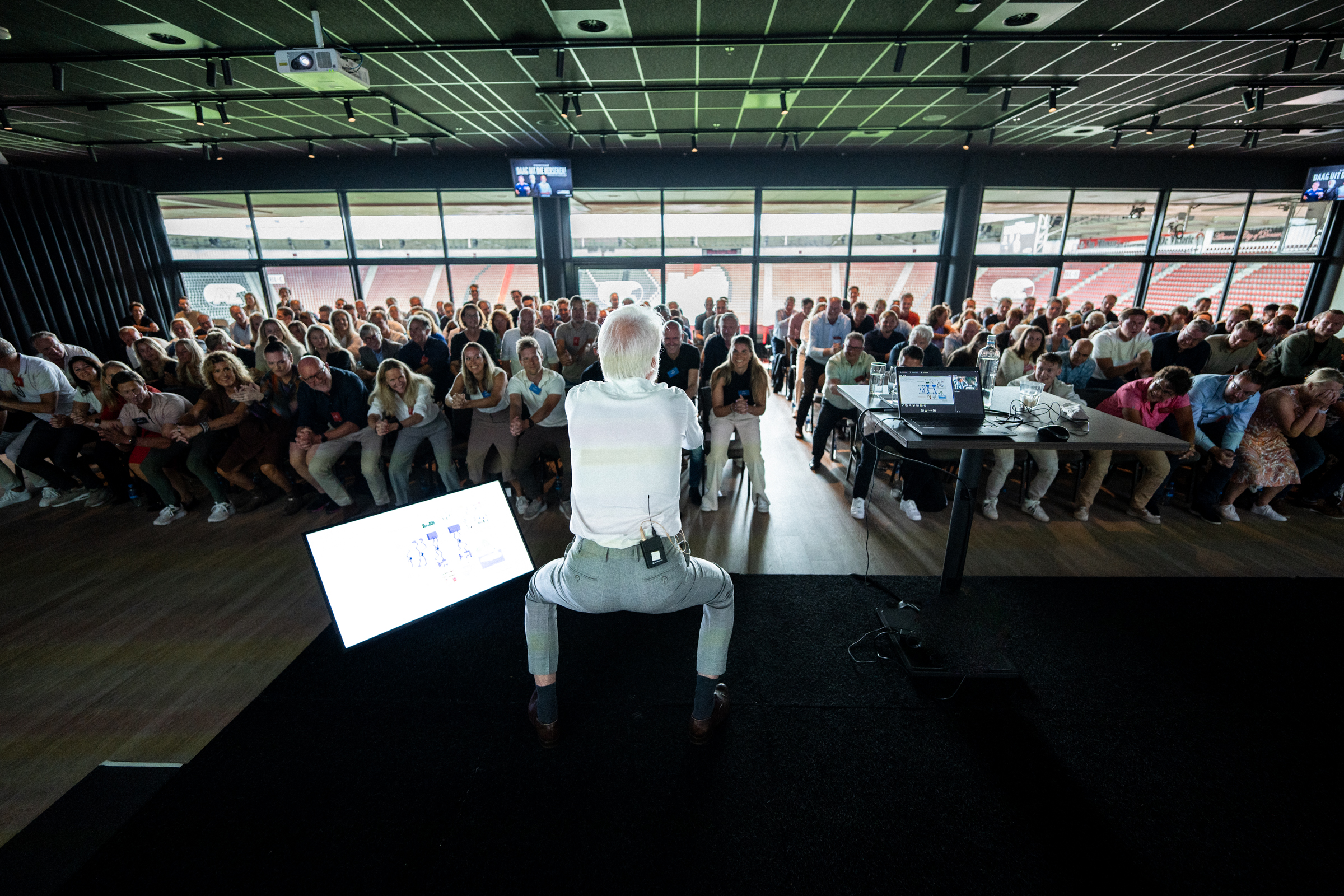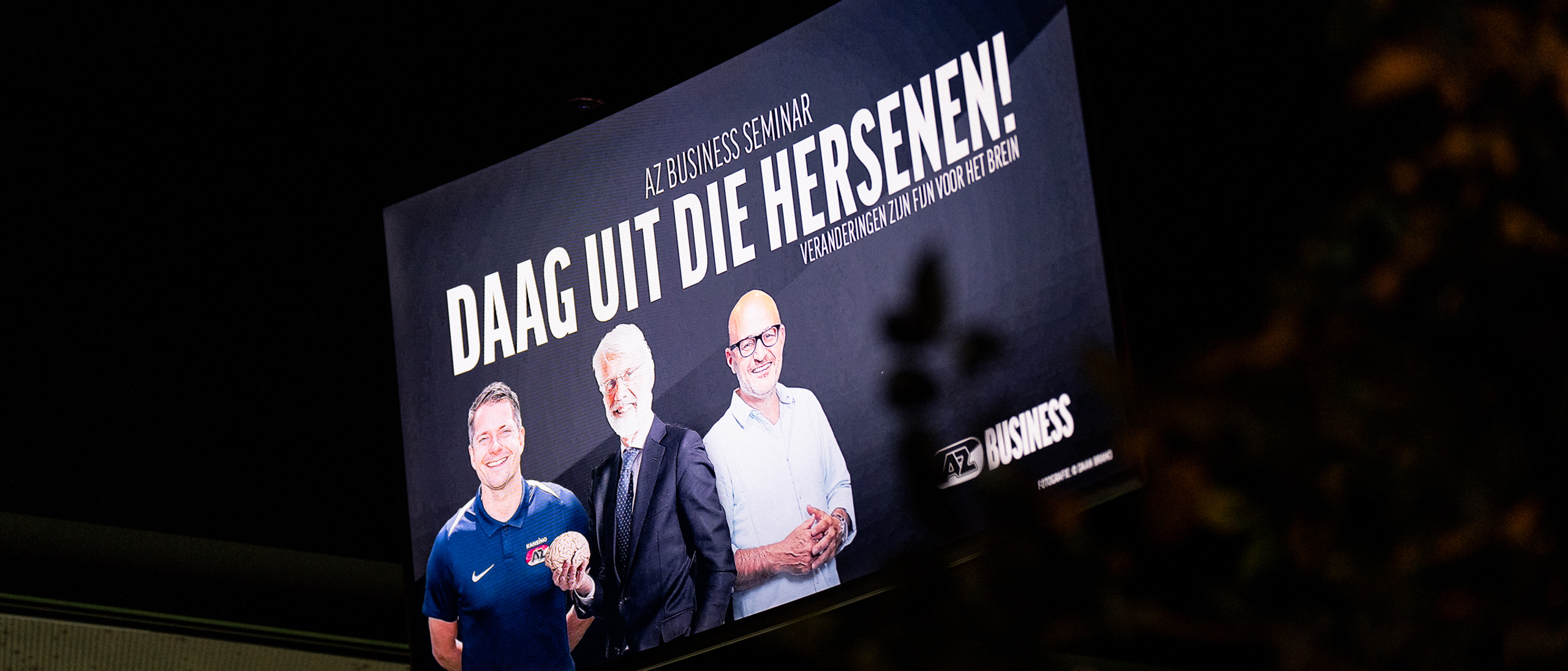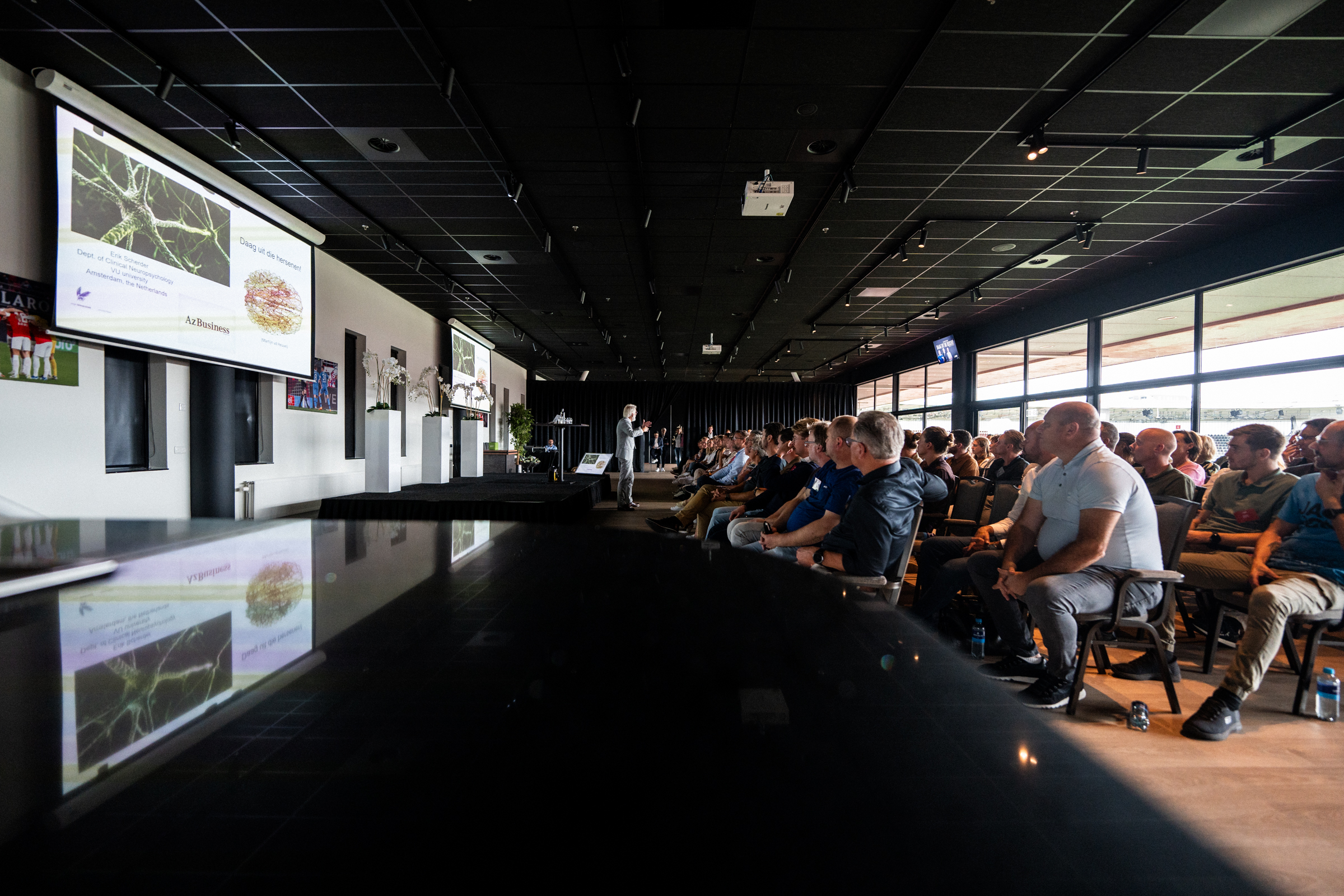 ALKMAAR- AZ organiseerde woensdagmiddag het business seminar 'Daag uit die hersenen'. In het AFAS Stadion deelden hoogleraar neuropsychologie Erik Scherder, AZ’s Hoofd Topsportbegeleiding Bart Heuvingh en topsportpsycholoog en voetbalvader Remco Koopmeiners hun inzichten over gedragsverandering. Bekijk hieronder het beeldverslag van Gijs Ferkranus.