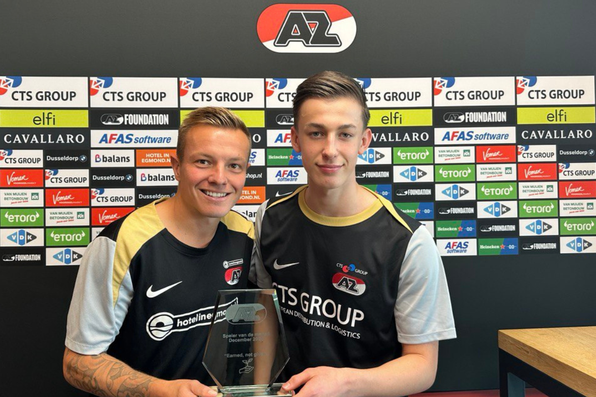 ZAANSTAD- Op het AFAS Trainingscomplex werden dinsdagmiddag drie talenten uit de AZ Jeugdopleiding gehuldigd als Speler van de Maand. Milo Kadyla (Onder 16), Rayan Zekri (Onder 17) en Merijn van Dijk (Onder 15) werden niet alleen gehuldigd, maar mochten ook in gesprek met een speler van het eerste elftal. Op basis van hun positie kozen zij voor Jordy Clasie, Ruben van Bommel en Sven Mijnans. De jeugdspelers deelden hun ervaring met AZ Media.