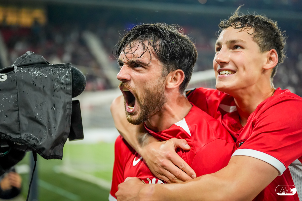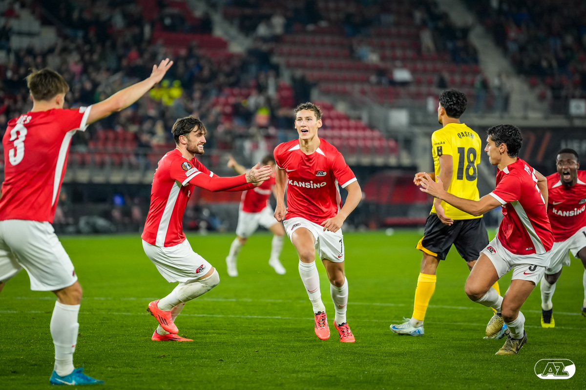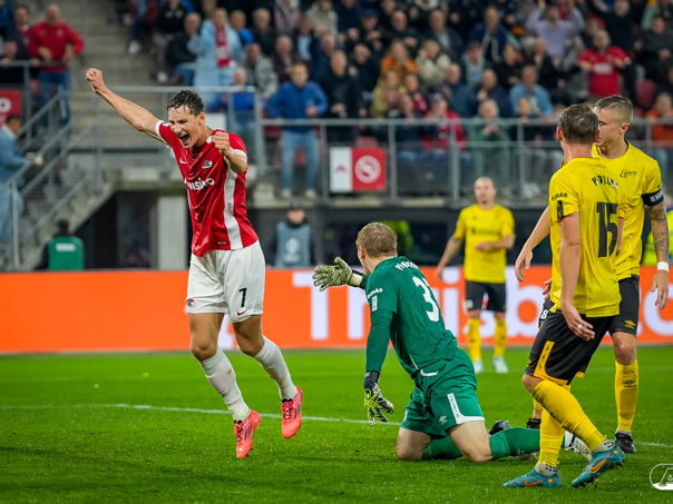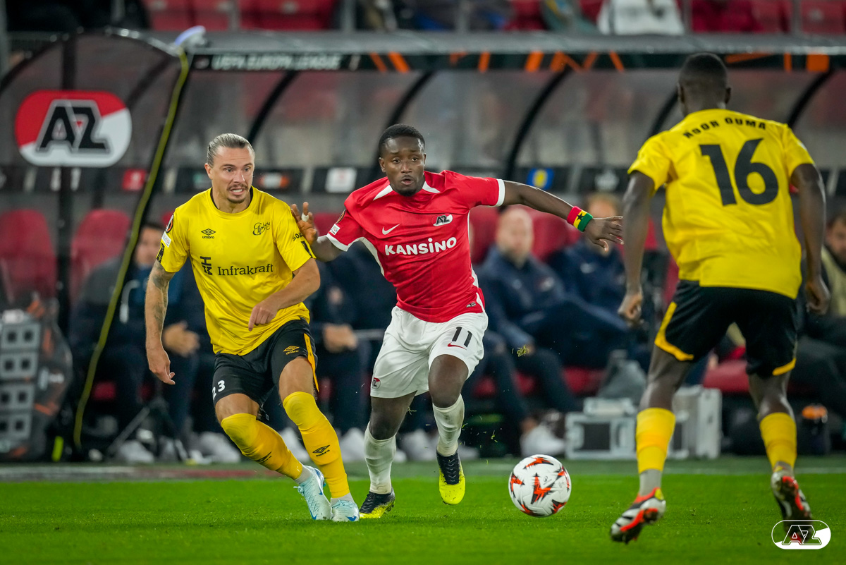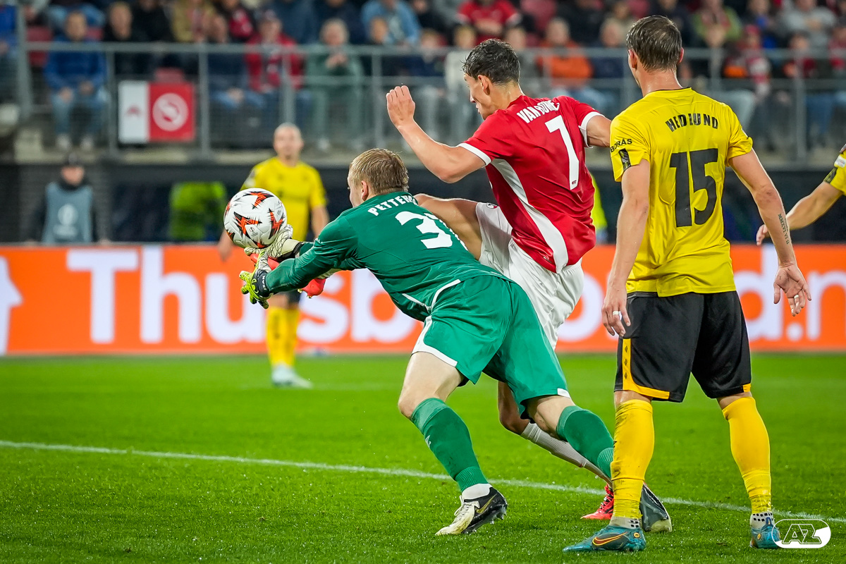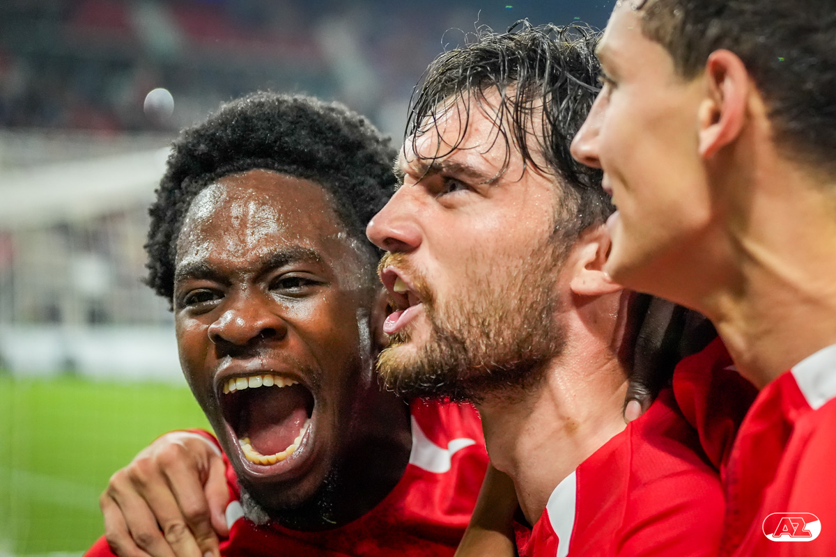 ALKMAAR- AZ begon het Europa League-seizoen met een overwinning op IF Elfsborg. In de honderdste Europese thuiswedstrijd eindigde een strijdlustig duel in 3-2. De doelpuntenmakers aan Alkmaarse zijde waren Ruben van Bommel (twee keer) en Troy Parrott. (Foto's: Ed van de Pol)