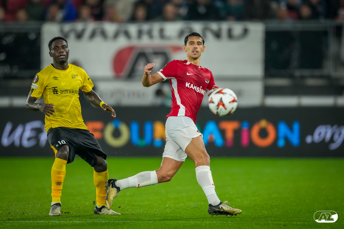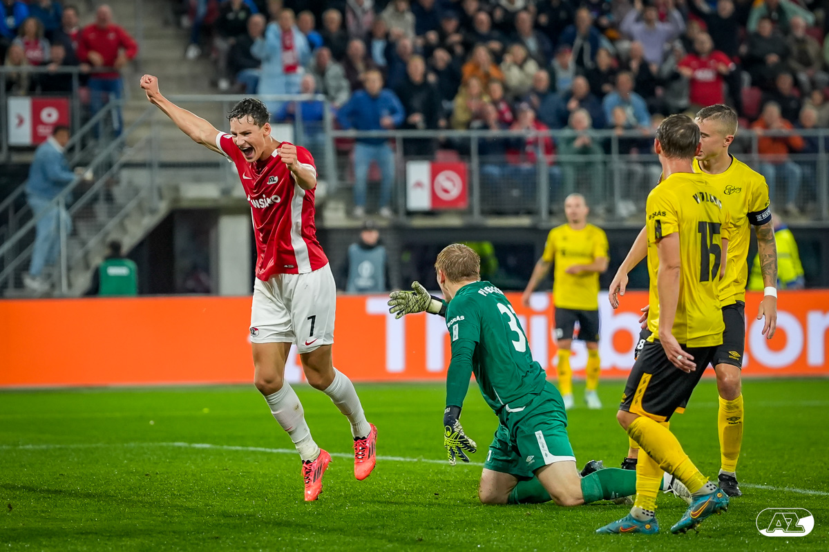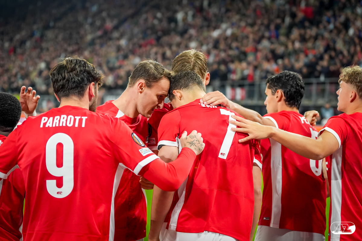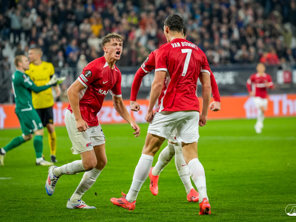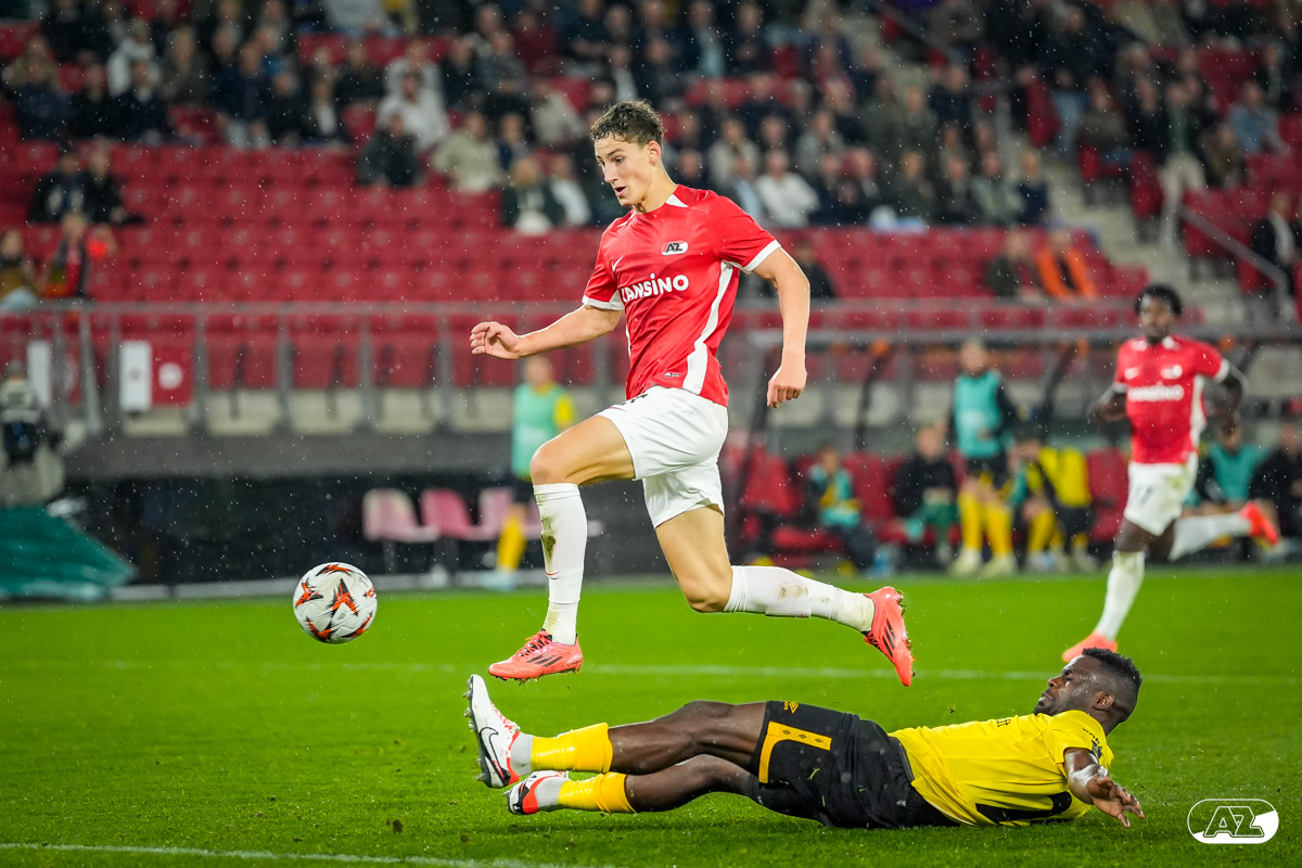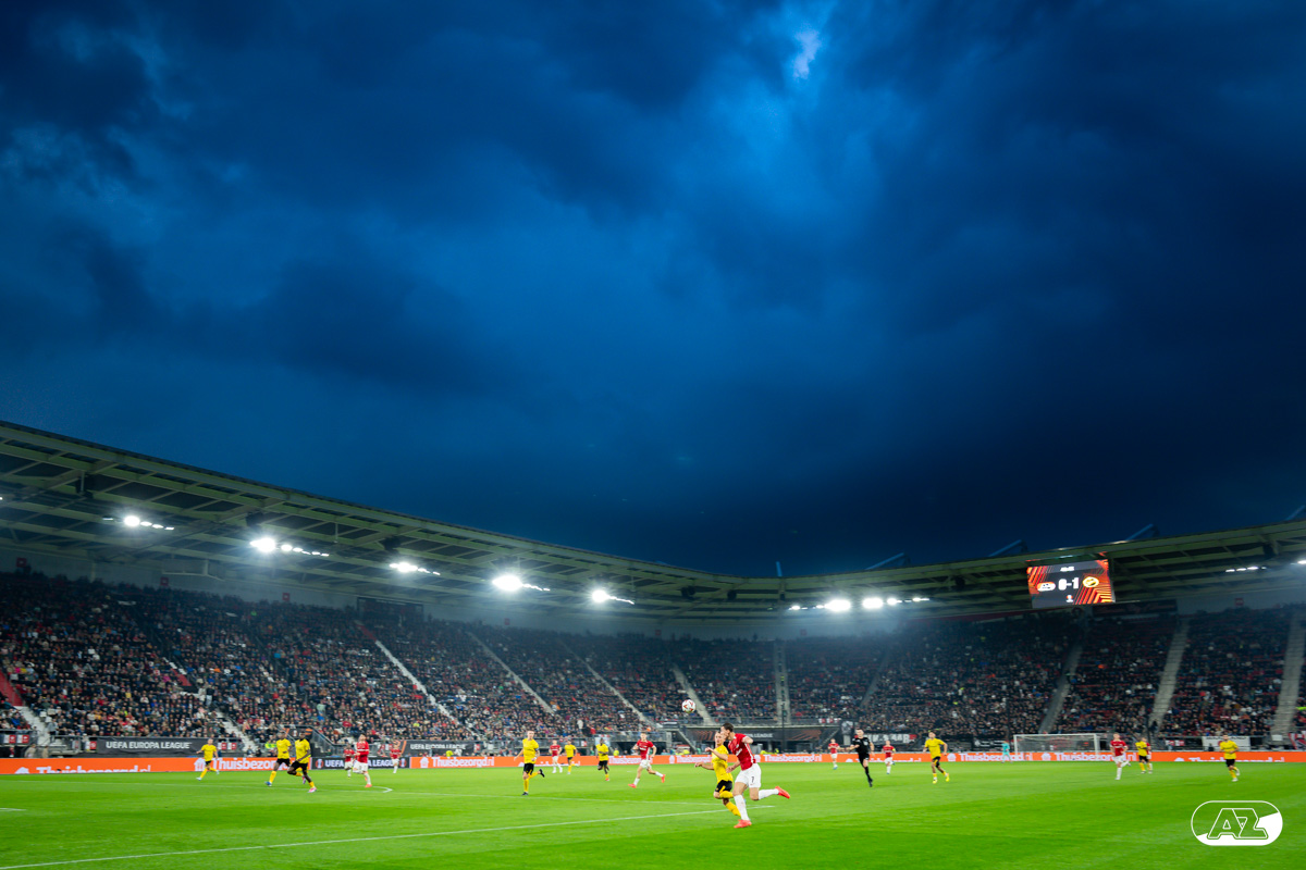ALKMAAR- AZ begon het Europa League-seizoen met een overwinning op IF Elfsborg. In de honderdste Europese thuiswedstrijd eindigde een strijdlustig duel in 3-2. De doelpuntenmakers aan Alkmaarse zijde waren Ruben van Bommel (twee keer) en Troy Parrott. (Foto's: Ed van de Pol)