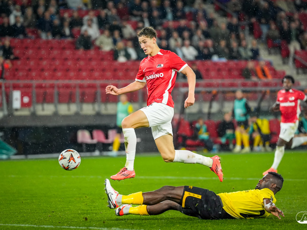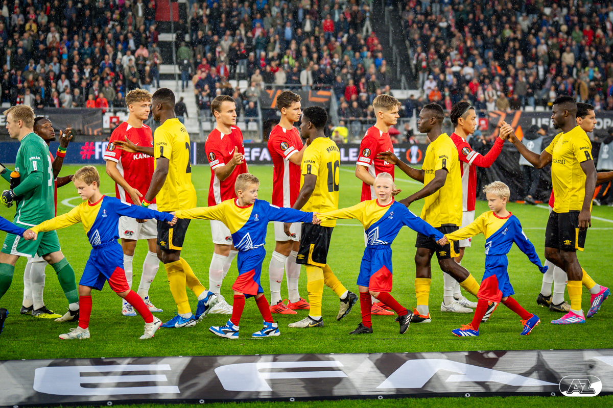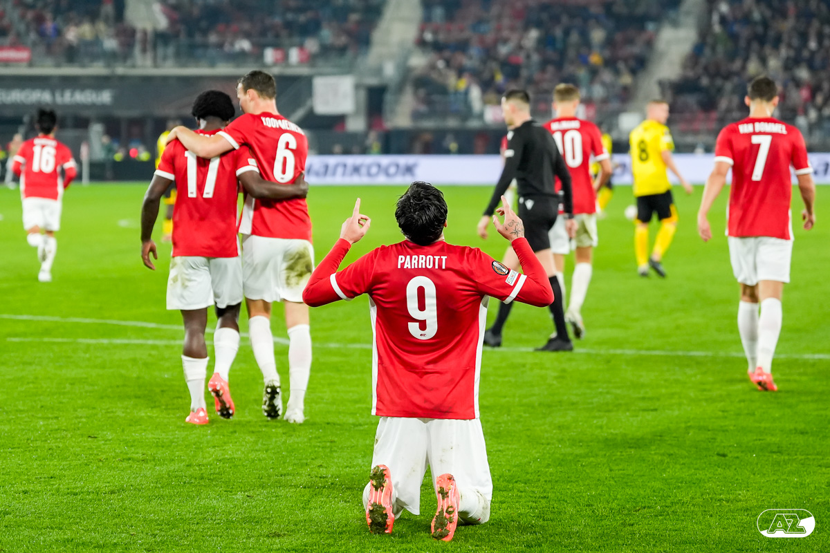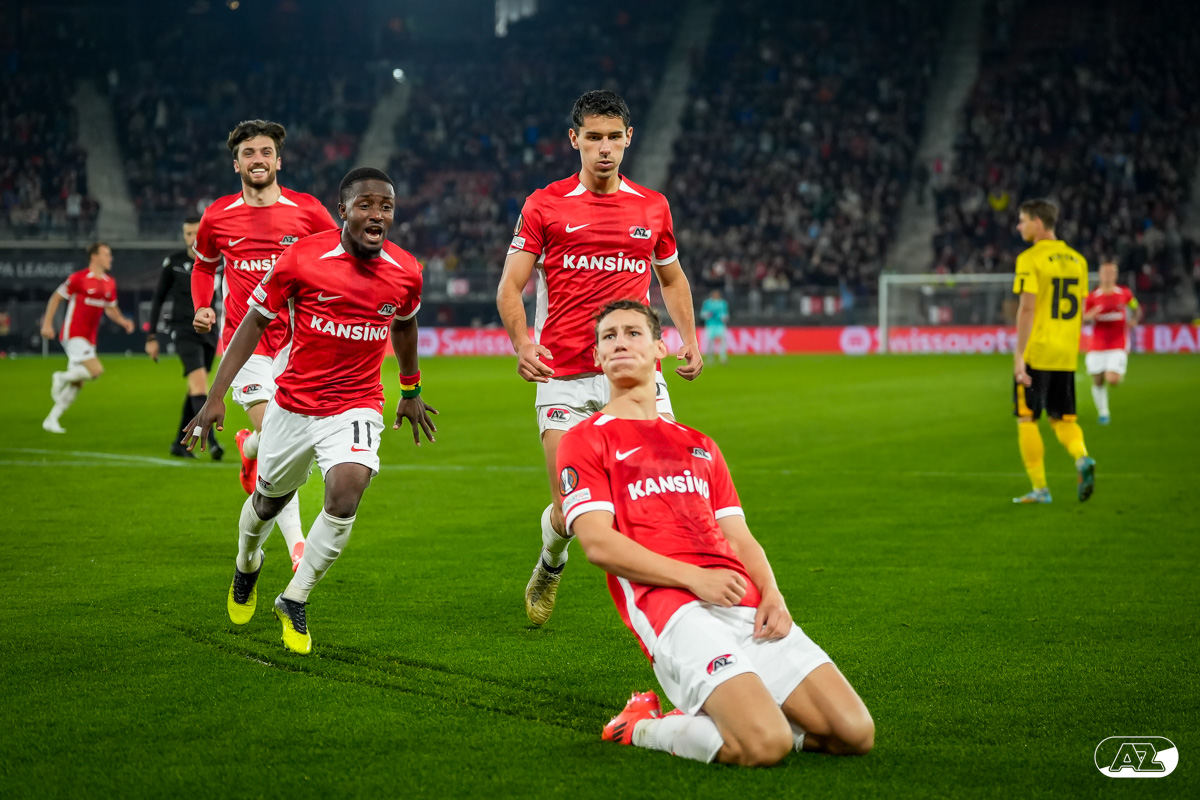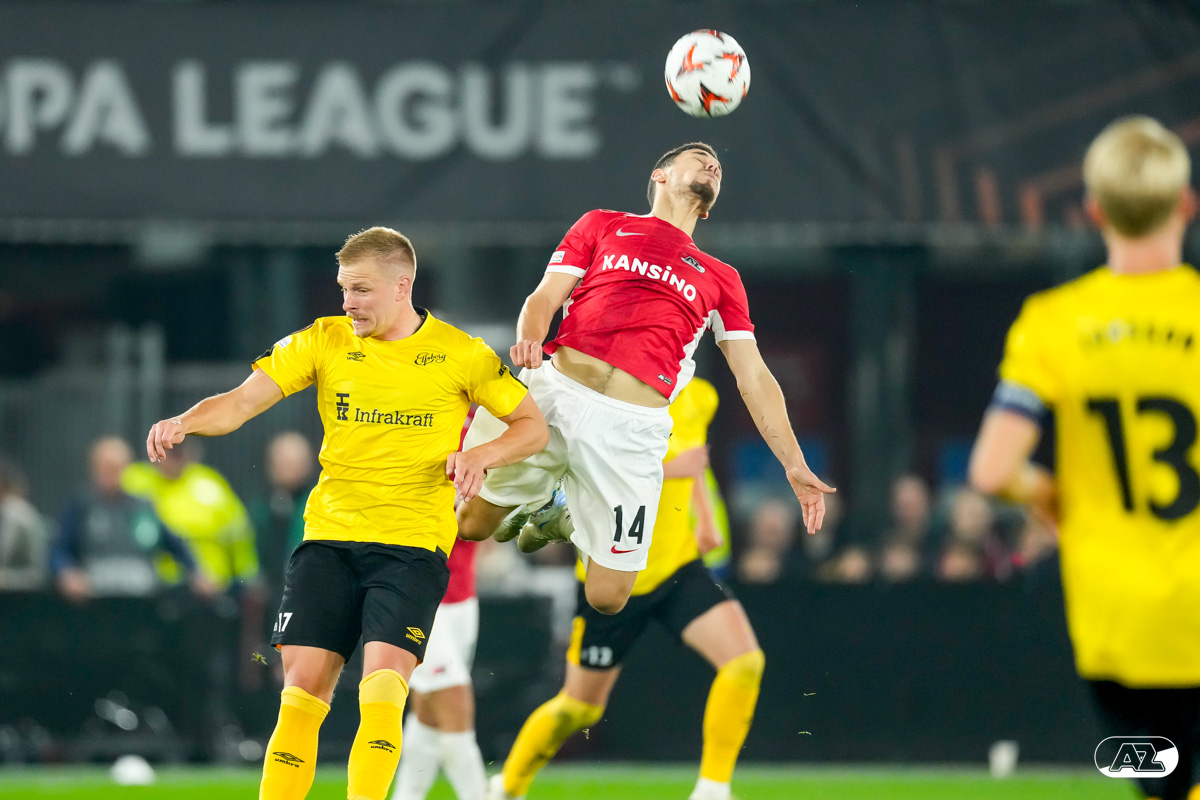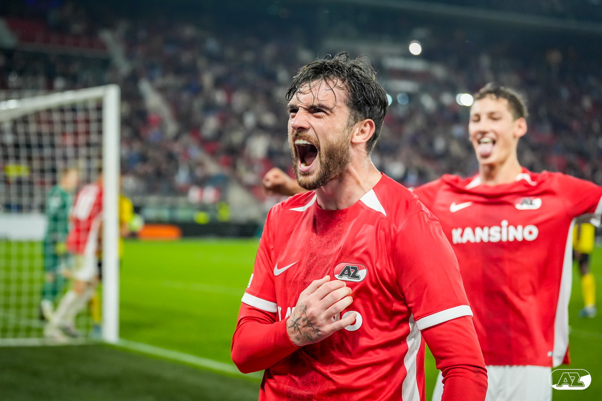 ALKMAAR- AZ begon het Europa League-seizoen met een overwinning op IF Elfsborg. In de honderdste Europese thuiswedstrijd eindigde een strijdlustig duel in 3-2. De doelpuntenmakers aan Alkmaarse zijde waren Ruben van Bommel (twee keer) en Troy Parrott. (Foto's: Ed van de Pol)