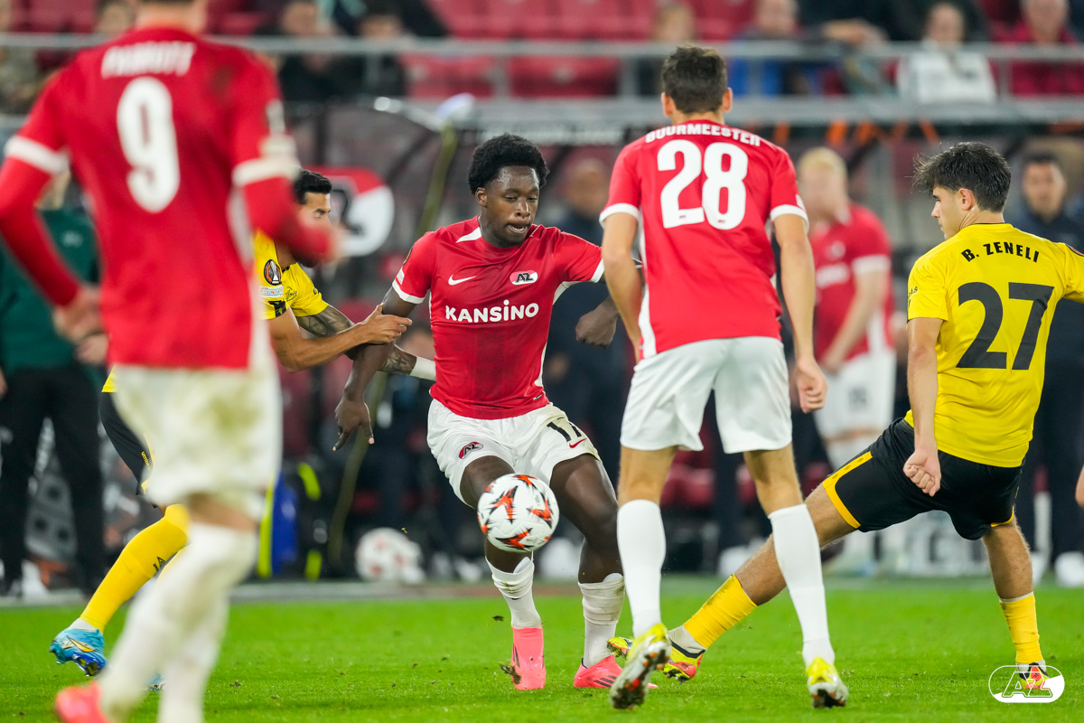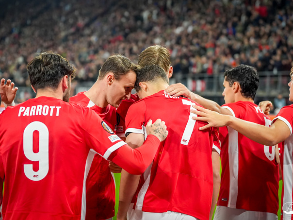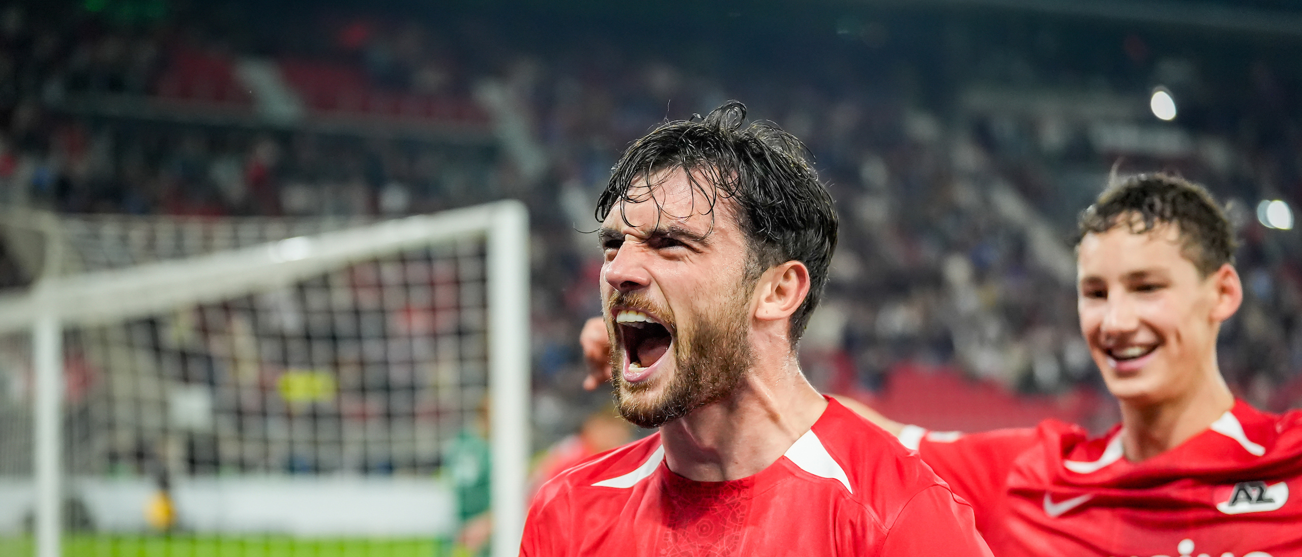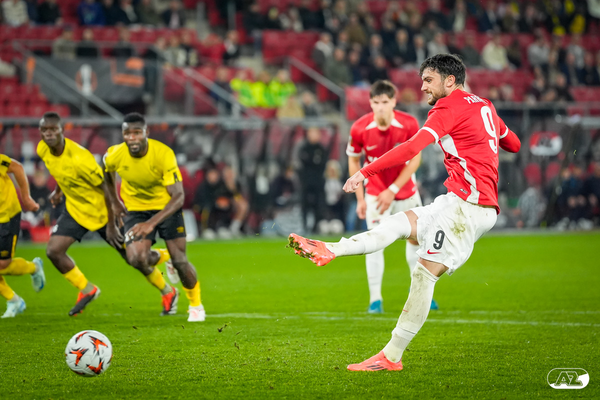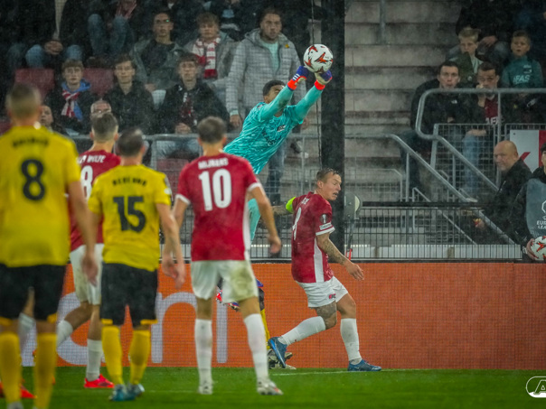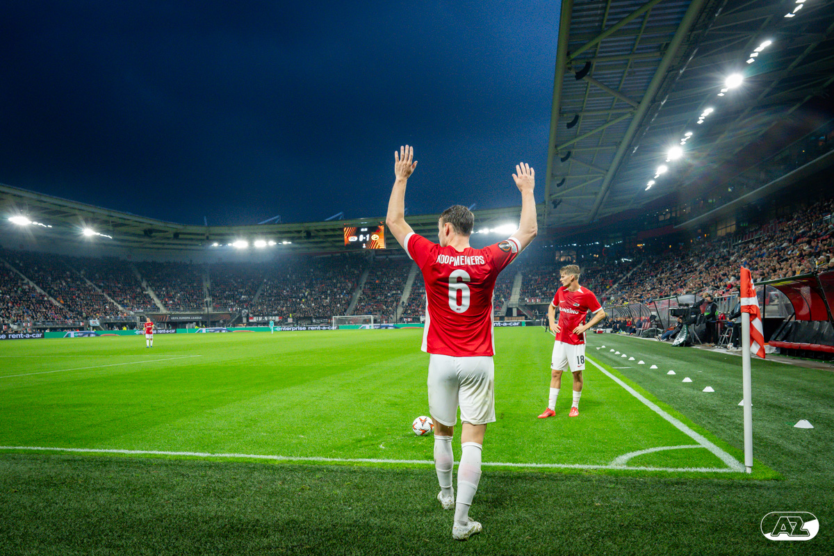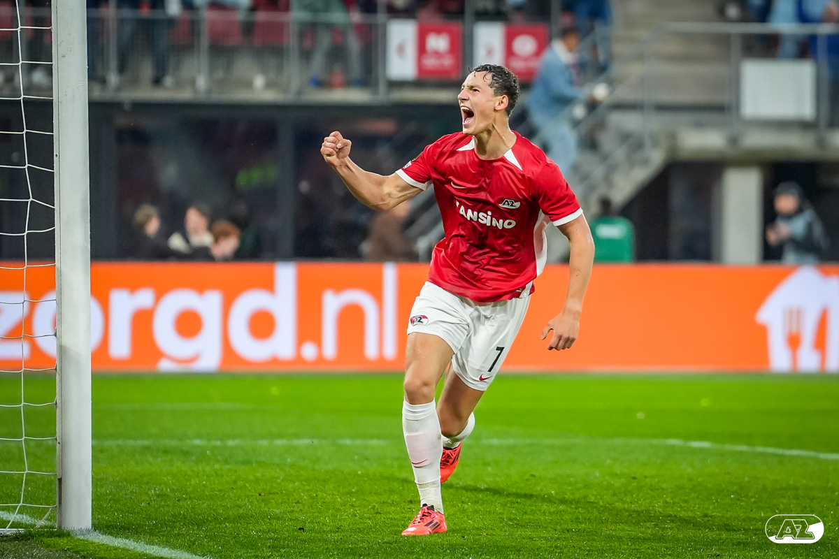 ALKMAAR- AZ begon het Europa League-seizoen met een overwinning op IF Elfsborg. In de honderdste Europese thuiswedstrijd eindigde een strijdlustig duel in 3-2. De doelpuntenmakers aan Alkmaarse zijde waren Ruben van Bommel (twee keer) en Troy Parrott. (Foto's: Ed van de Pol)