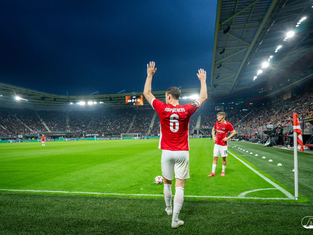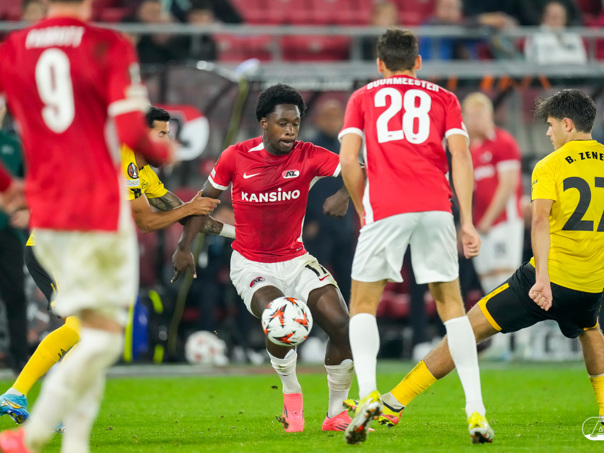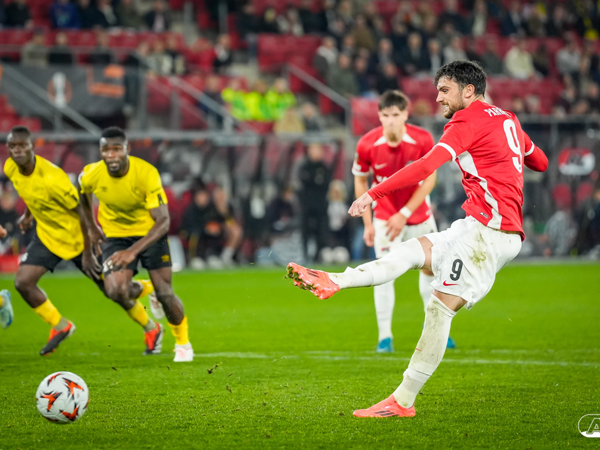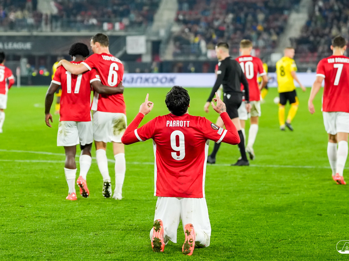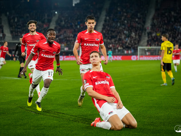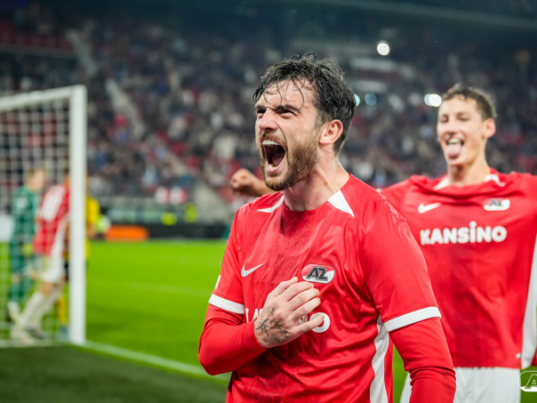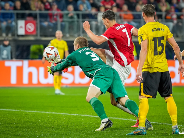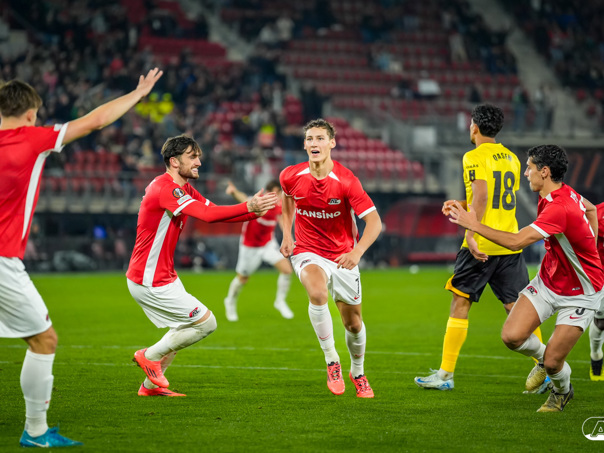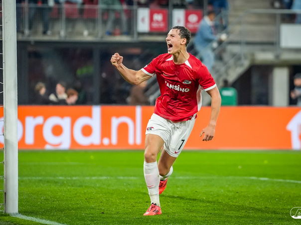 ALKMAAR- AZ begon het Europa League-seizoen met een overwinning op IF Elfsborg. In de honderdste Europese thuiswedstrijd eindigde een strijdlustig duel in 3-2. De doelpuntenmakers aan Alkmaarse zijde waren Ruben van Bommel (twee keer) en Troy Parrott. (Foto's: Ed van de Pol)