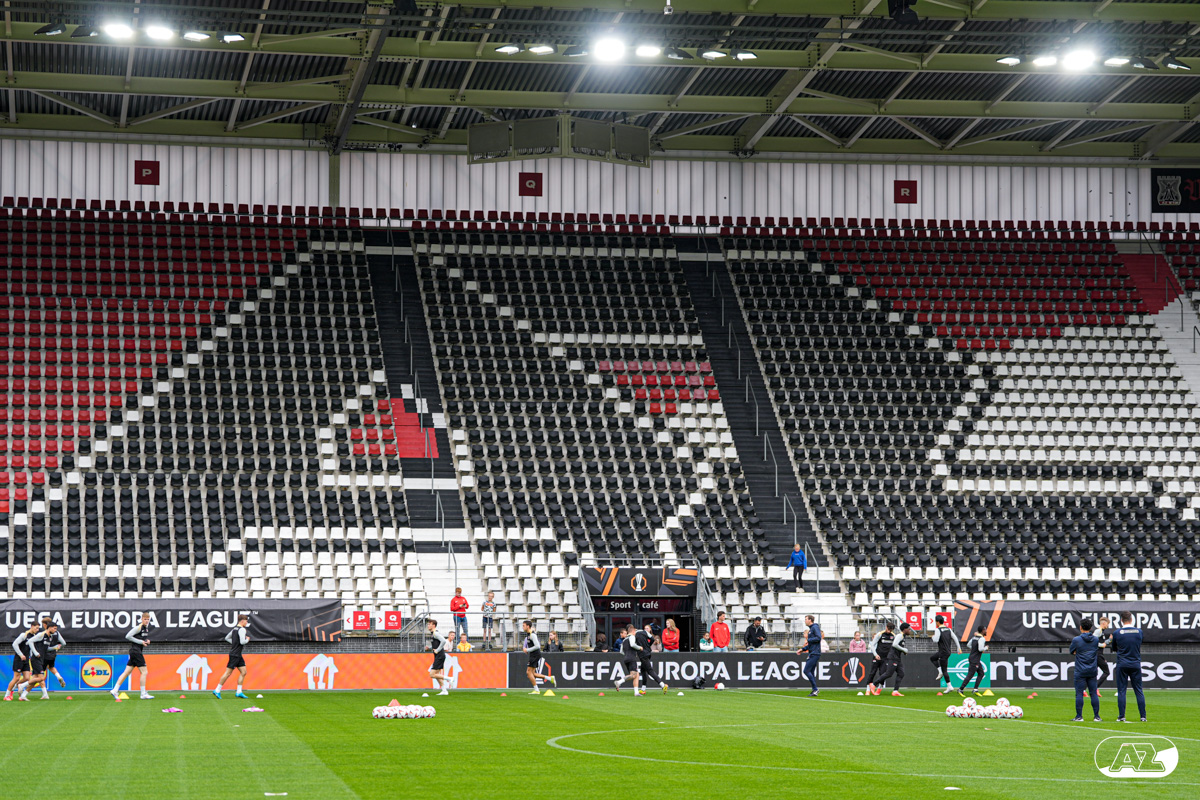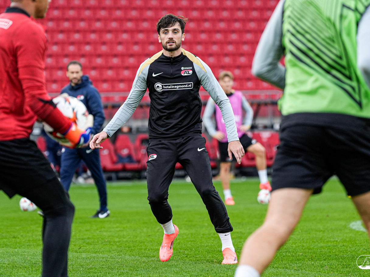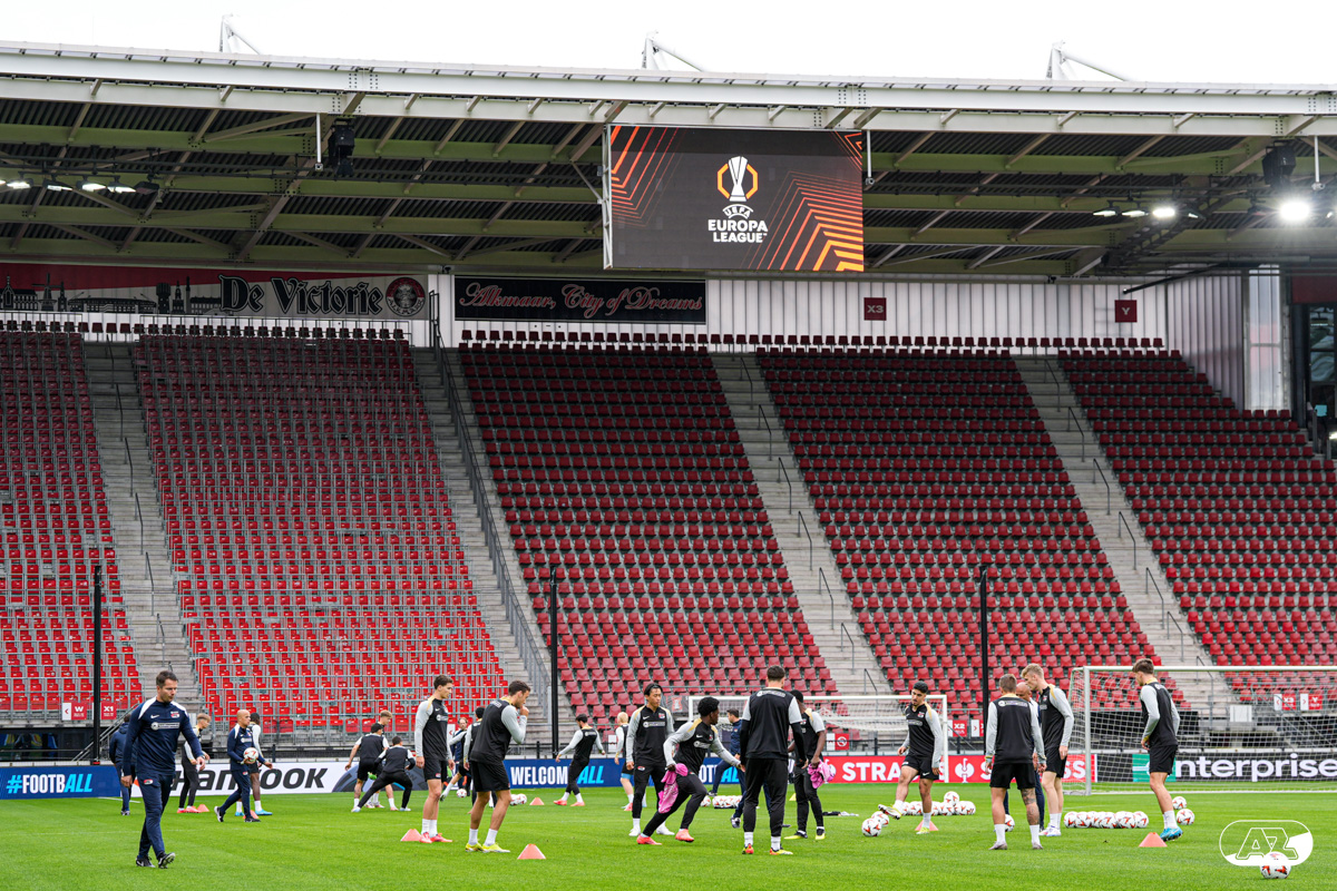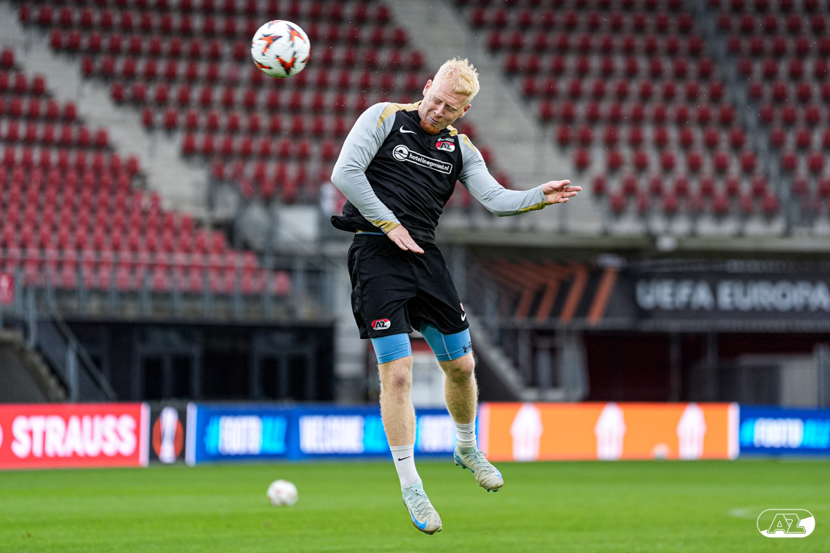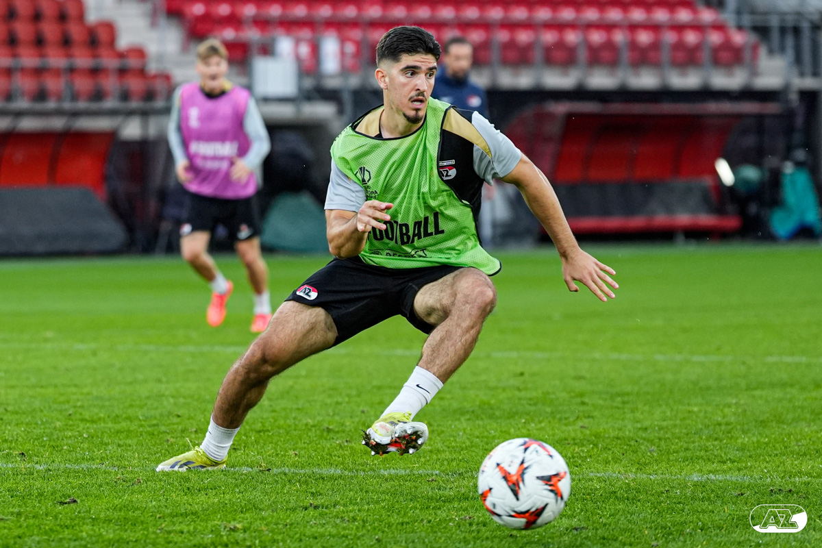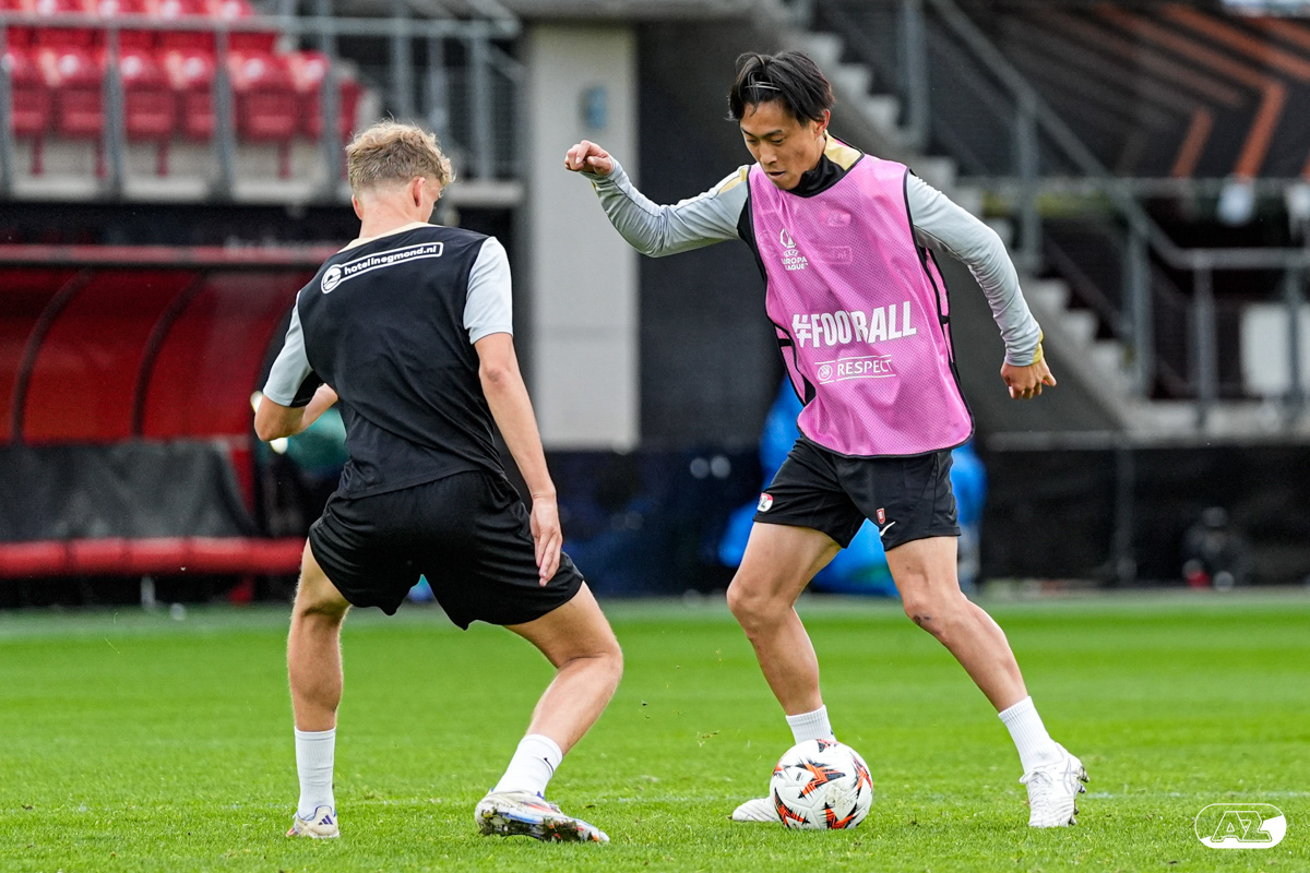 ALKMAAR- AZ staat woensdagavond in de UEFA Europa League tegenover het Zweedse IF Elfsborg. In het AFAS Stadion werkte de ploeg van trainer Maarten Martens dinsdagmiddag toe naar het honderdste Europese thuisduel. De training in beeld. (Foto's: Ed van de Pol)