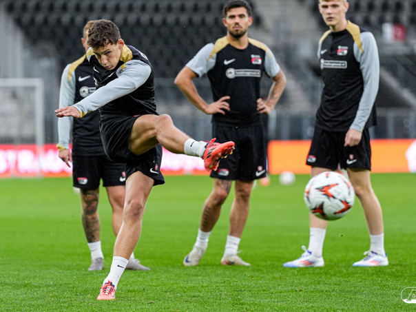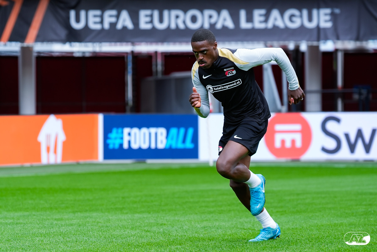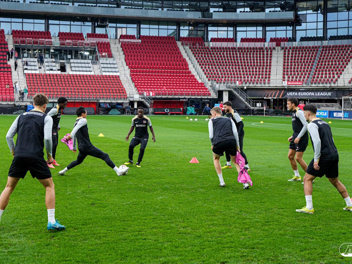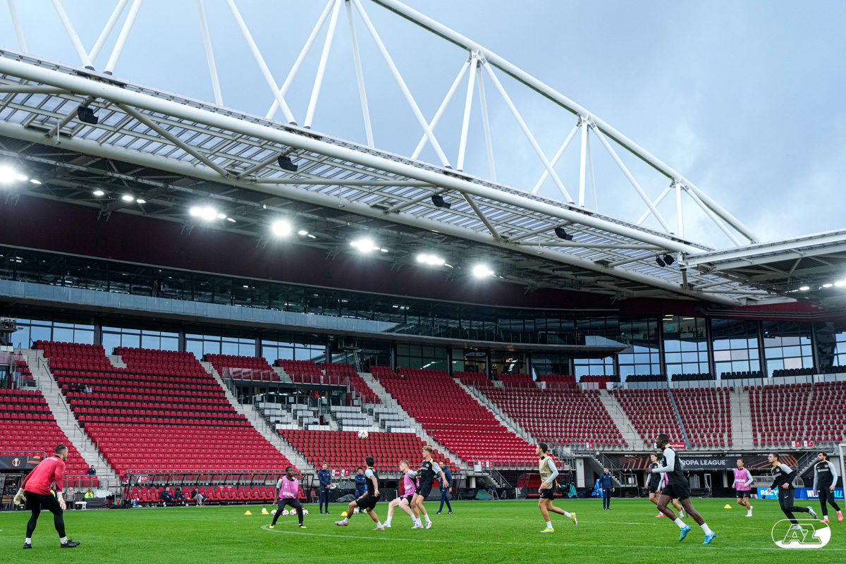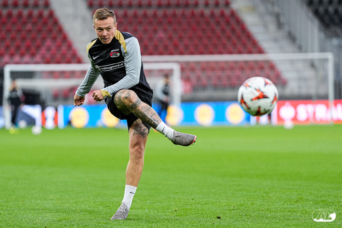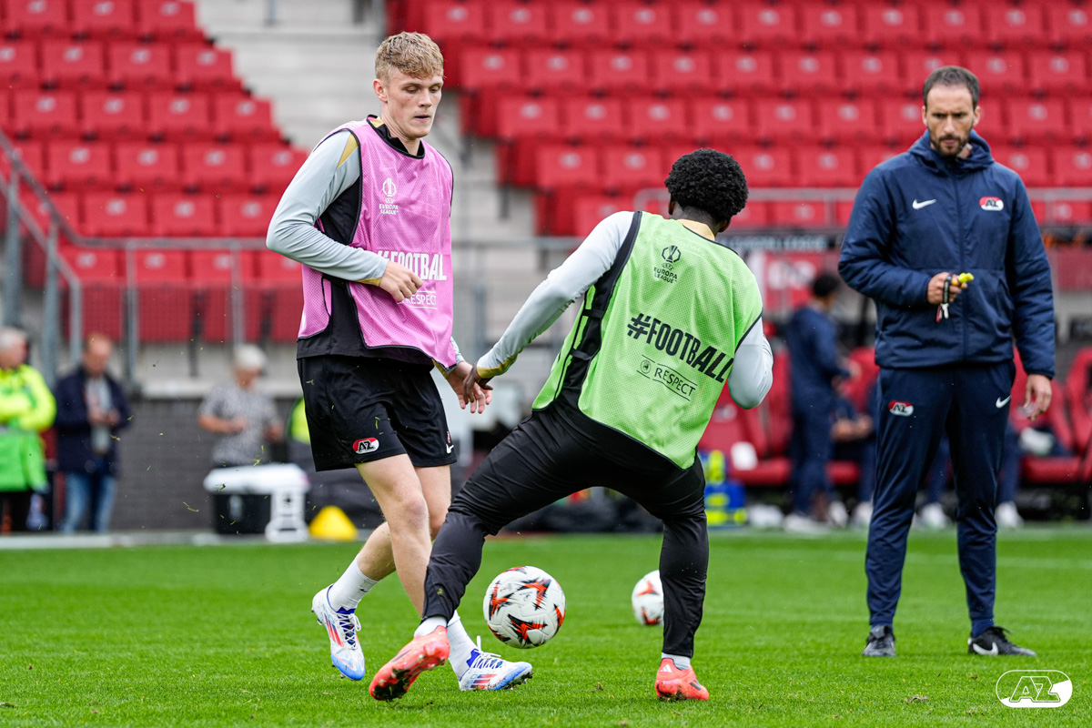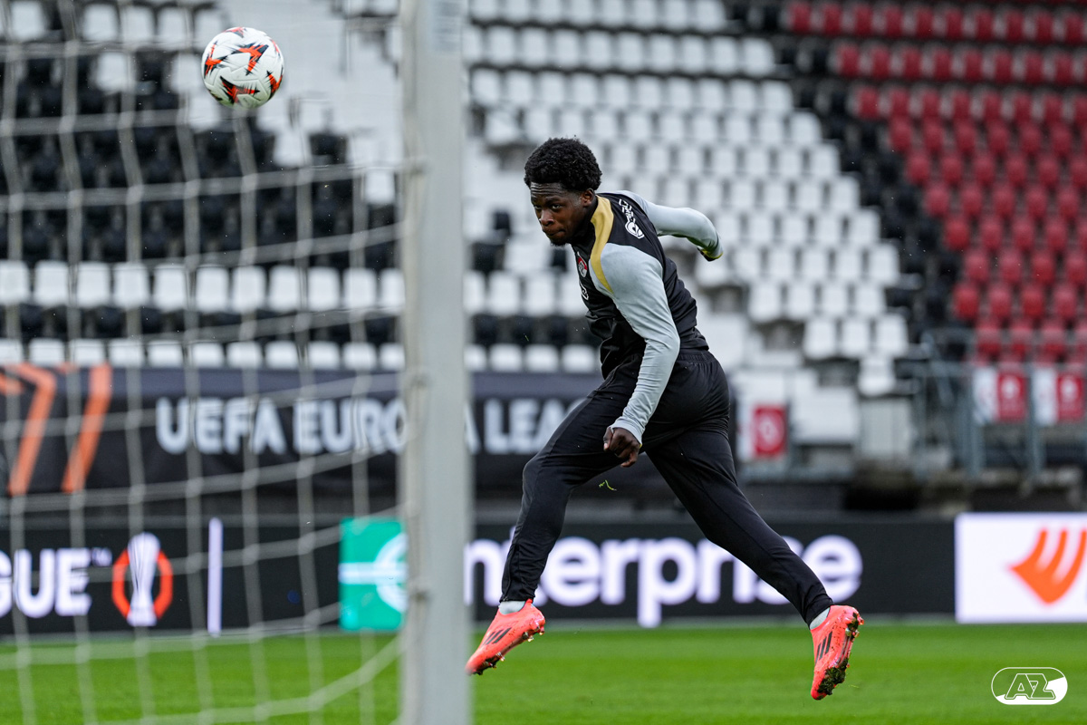 ALKMAAR- AZ staat woensdagavond in de UEFA Europa League tegenover het Zweedse IF Elfsborg. In het AFAS Stadion werkte de ploeg van trainer Maarten Martens dinsdagmiddag toe naar het honderdste Europese thuisduel. De training in beeld. (Foto's: Ed van de Pol)