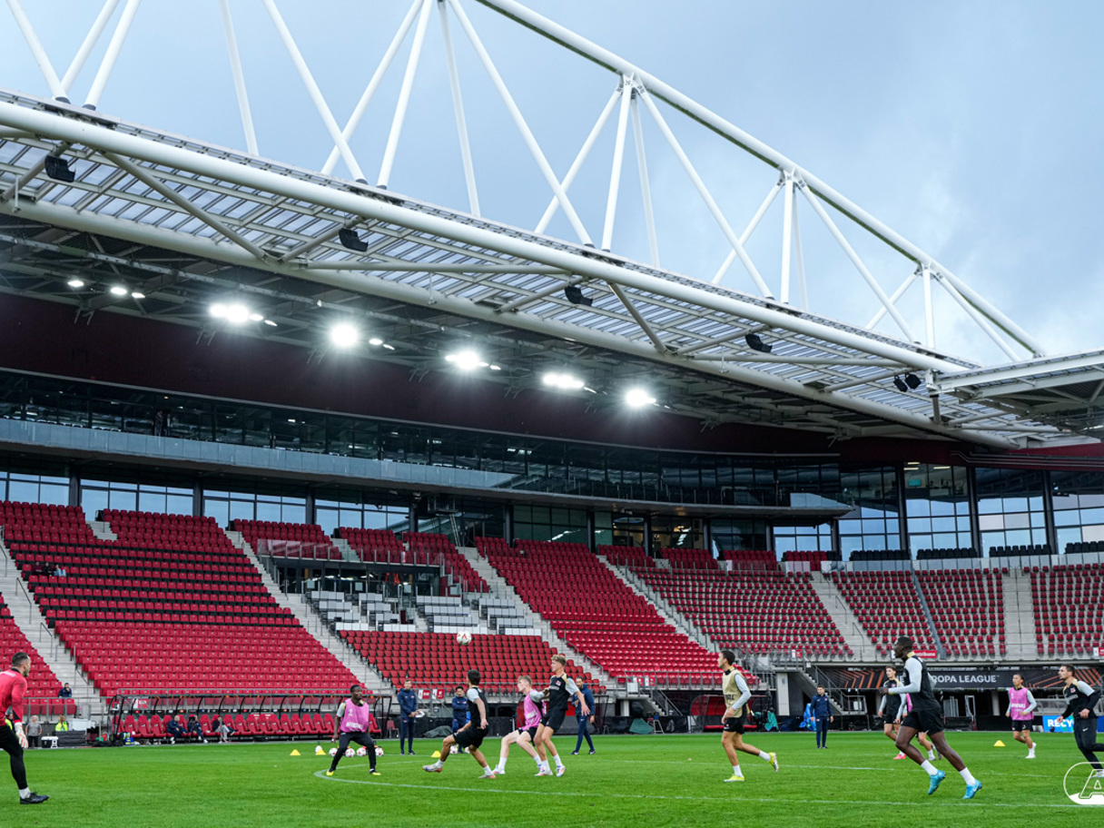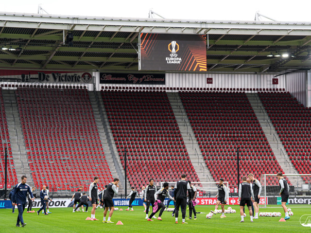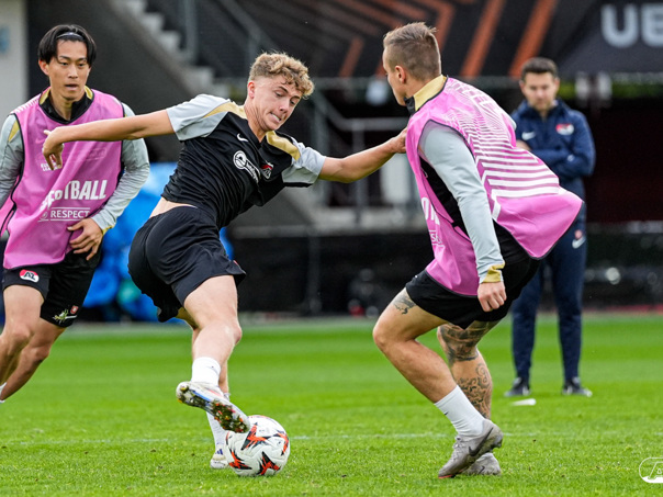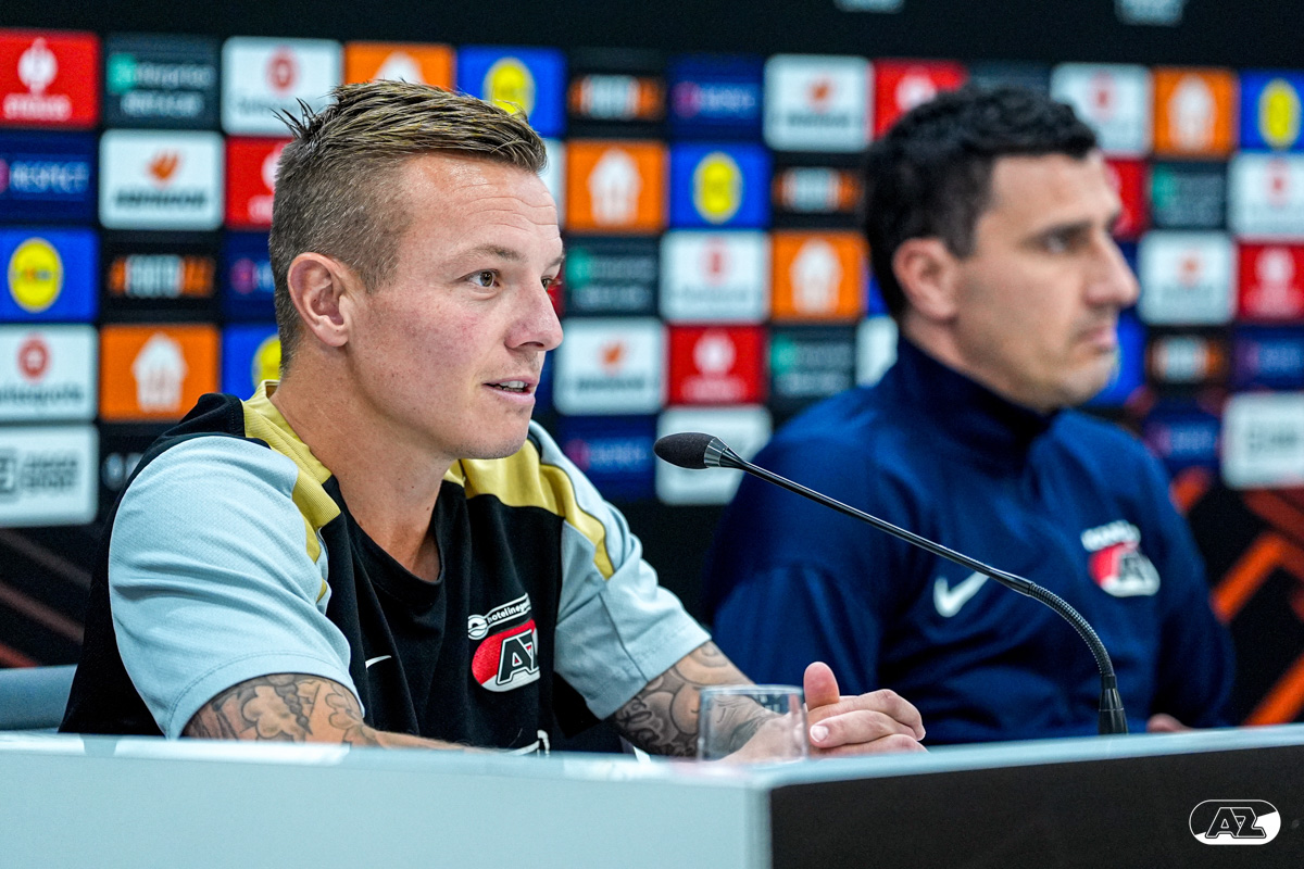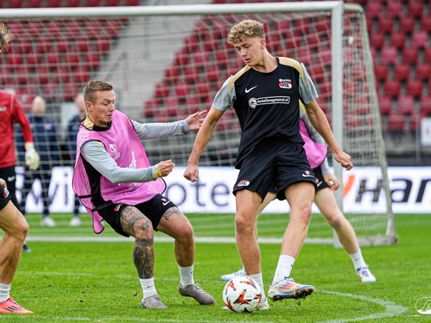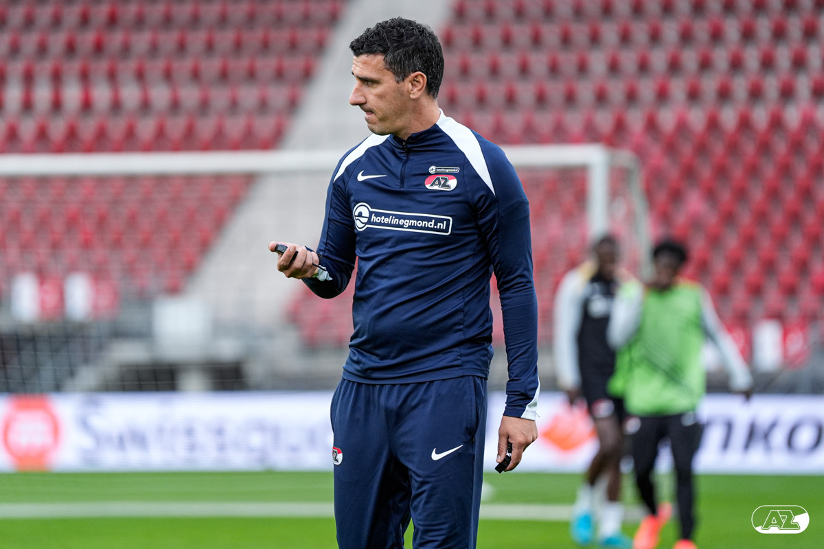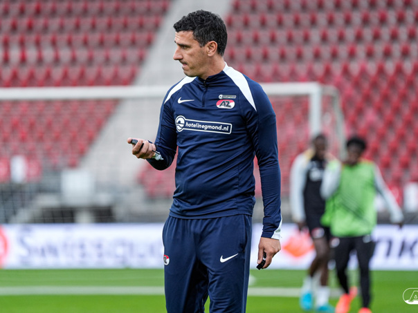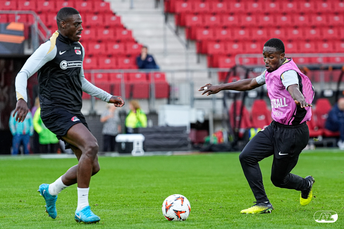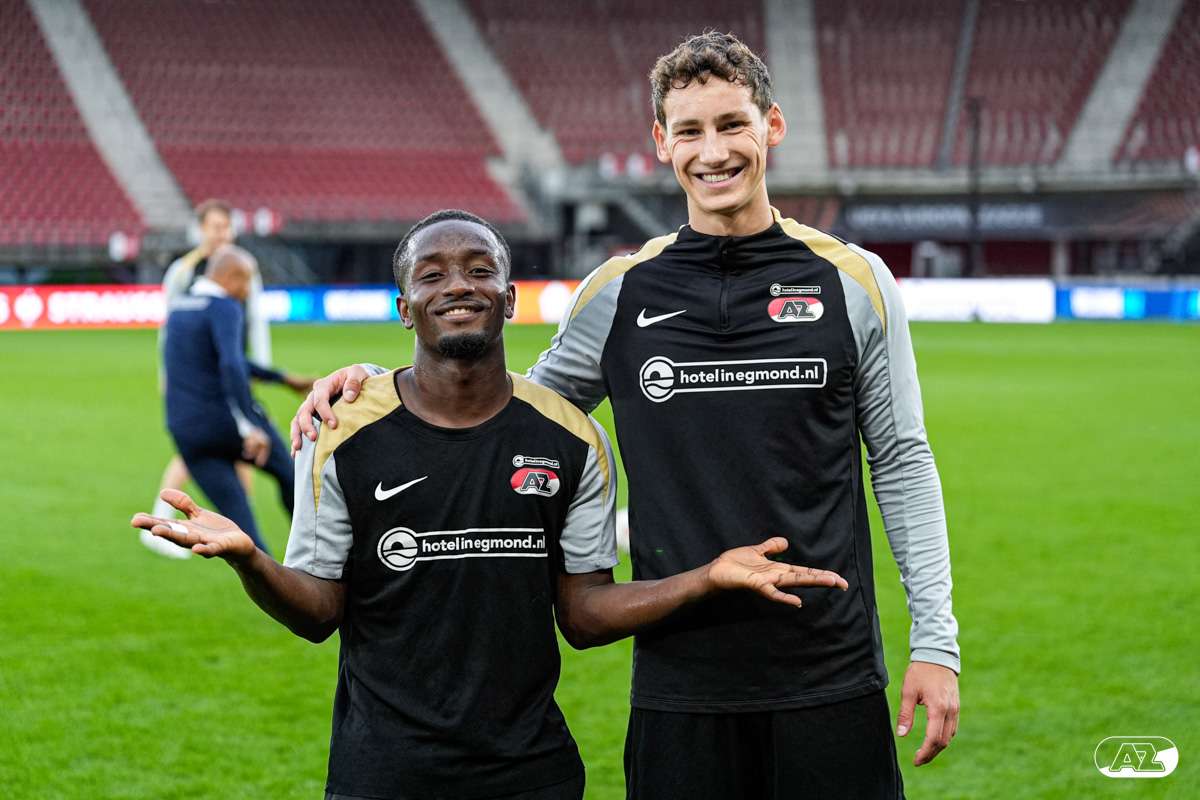 ALKMAAR- AZ staat woensdagavond in de UEFA Europa League tegenover het Zweedse IF Elfsborg. In het AFAS Stadion werkte de ploeg van trainer Maarten Martens dinsdagmiddag toe naar het honderdste Europese thuisduel. De training in beeld. (Foto's: Ed van de Pol)