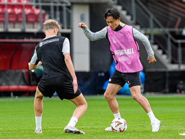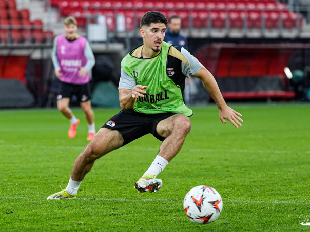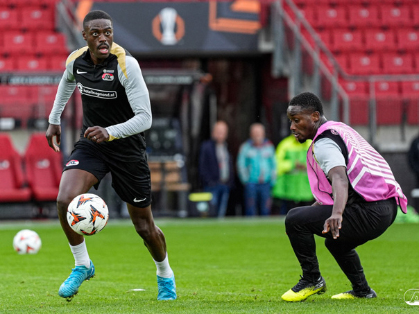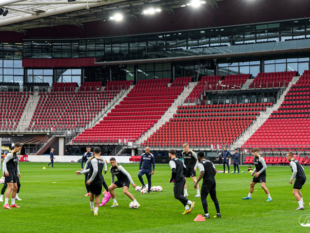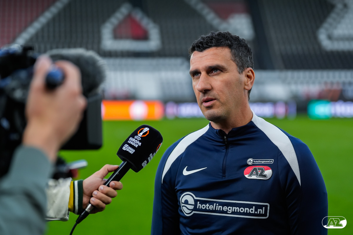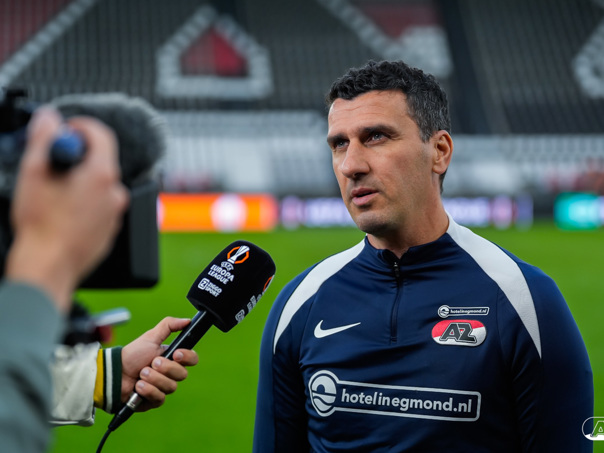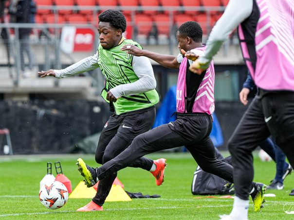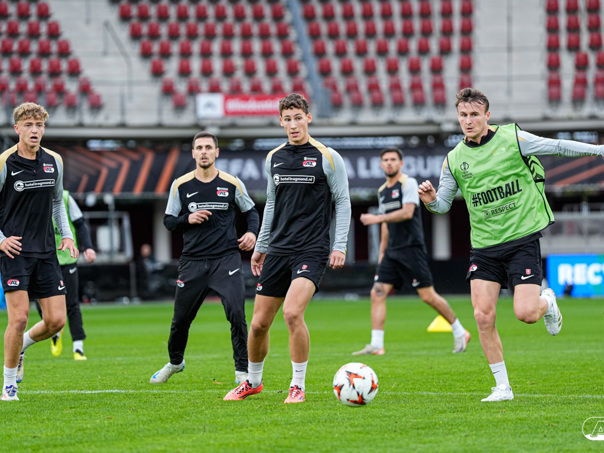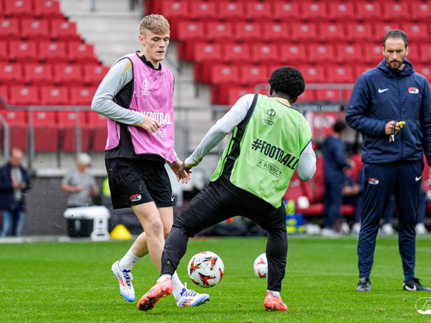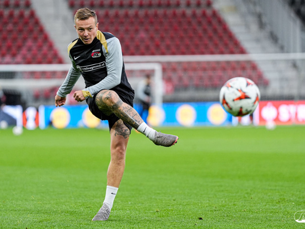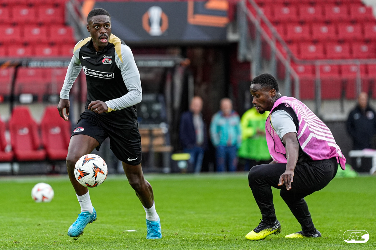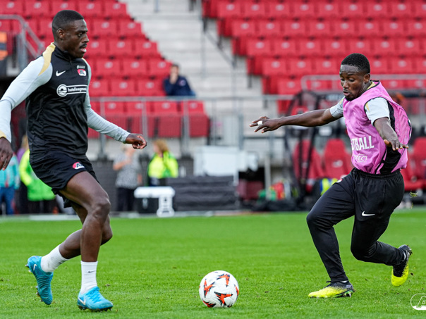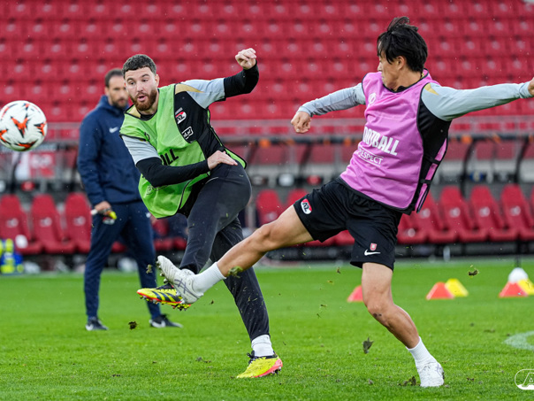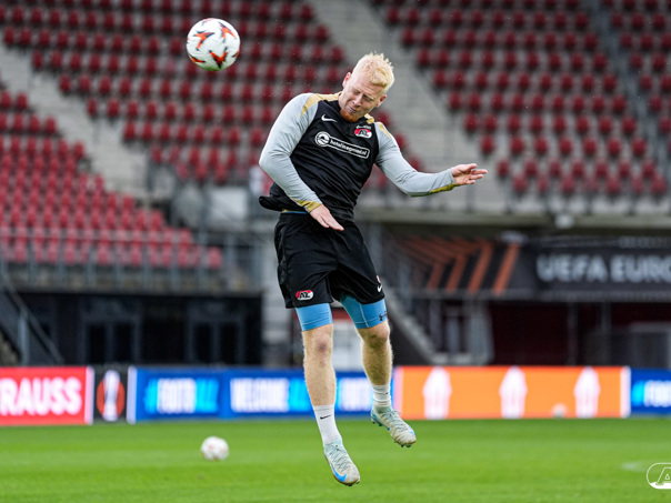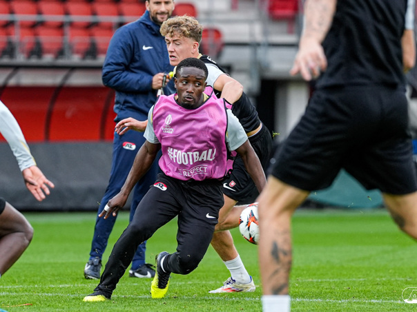 ALKMAAR- AZ staat woensdagavond in de UEFA Europa League tegenover het Zweedse IF Elfsborg. In het AFAS Stadion werkte de ploeg van trainer Maarten Martens dinsdagmiddag toe naar het honderdste Europese thuisduel. De training in beeld. (Foto's: Ed van de Pol)