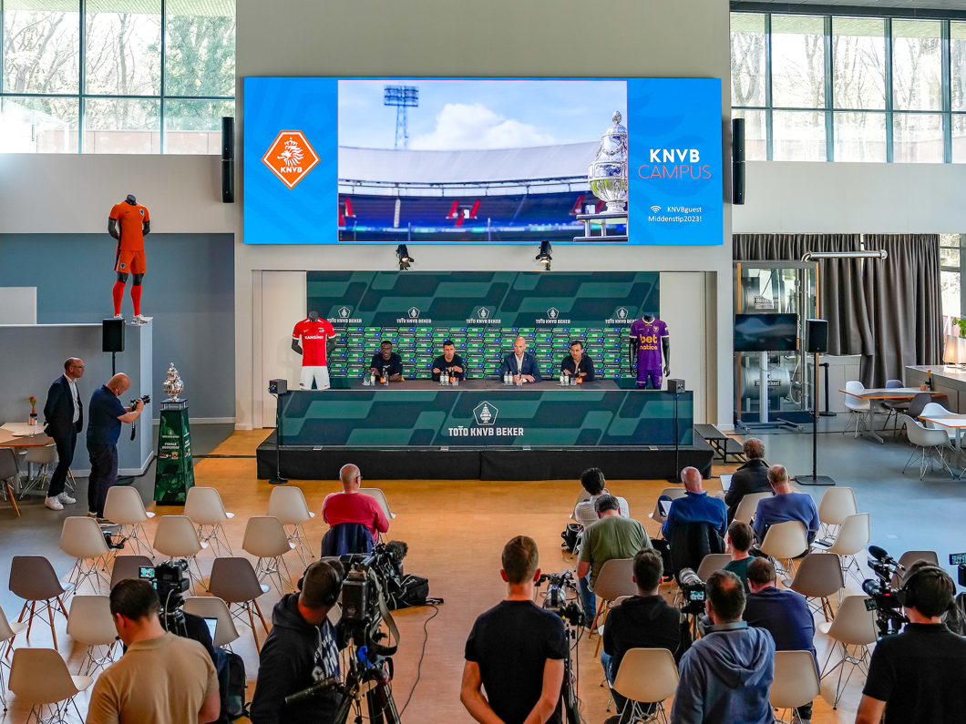 Het officiële persmoment stond vrijdagmiddag op het programma op de KNVB Campus in Zeist. De spelers en trainers van beide ploegen gingen met elkaar op de foto en voor de aanwezige pers stond er een persconferentie op het programma.