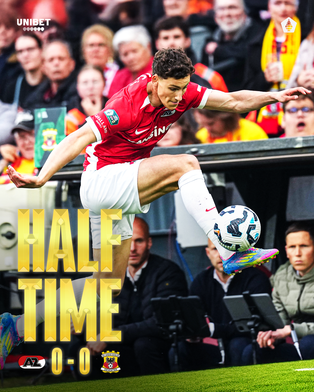 De Alkmaarders hebben de bal en zoeken naar een opening. Tot een dreigend schot komen ze echter nog niet.