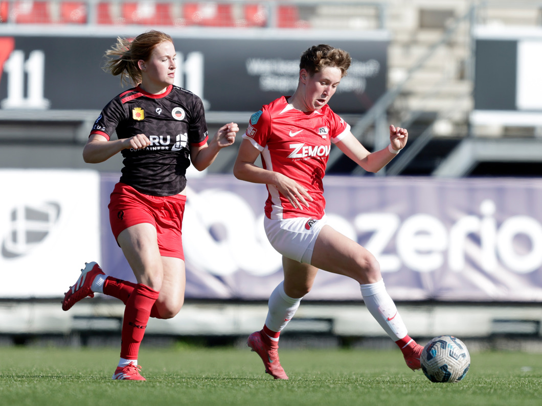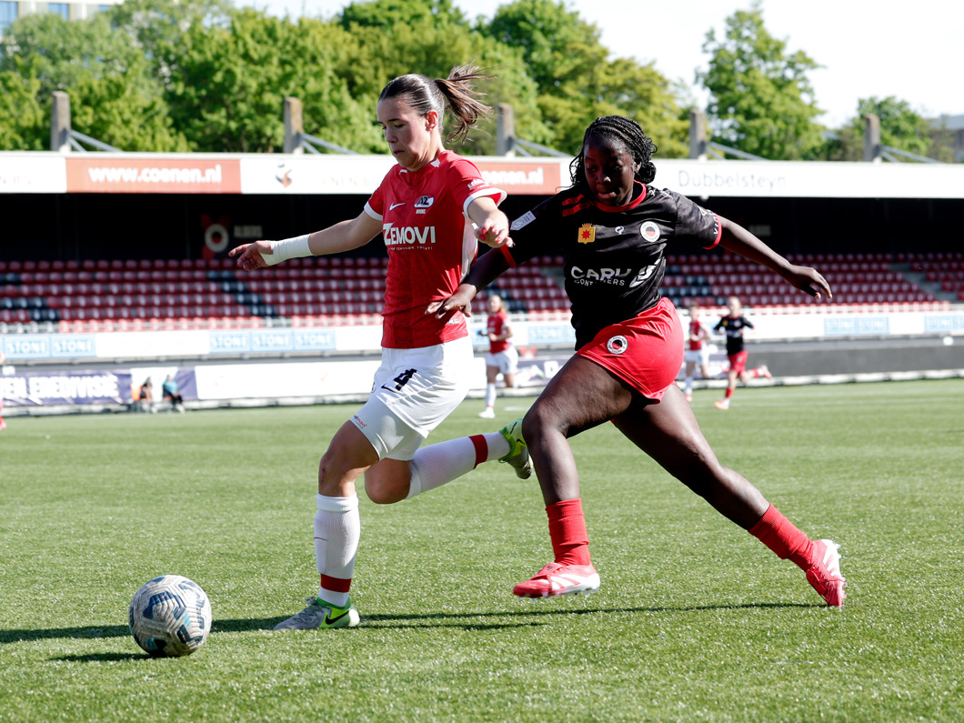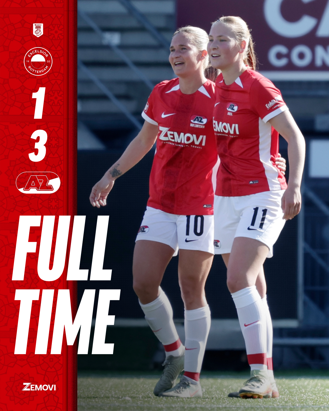 ROTTERDAM- De AZ Vrouwen namen het zaterdagmiddag in speelronde 20 van de Azerion Vrouwen Eredivisie op tegen Excelsior Rotterdam. In het Van Donge & De Roo Stadion waren de Alkmaarders met 1-3 te sterk voor de Rotterdammers. In de eerste helft scoorde Van Lunteren tweemaal, maar na rust kwam de thuisploeg terug via Westerink, die de aansluitingstreffer binnenschoot. In de slotfase besliste Colin het duel door de 1-3 op het scorebord te zetten.