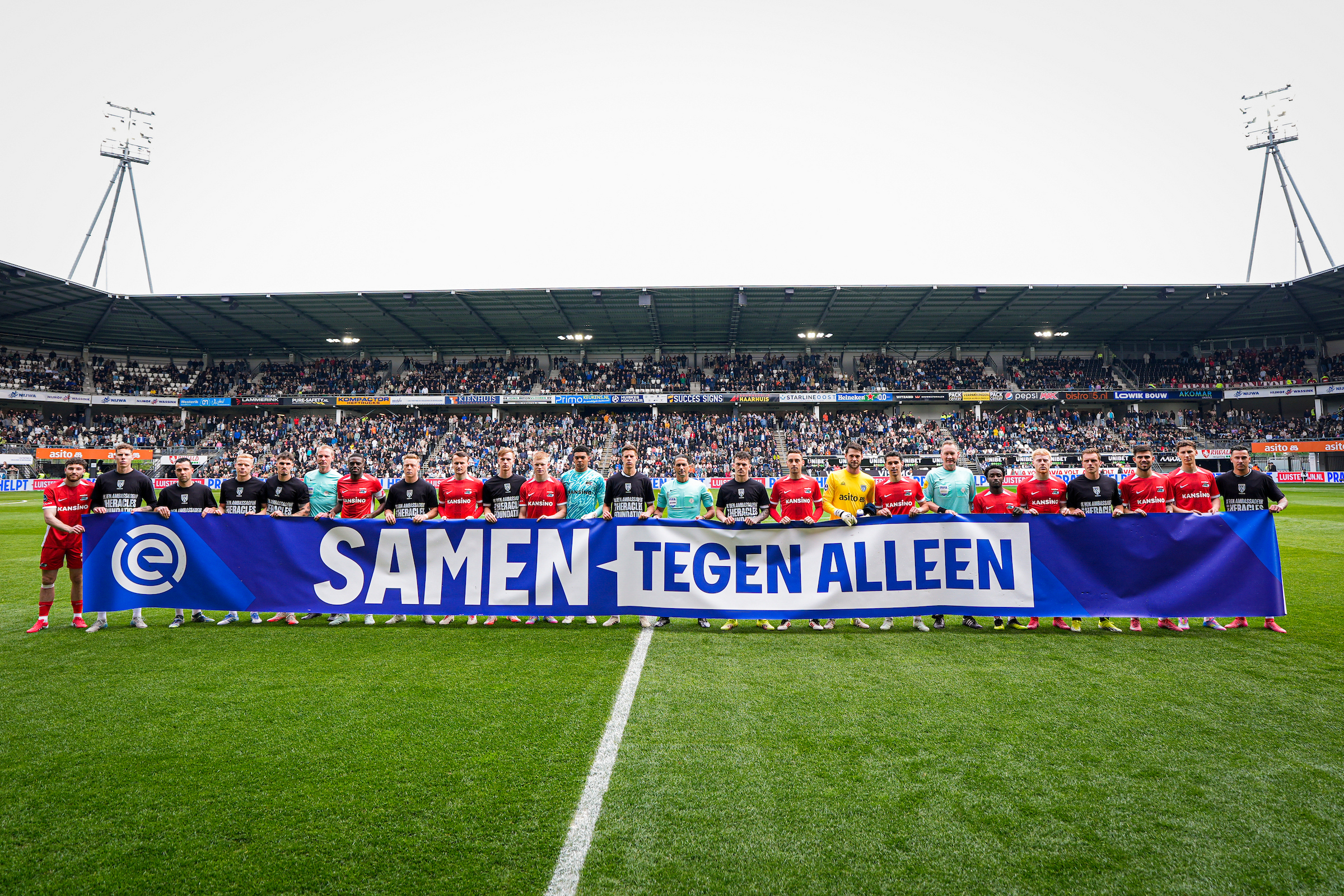 Dit weekend zullen verschillende initiatieven worden gerealiseerd om jongeren te helpen de stilte rondom eenzaamheid te doorbreken. Zo bestaan de spelersescortes bij Heracles Almelo - AZ aan beide zijden uit jongeren die een steuntje in de rug kunnen gebruiken. Meer weten over deze campagne? Ontdek wat jij kunt doen op www.eredivisie.nl/samentegenalleen