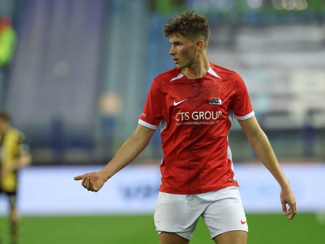 De Georgische middenvelder neemt de bal op de slof, maar de poging verdwijnt over het Alkmaarse doel.
