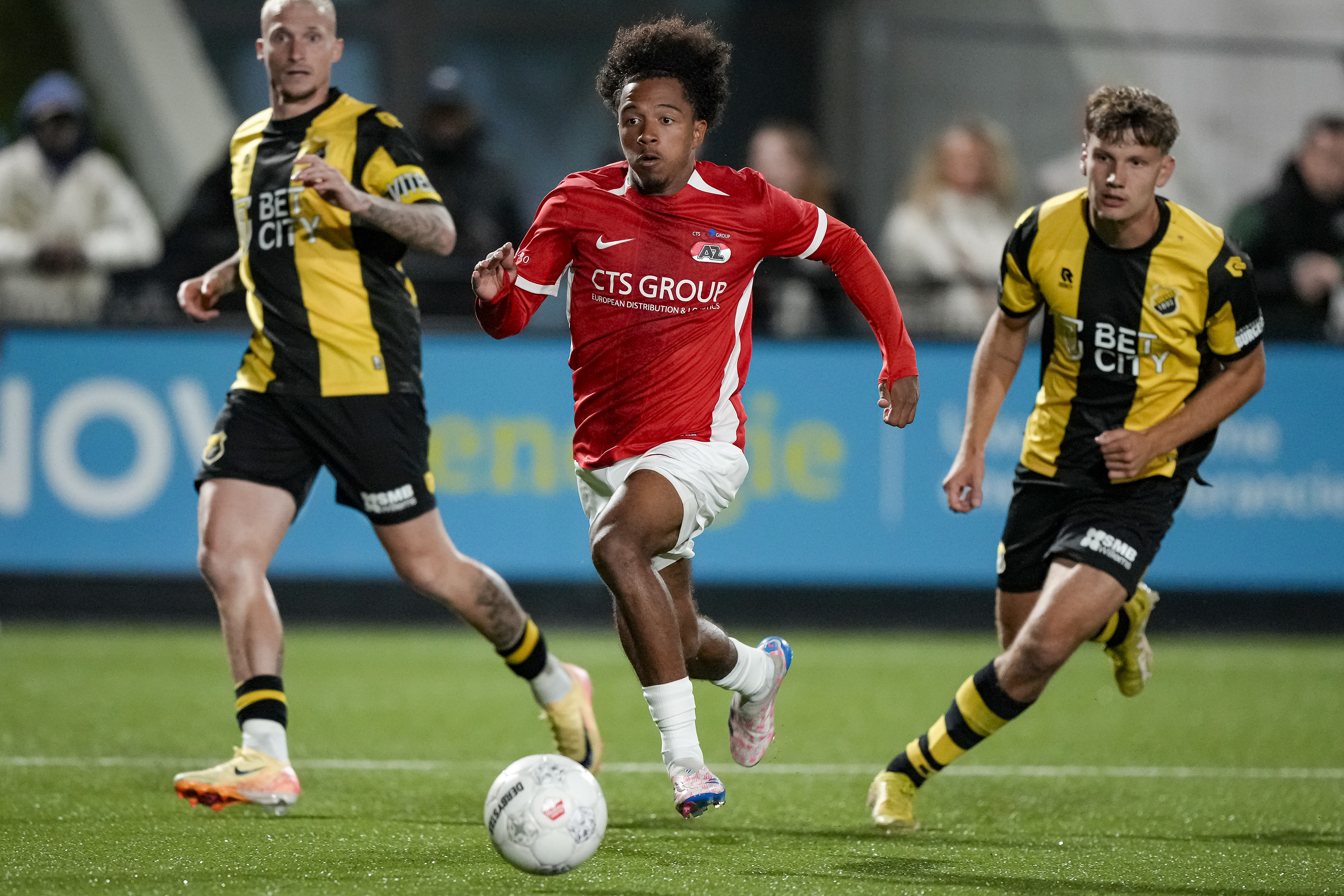 Vlak voor tijd is het Ro-Zangelo Daal die Jong AZ op gelijke hoogte schiet: 2-2!