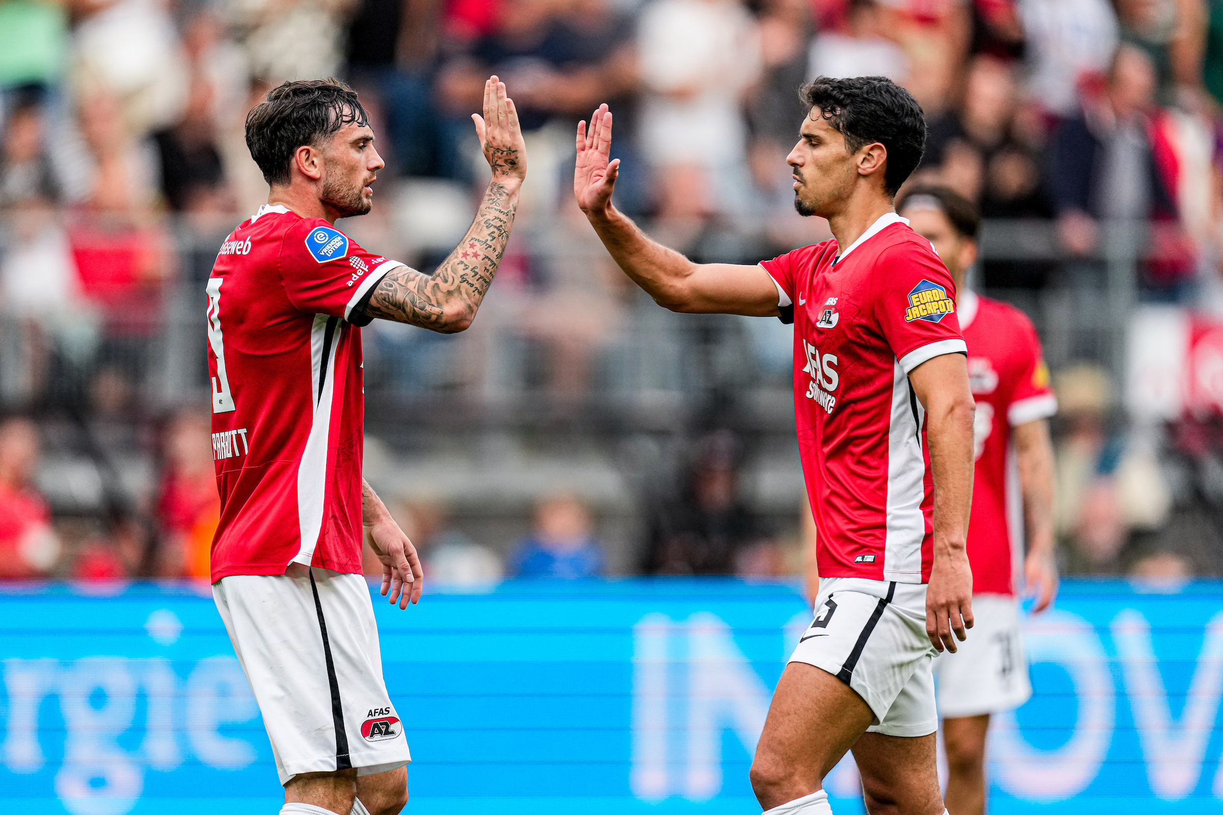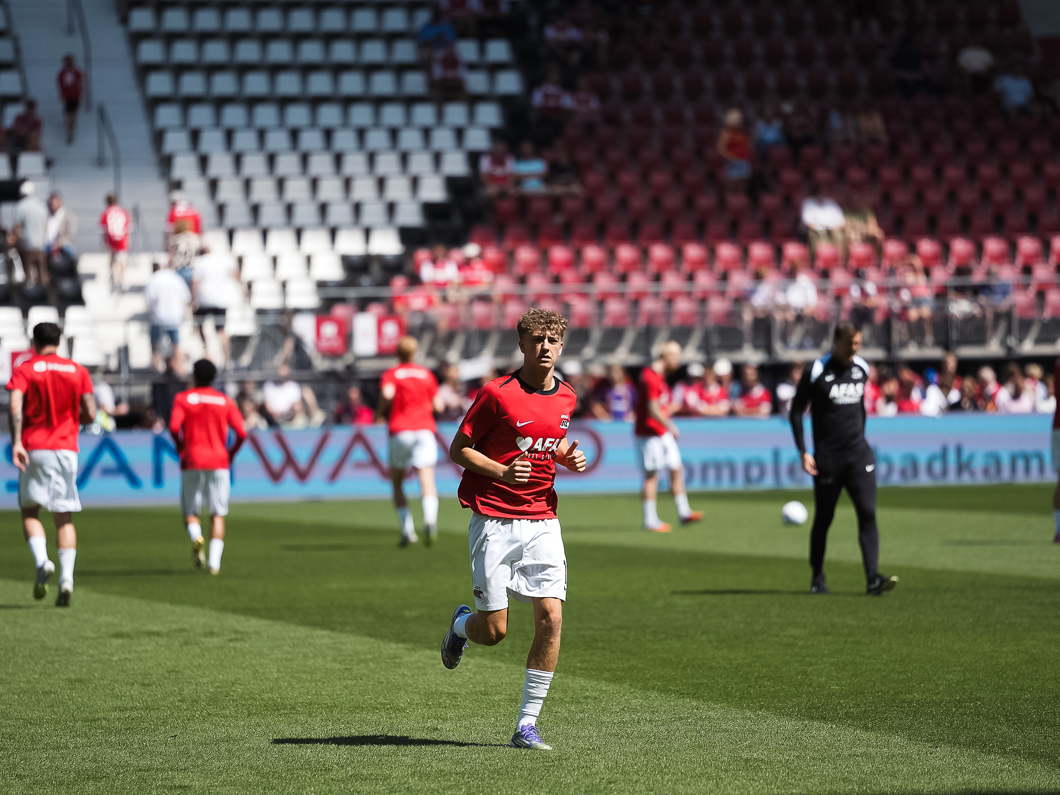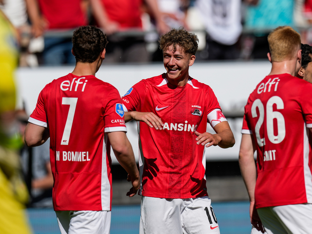 AZ wint het eerste competitieduel met 4-1 door doelpunten van Denso Kasius, Troy Parrott en Stije Resink (e.d.).