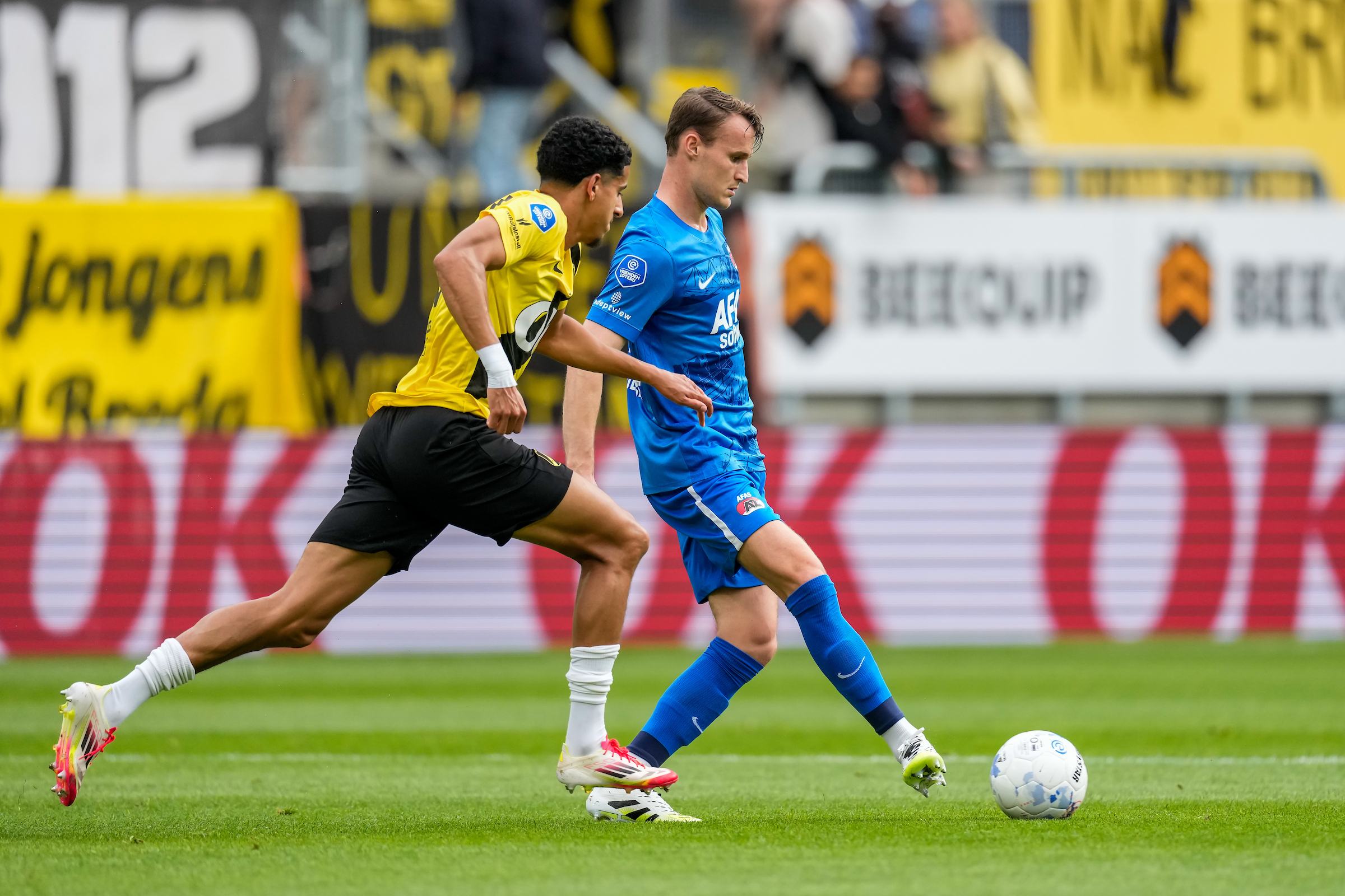 Op slag van rust is Mees de Wit ontzettend dichtbij de openingstreffer. De opkomende back komt aan de bal in het Bredase strafschopgebied en vuurt een schot recht op Bielica af, die uit reflex de bal stopt.