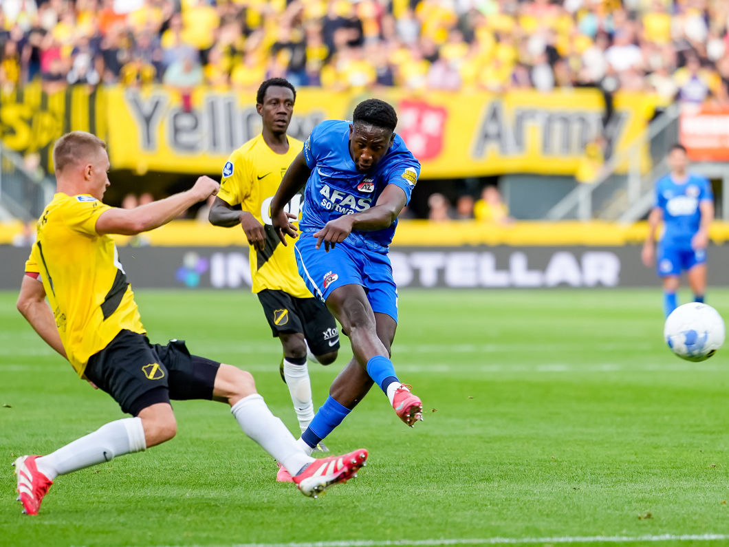 Ibrahim Sadiq wordt vrijgespeeld en mikt op de bovenhoek, maar NAC-doelman Bielica stopt de inzet met zijn vingertoppen. Het blijft 0-0.