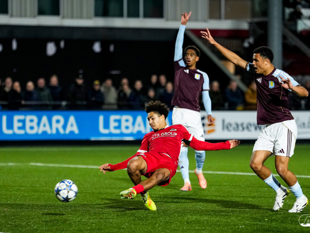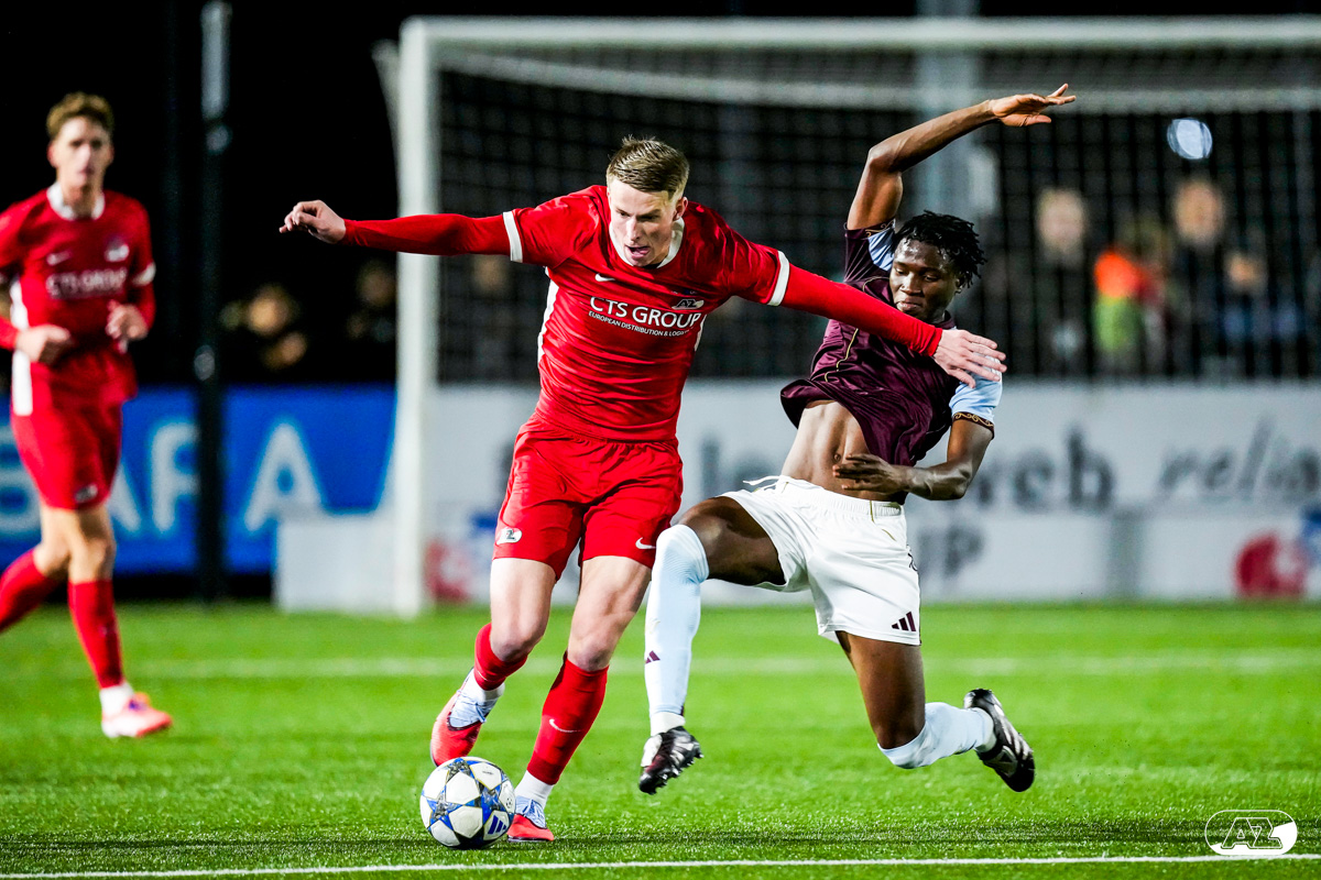 ZAANSTAD- AZ Onder 19 won dinsdagavond in het UEFA Youth League-duel met 2-1 van het Engelse Aston Villa. Bohdan Budko en Tycho de Wit waren beiden trefzeker namens de Alkmaarders. Bekijk hier de wedstrijd door de lens van fotograaf Ed van de Pol.
