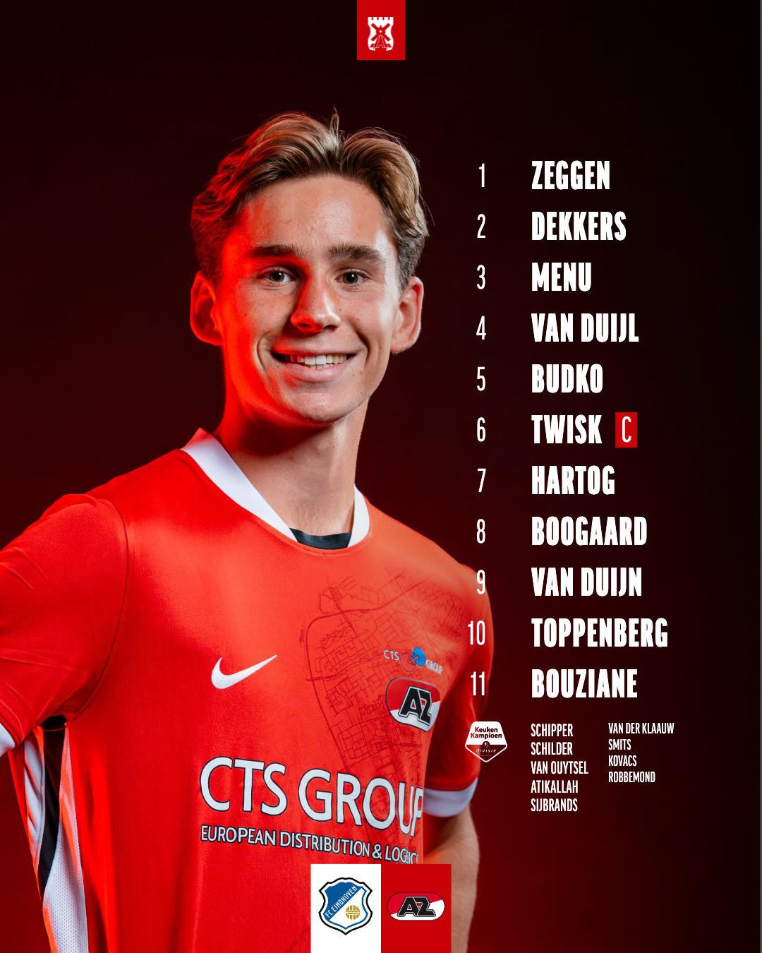 Het eerste wapenfeit van Jong AZ komt via Sem van Duijn. De topscorer van de beloften kopt over uit een corner.