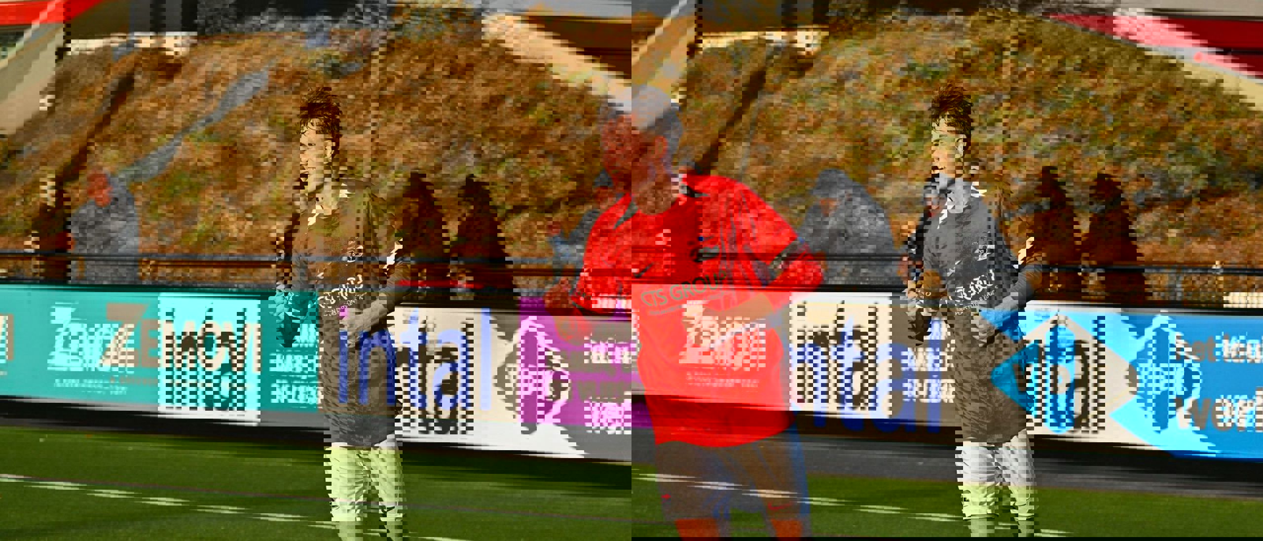 In de eerste helft ging het heen en weer tussen de twee ploegen. Al na vijf minuten spelen moest het team van trainer Sander Veraart de openingstreffer incasseren. De achterstand duurde niet lang, want luttele momenten later trok AZ de stand alweer gelijk dankzij spits Charly Van Oosterhout.