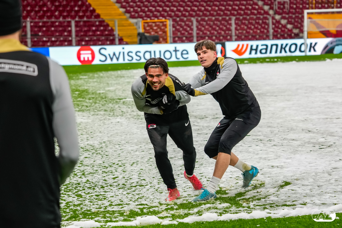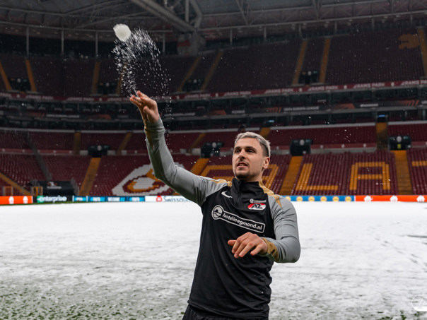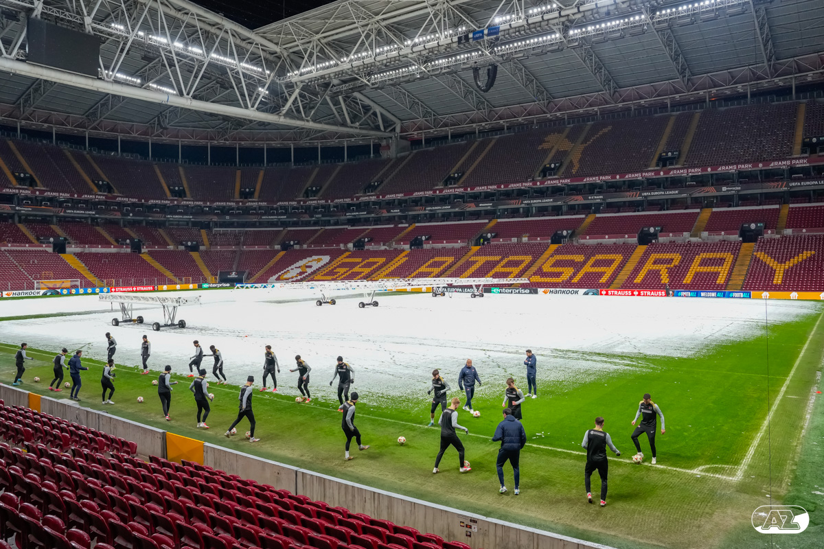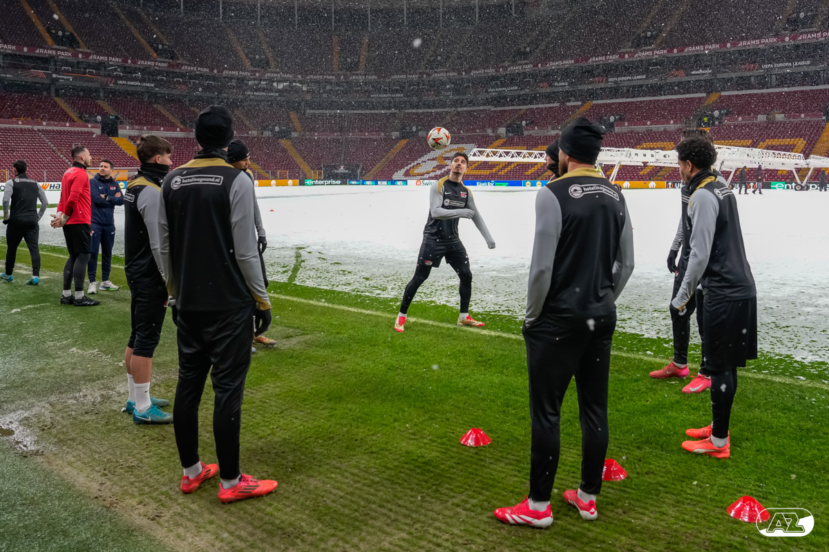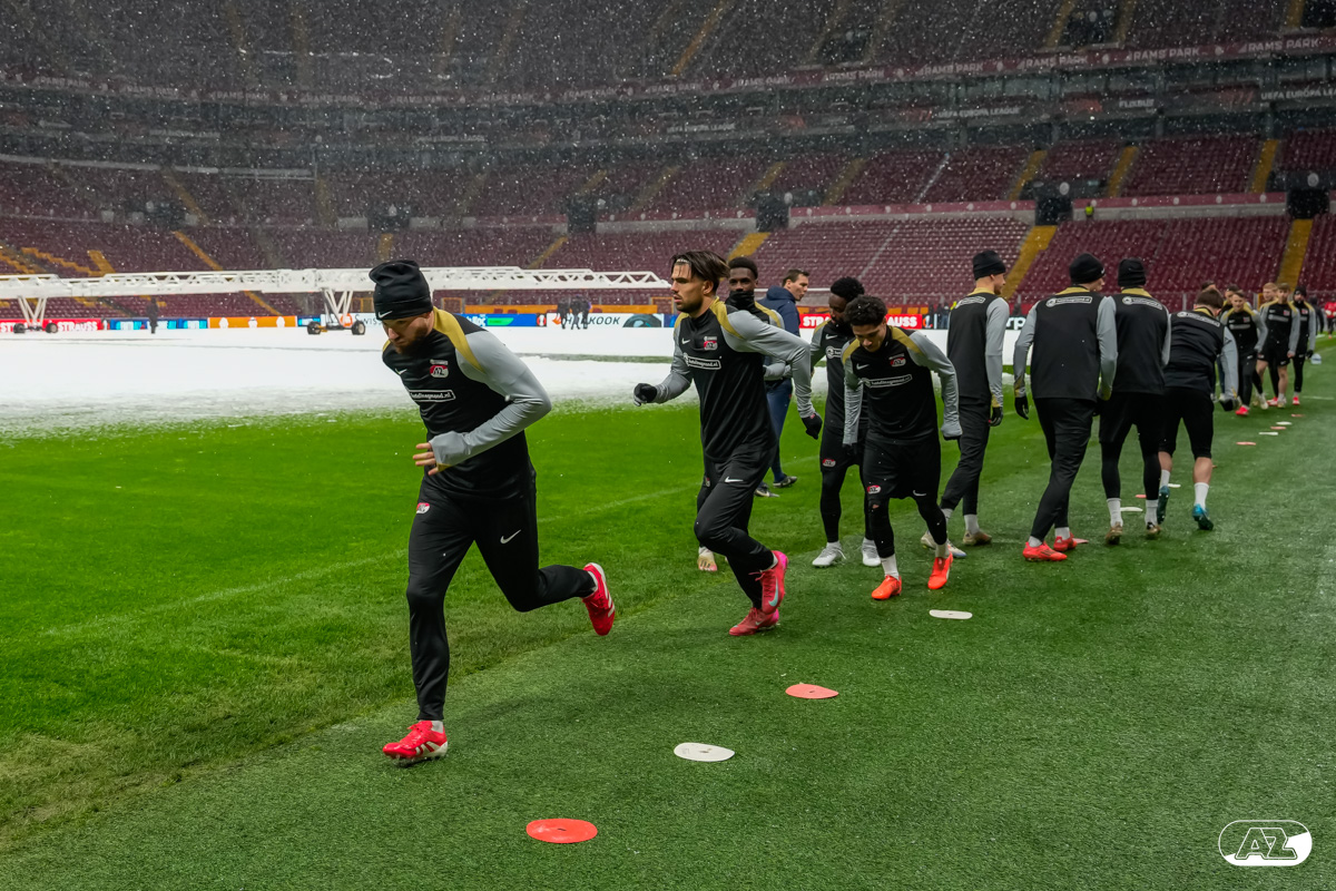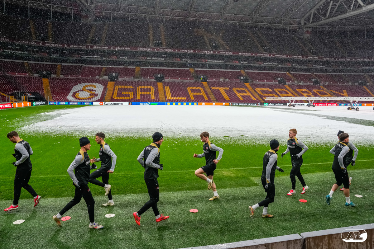 ISTANBOEL- De Alkmaarse selectie reisde woensdag af naar Turkije, waar het donderdagavond opnieuw tegenover Galatasaray SK staat. In een met sneeuw bedekt RAMS Park werkte de ploeg van Maarten Martens een laatste training af. De reis en training in beeld. (Foto's: Ed van de Pol)