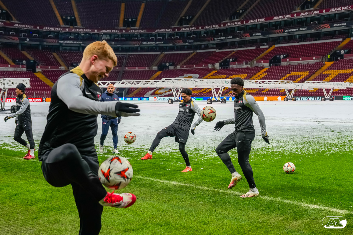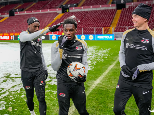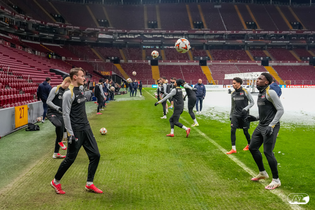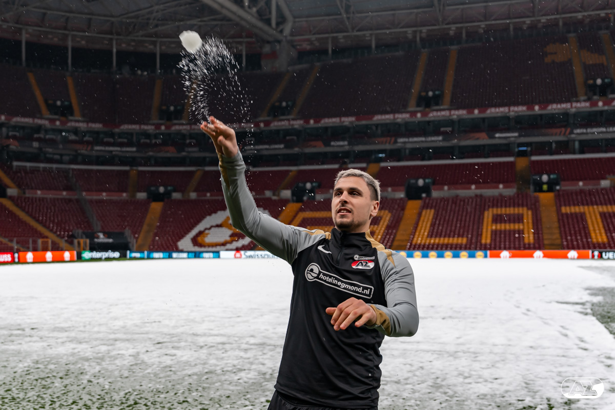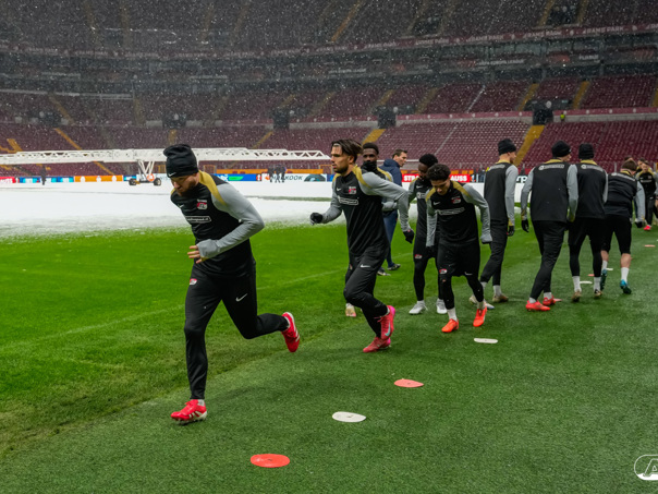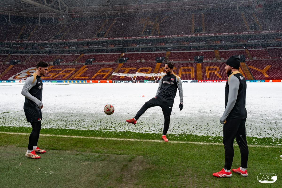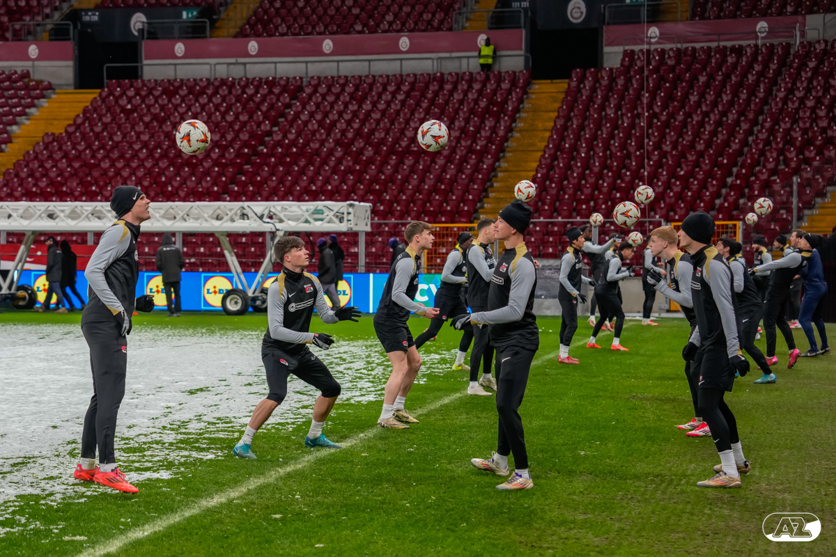 ISTANBOEL- De Alkmaarse selectie reisde woensdag af naar Turkije, waar het donderdagavond opnieuw tegenover Galatasaray SK staat. In een met sneeuw bedekt RAMS Park werkte de ploeg van Maarten Martens een laatste training af. De reis en training in beeld. (Foto's: Ed van de Pol)