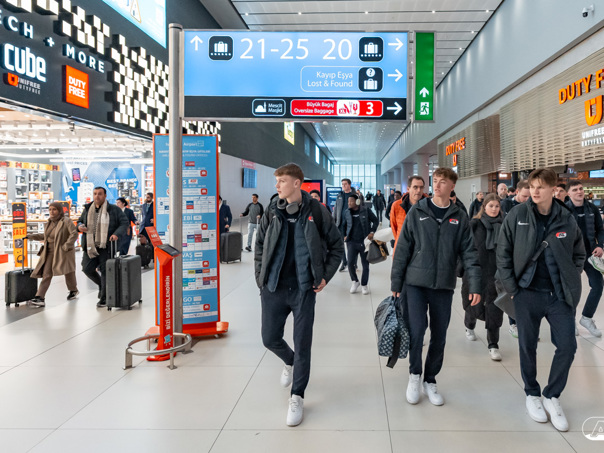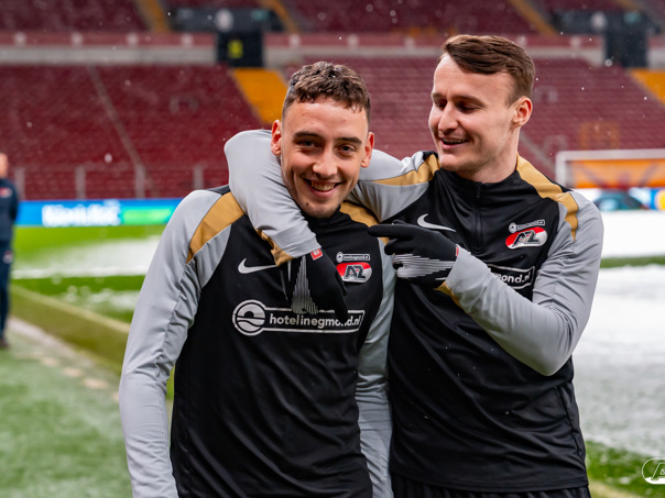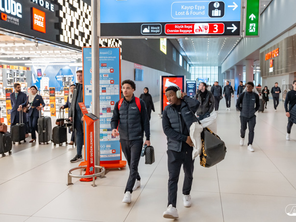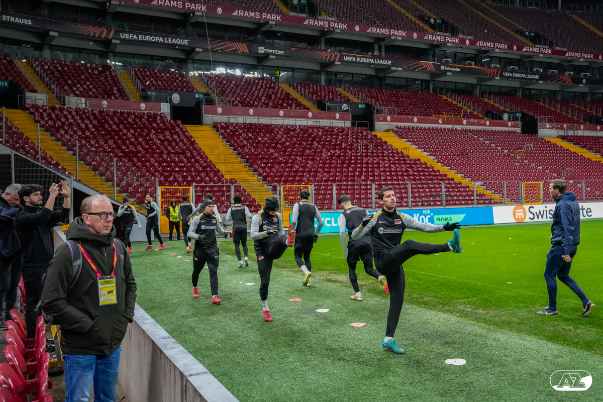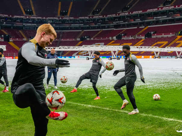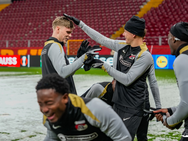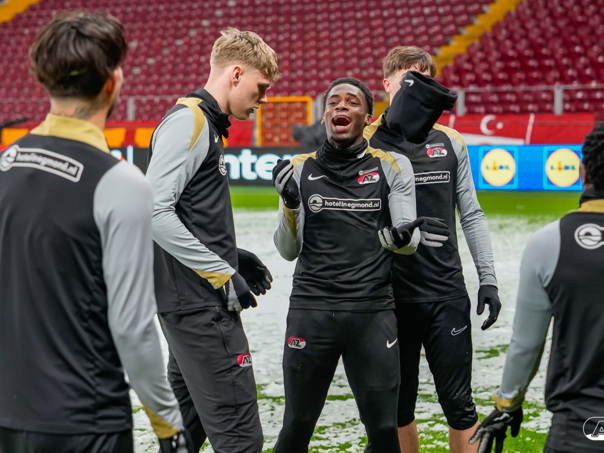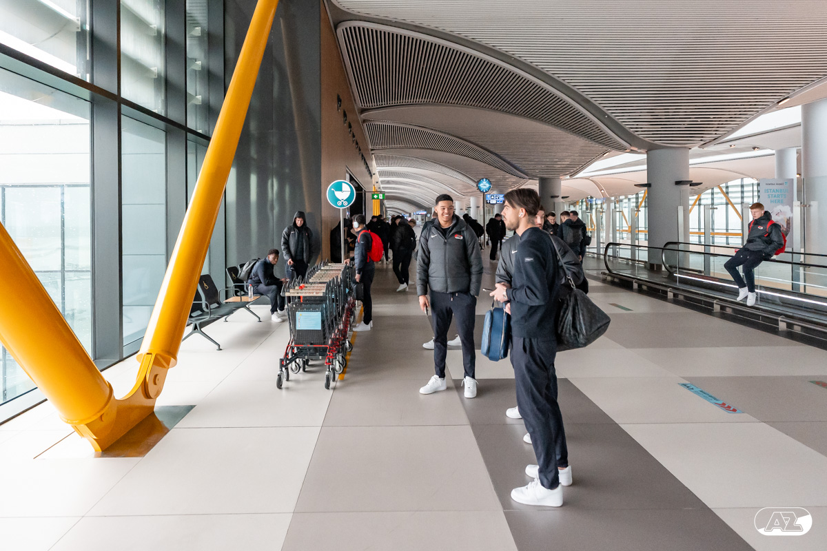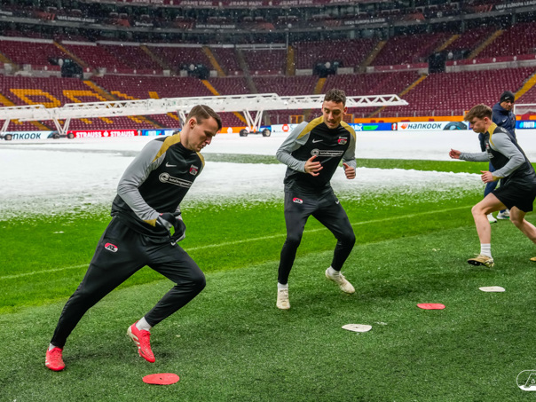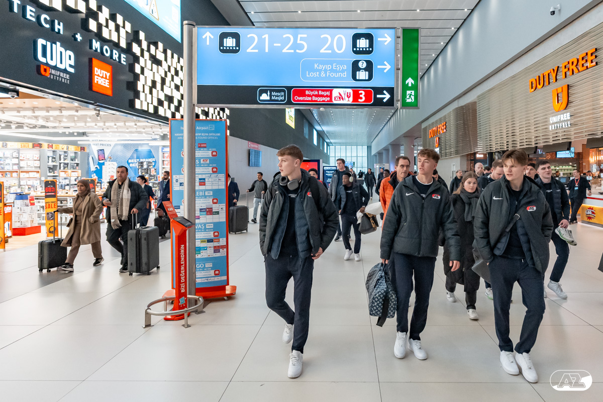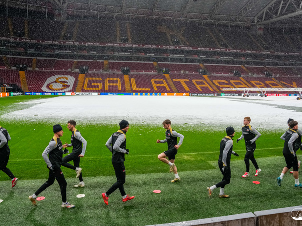 ISTANBOEL- De Alkmaarse selectie reisde woensdag af naar Turkije, waar het donderdagavond opnieuw tegenover Galatasaray SK staat. In een met sneeuw bedekt RAMS Park werkte de ploeg van Maarten Martens een laatste training af. De reis en training in beeld. (Foto's: Ed van de Pol)