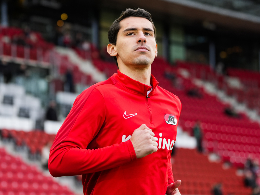 Michut raakt van dichtbij de kruising. Wat rest is een doeltrap voor AZ.