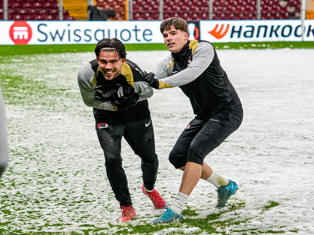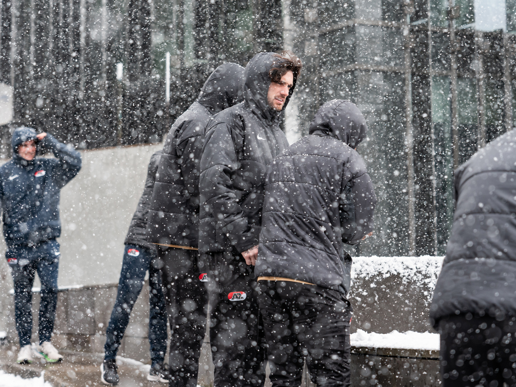 Voor de Alkmaarse selectie staat er traditiegetrouw een stadswandeling op het programma, op de dag van de wedstrijd. De wandeling stond donderdagochtend vooral in het teken van heel veel sneeuw.