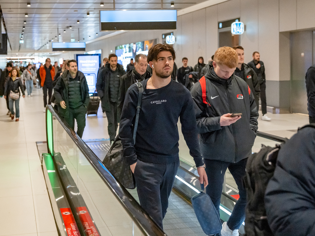 AZ reist met 22 spelers af naar Turkije voor de return tegen Galatasaray SK. Ibrahim Sadiq zit voor het eerst weer bij de selectie. Jordy Clasie blijft daarentegen in Nederland. De middenvelder kampt met lichte klachten.