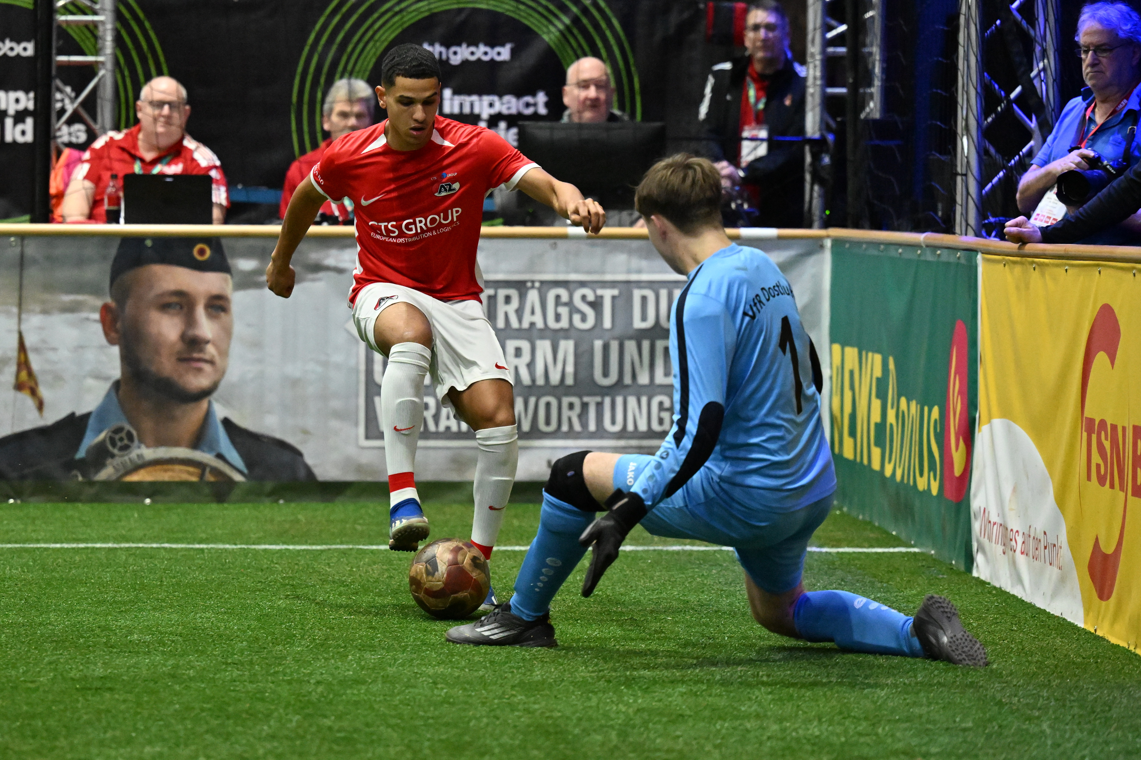 GÖTTINGEN- Voor AZ Onder 19 kwam zondagmiddag een abrupt einde aan de REWE Junior Cup. De Alkmaarders maakten veel indruk tijdens het toernooi en wisten maar liefst acht duels op rij te winnen. In de kwartfinale bleek het Duitse FSV Mainz 05 echter te sterk. AZ-keeper Kiyani Zeggen viel nog wel in de prijzen; hij werd namelijk verkozen tot Doelman van het Toernooi.