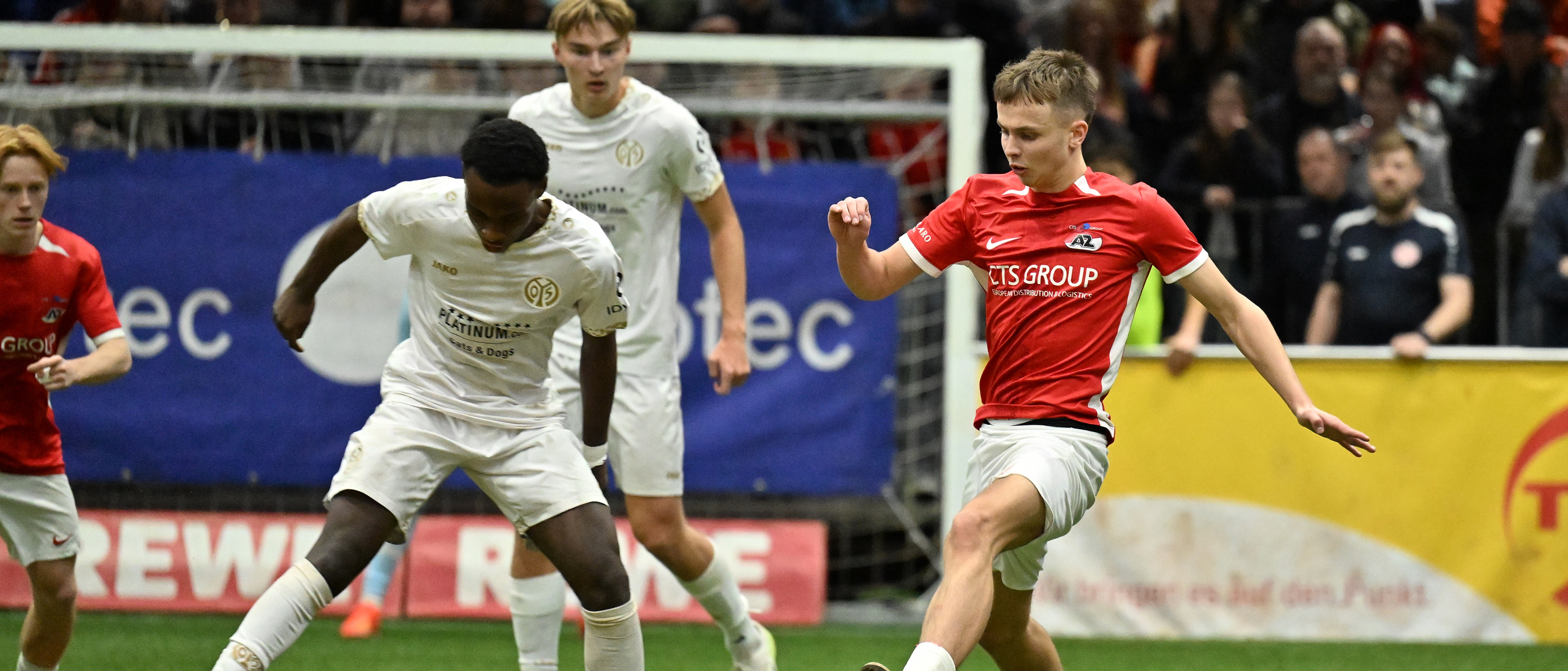 In de derde wedstrijd van de dag stond AZ tegenover 1. FSV Mainz 05. Net als in het openingsduel van de Alkmaarders tijdens de REWE Junior Cup was doelman Kiyani Zeggen trefzeker met een kanonskogel van eigen helft: 0-1. Het antwoord van de tegenstander volgde echter vrijwel direct: 1-1. AZ kwam voor de tweede keer deze wedstrijd op voorsprong nadat Bouziane raak schoot na een mooie pass met de buitenkant van de voet van Roede: 1-2. Even later werd het ook 1-3 na een goede individuele actie van Johannessen, die vervolgens de korte hoek vond. De tegenstanders uit de deelstaat Rijnland-Palts slaagden er nog wel in een tweede treffer te maken, maar de overwinning kwam niet meer in gevaar. Eindstand: 2-3.