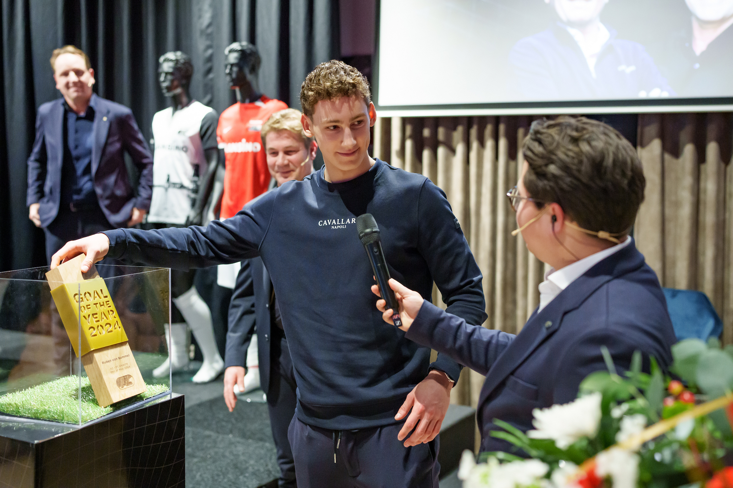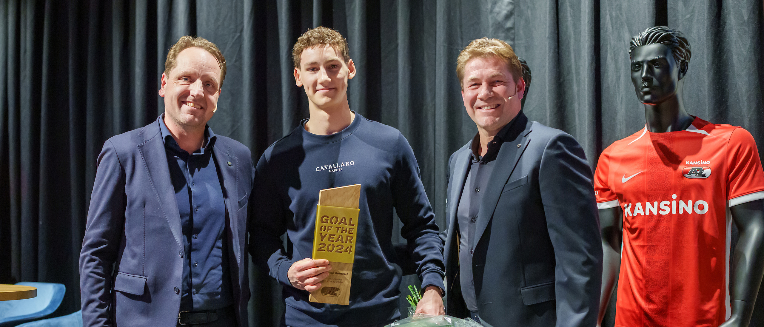 ALKMAAR- In de laatste wedstrijd van het seizoen 2023-2024 tegen FC Utrecht zorgde Ruben van Bommel voor de 2-0 voorsprong in een duel dat eindigde in een 3-3 gelijkspel. Zijn treffer werd uitgeroepen tot Doelpunt van het Jaar 2024. Tijdens de nieuwjaarsreceptie van AZ nam de aanvaller de trofee in ontvangst.