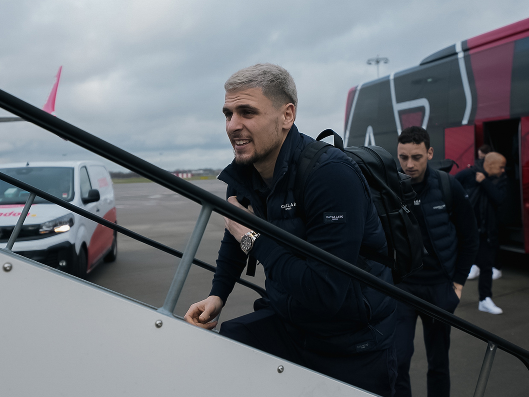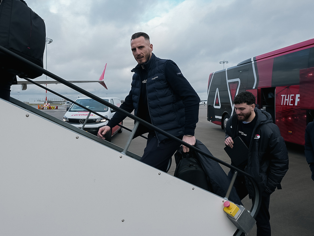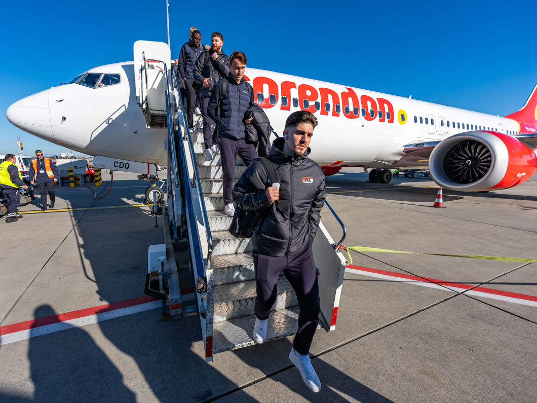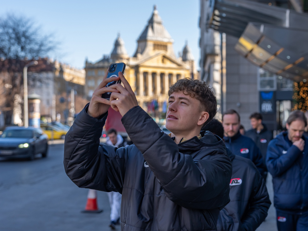 Na een vlucht van een kleine twee uur zijn we aangekomen in Hongarije. Later op de middag trainen we in de Groupama Arena en gaan we vooruitblikken op het duel van donderdagavond. -