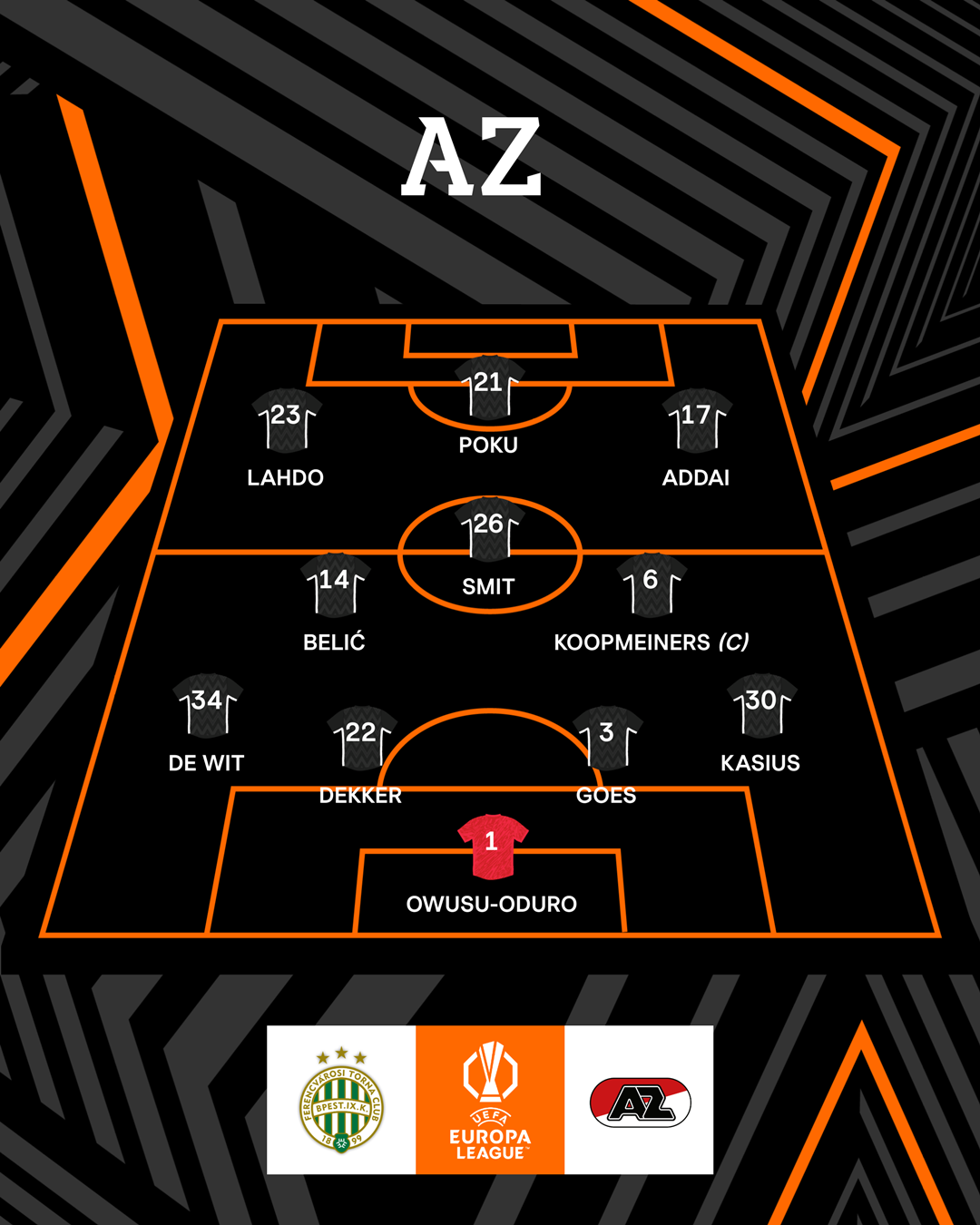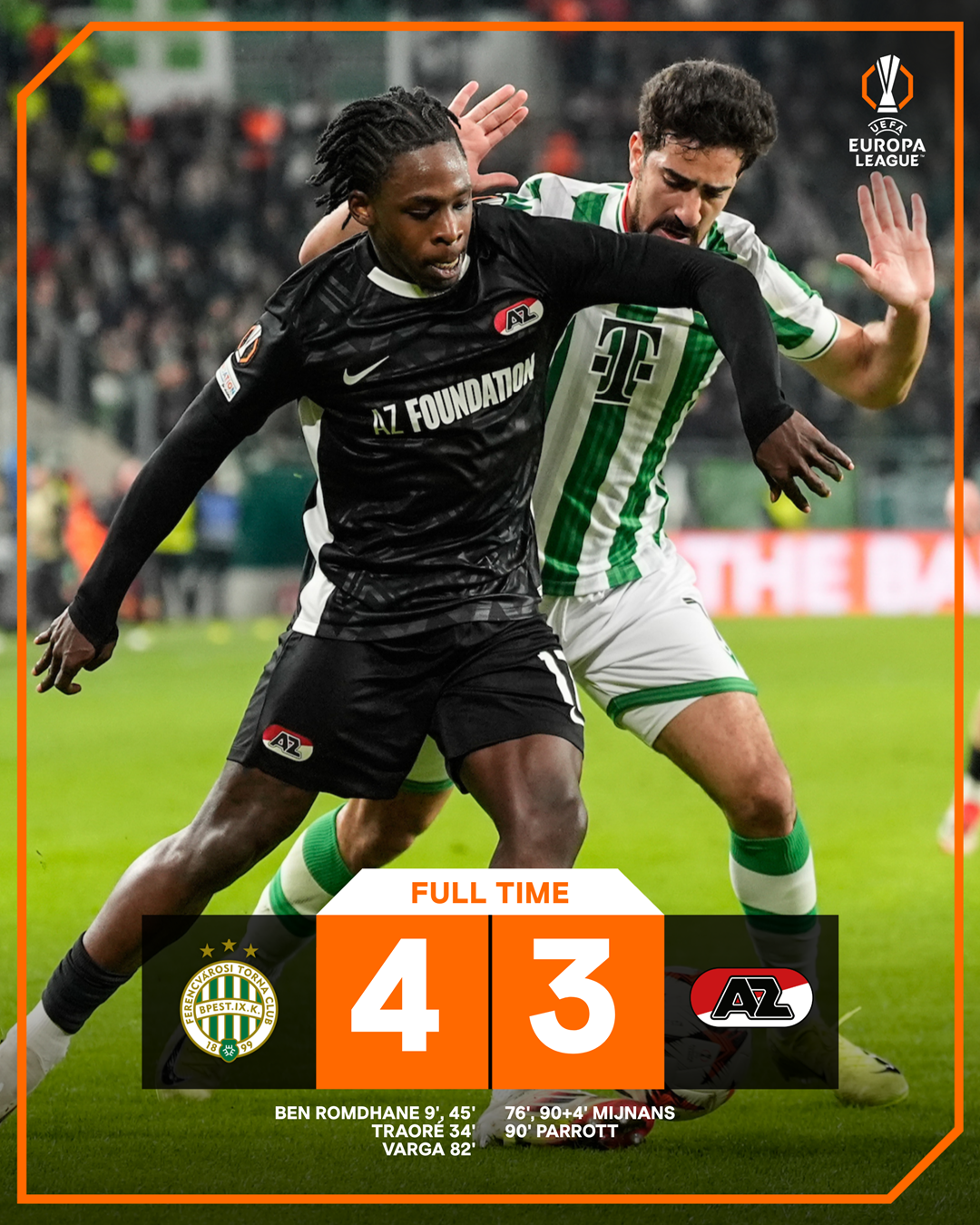 Thuis Team: Ferencvárosi TC , score: 4 vs Uit Team: AZ , score: 3