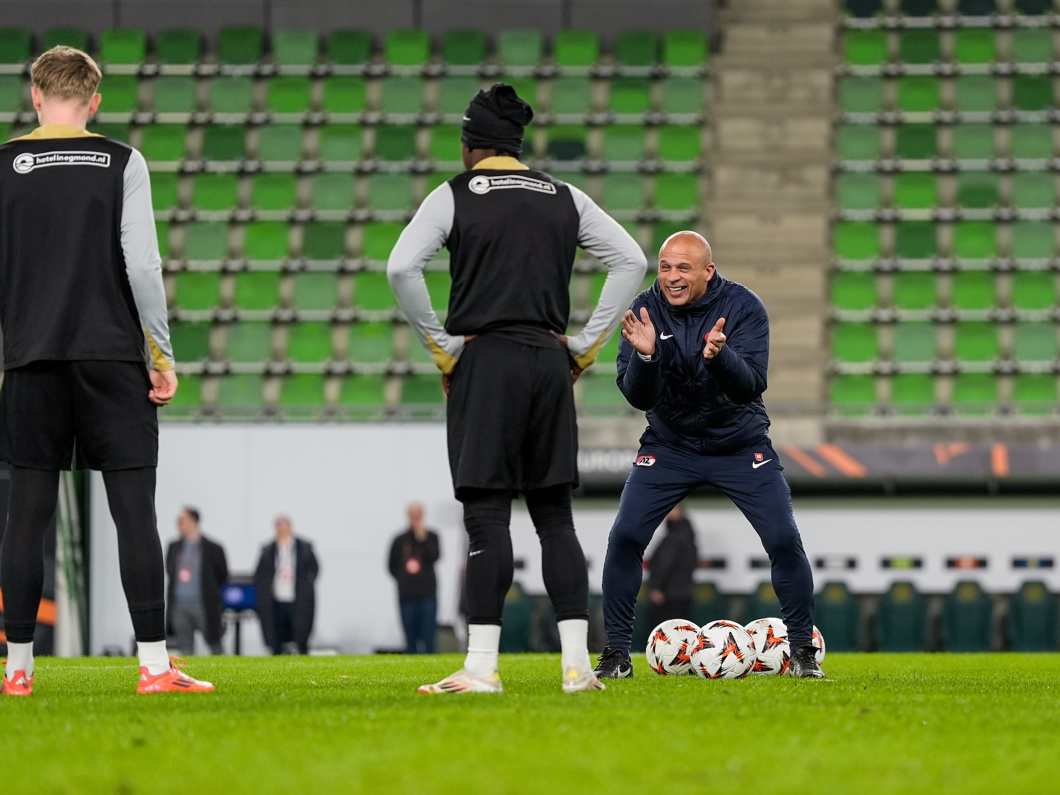 AZ trainde woensdagavond nog een laatste keer richting de wedstrijd van donderdag. Oud-AZ'er Julian Jenner kwam nog even langs om een kijkje te nemen. -