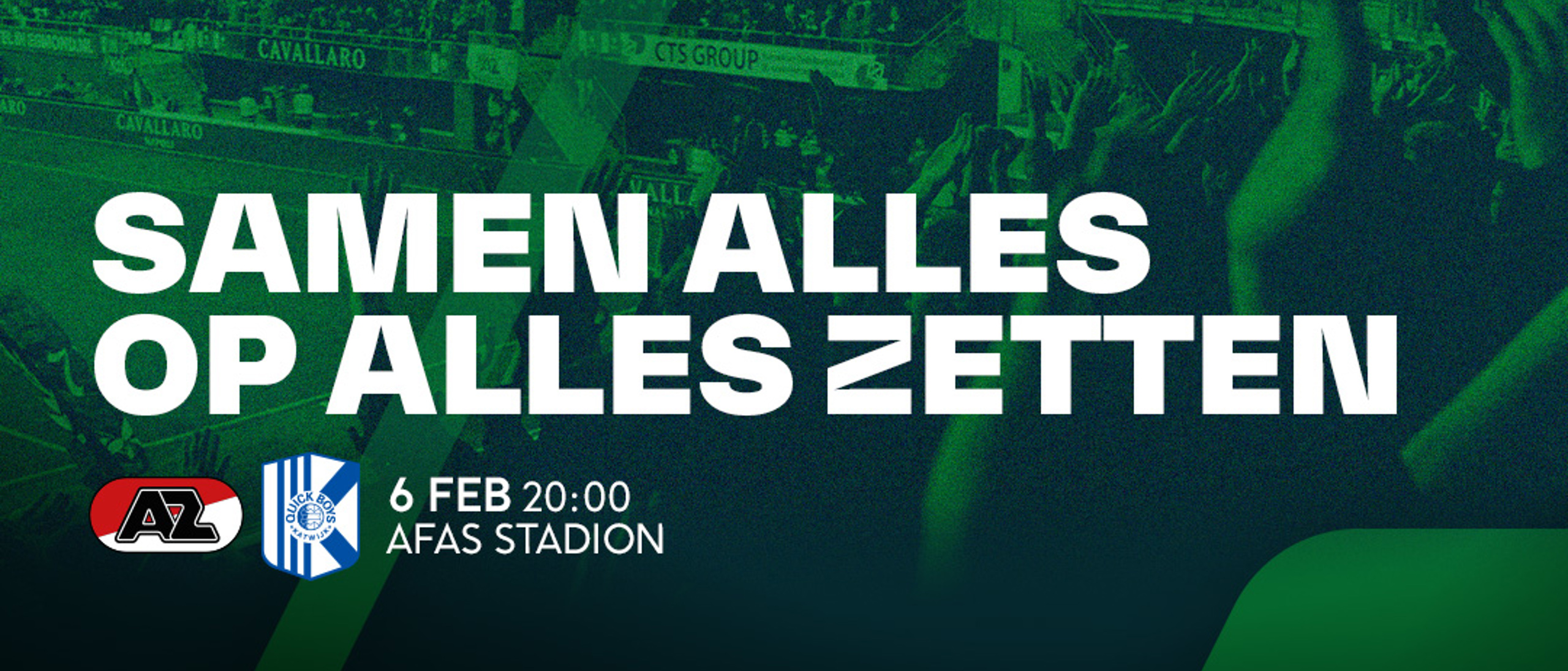 ALKMAAR- In de strijd om de bekerwinst hebben wij jouw support keihard nodig. Samen zetten we alles op alles om dit doel te bereiken. Donderdag 6 februari strijden we in de kwartfinale tegen Quick Boys. We roepen alle AZ-fans op om onze spelers te supporten en naar het AFAS Stadion te komen, want alleen samen zetten we de volgende stap naar onze vijfde KNVB Beker! Losse tickets zijn vanaf nu beschikbaar.