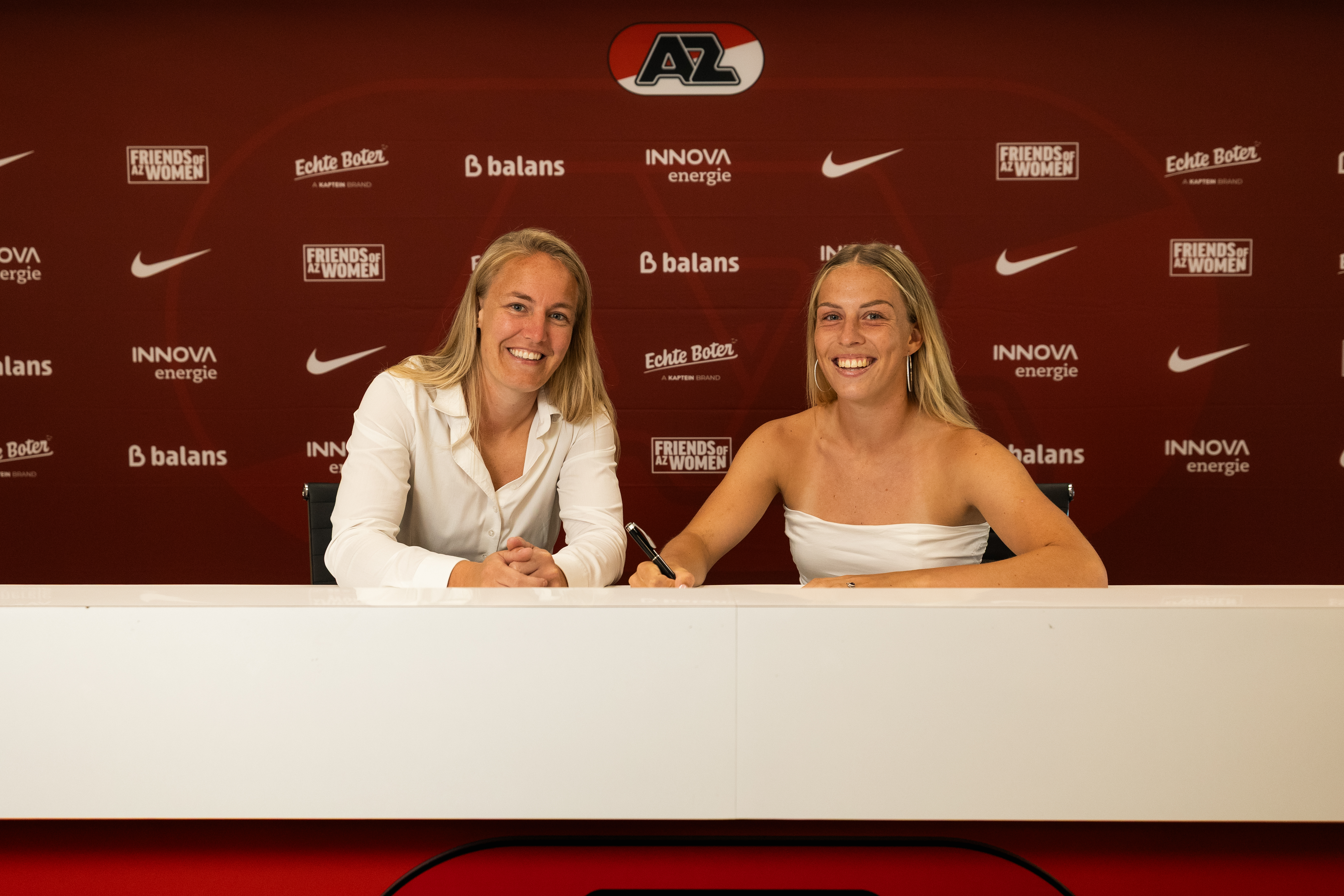 ALKMAAR- Camie Mol heeft in het AFAS Stadion haar handtekening gezet onder een nieuwe verbintenis bij AZ. Hiermee blijft de 23-jarige vleugelverdedigster tot medio 2027 verbonden aan de Alkmaarse club.