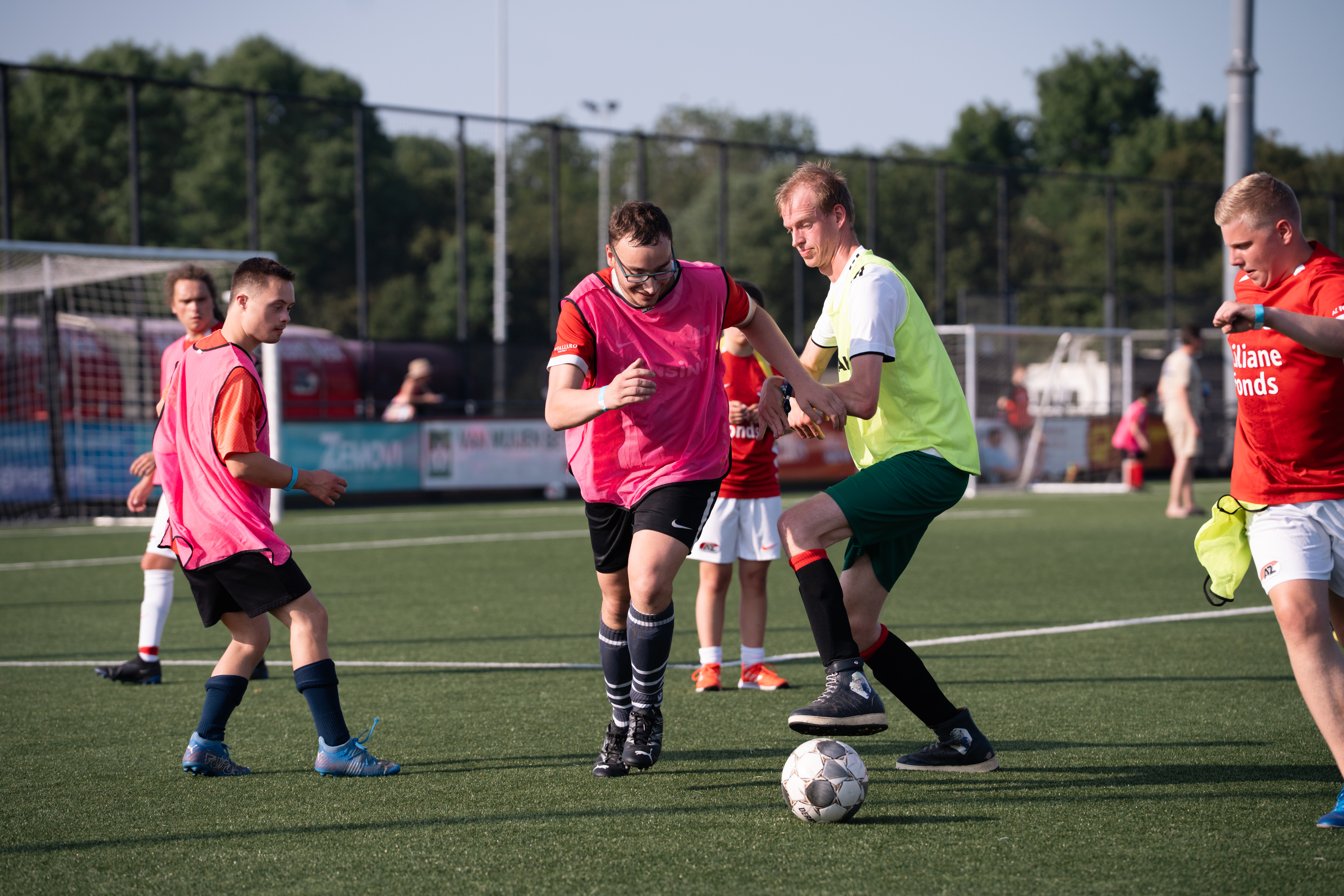 ZAANSTAD- Het AFAS Trainingscomplex stond vrijdag 13 juni volledig in het teken van sportiviteit, plezier en inclusie. Tijdens de G-sportdag, georganiseerd door de AZ Foundation in samenwerking met Sport-Z, genoten maar liefst 75 sporters met een beperking van een gevarieerd programma vol voetbalactiviteiten. Onder meer AZ-ambassadeur Ron Vlaar en speelster Floor Spaan van AZ Vrouwen waren aanwezig om de deelnemers een onvergetelijke avond te bezorgen.