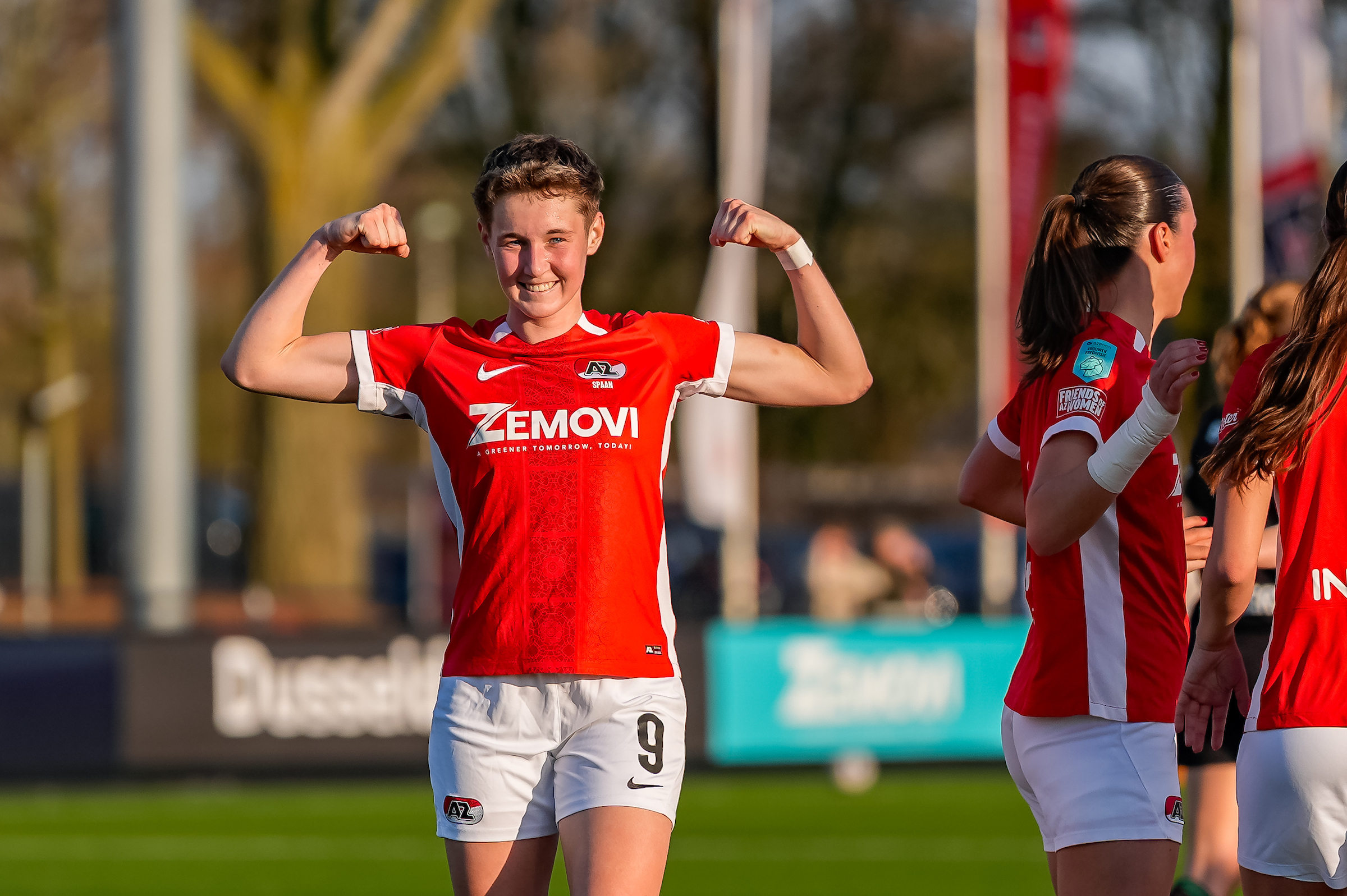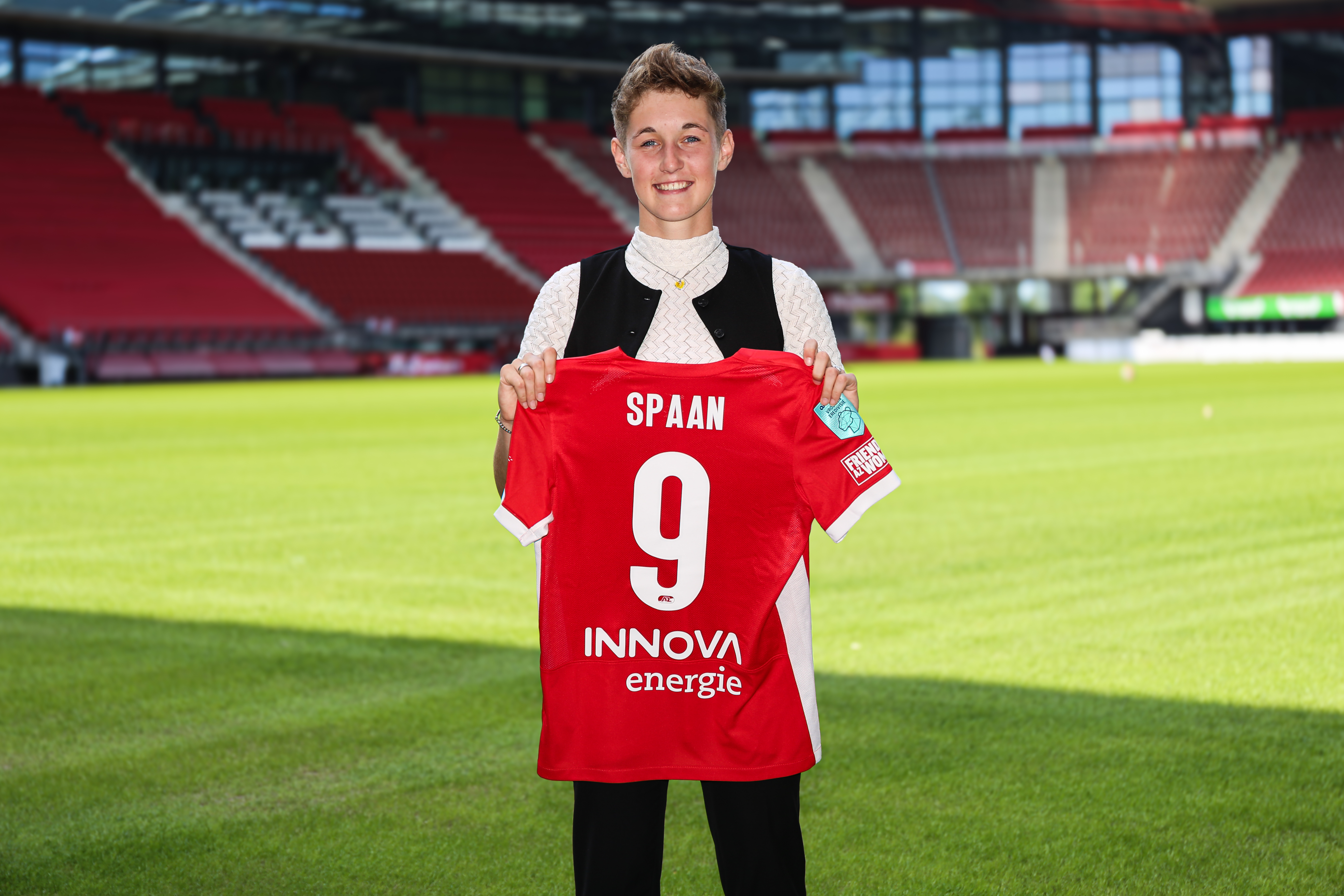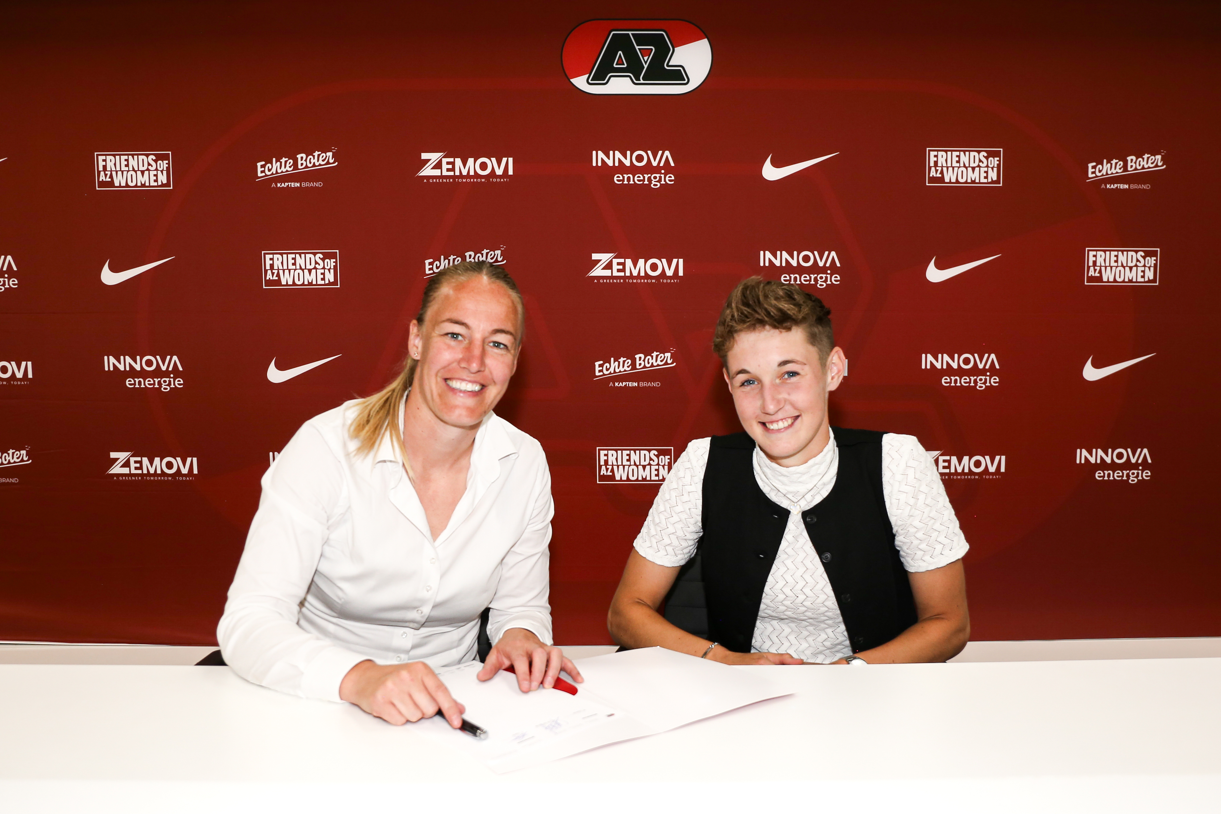 ALKMAAR- Floor Spaan heeft vrijdagmiddag haar handtekening gezet onder een nieuwe verbintenis bij AZ. De 22-jarige spits ligt nu tot medio 2026 vast bij de Alkmaarse club.