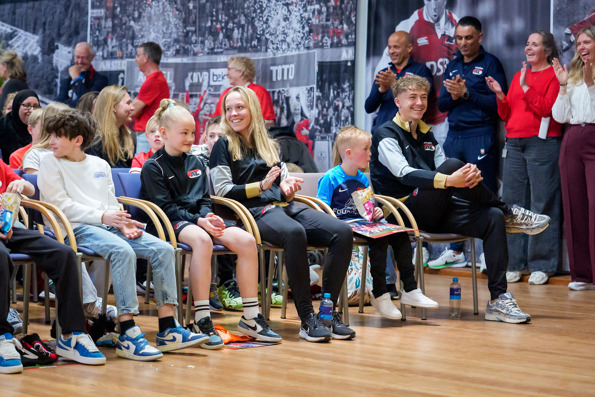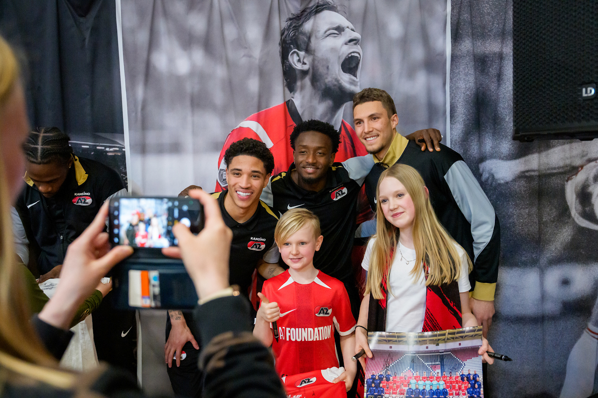 Het bezoek werd afgesloten in de Aletta Jacobszaal, waar een speciaal moment werd georganiseerd voor de kinderen. Hier maakten zij namelijk een bijzondere opkomst mee, begeleid door de AZ-tune, net zoals in het stadion en op het trainingscomplex. Vervolgens namen hoofdtrainer Maarten Martens, hoofdtrainer van de vrouwen Wouter de Vogel, Ginia Caprino, Jordy Clasie, teammanager Stefanie van der Gragt, Bruno Martins Indi en Camie Mol plaats achter een lange tafel voor een persconferentie. De overige spelers en speelsters gingen tussen de kinderen zitten, waarna zij de kans kregen om vragen te stellen aan de panelleden.