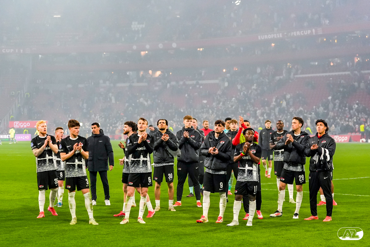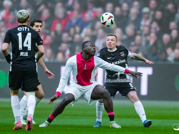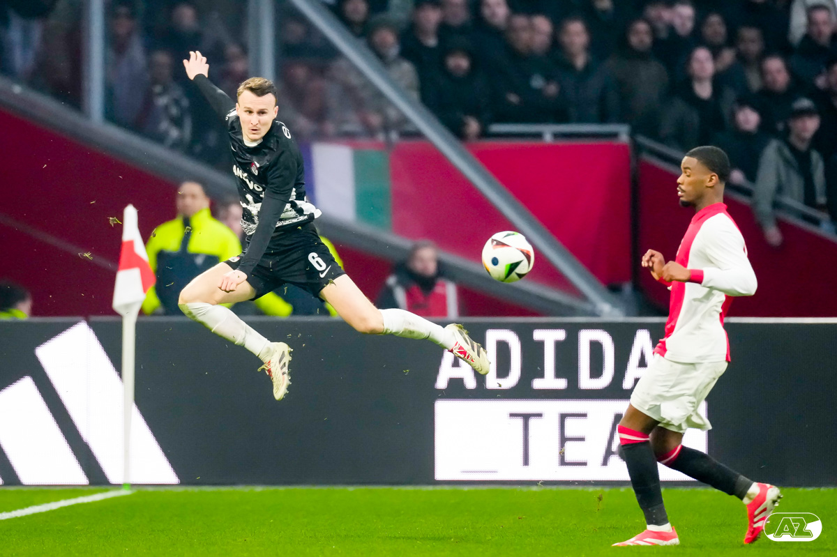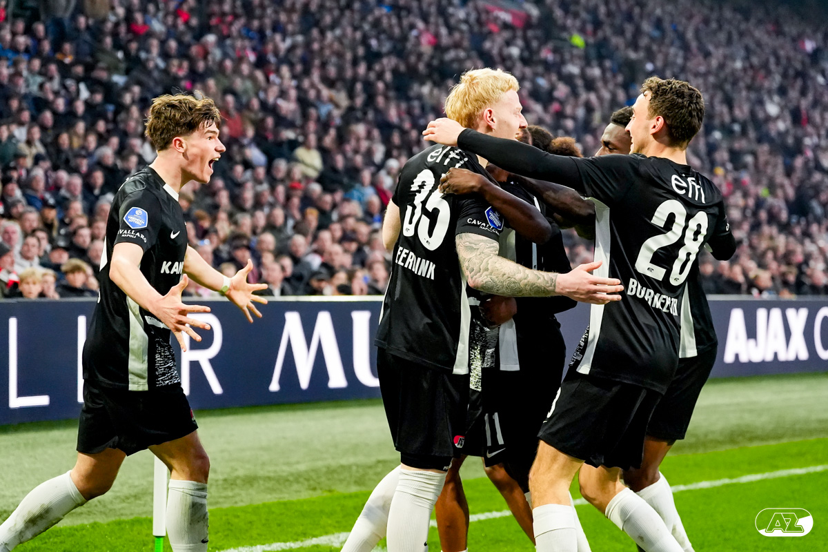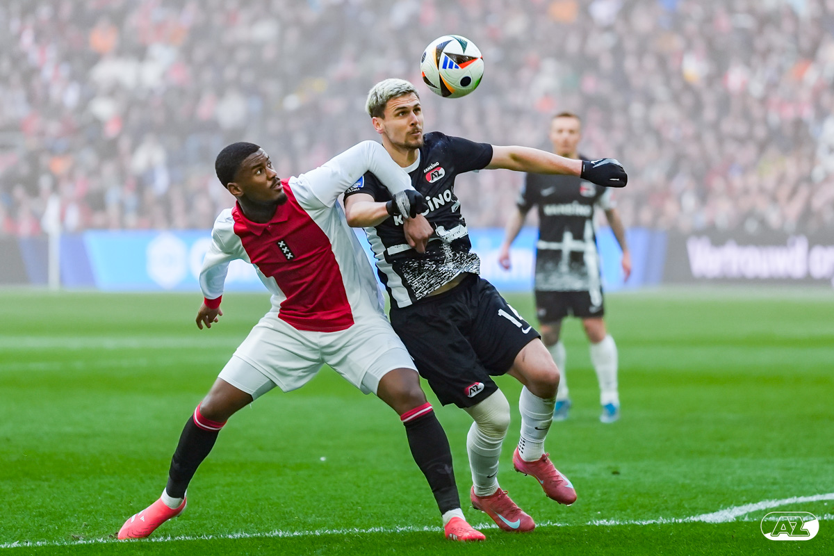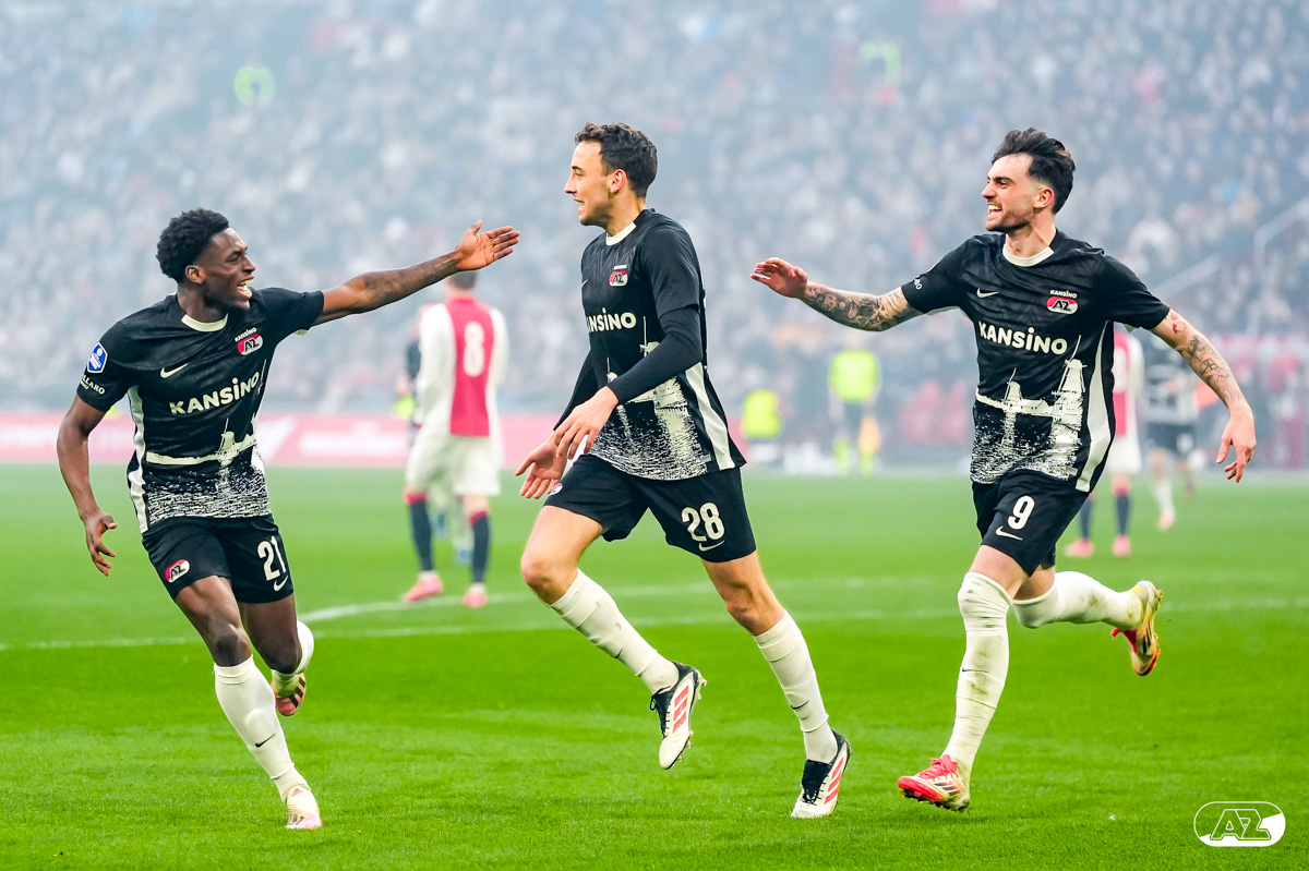 AMSTERDAM- AZ heeft zondagmiddag een gelijkspel behaald tegen koploper Ajax. In een intense tweede helft namen de Alkmaarders tweemaal de leiding, maar slaagden er met tien tegen tien niet in om de volle winst binnen te halen: 2-2. Bekijk hier de wedstrijd in beeld (foto's van Ed van de Pol).