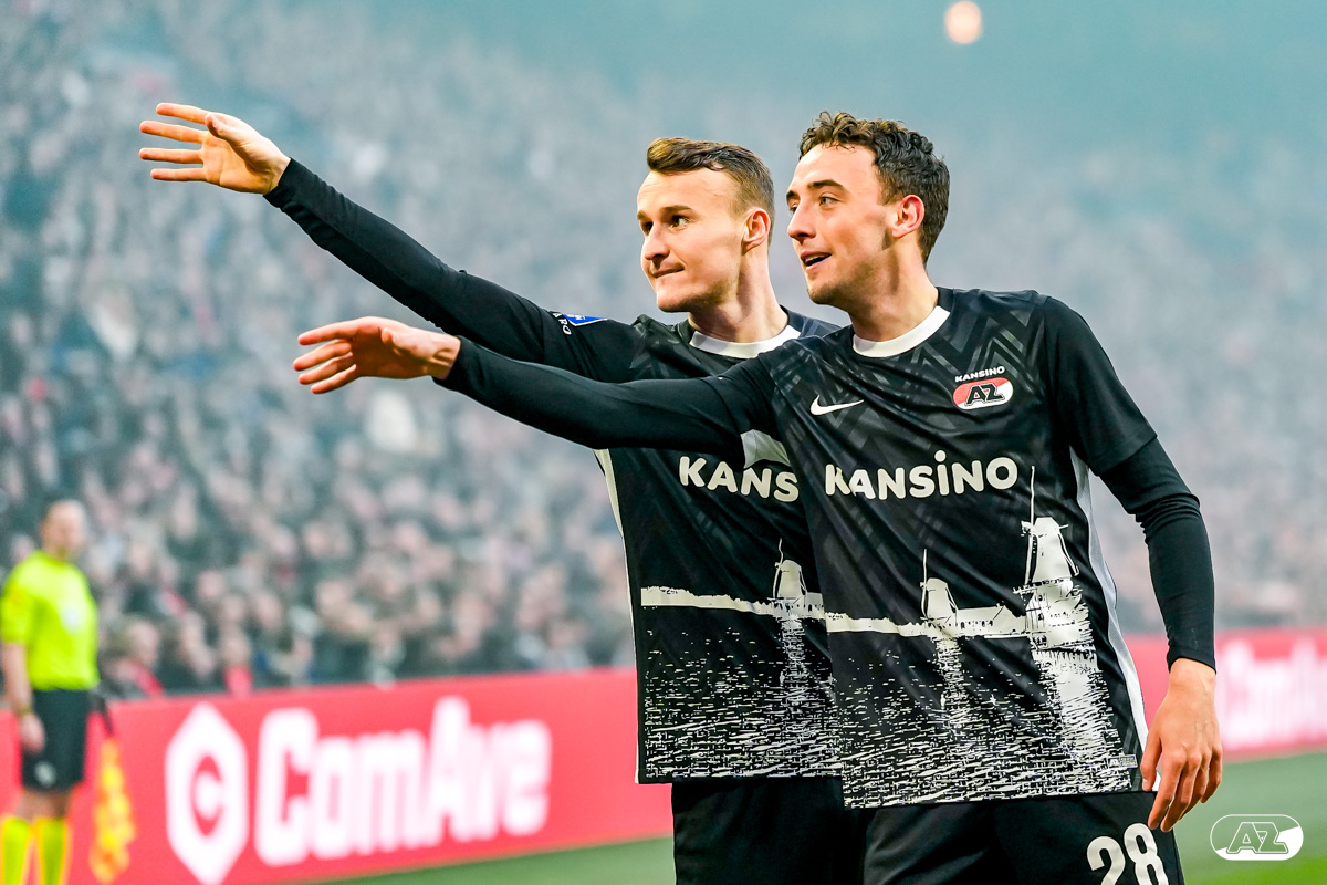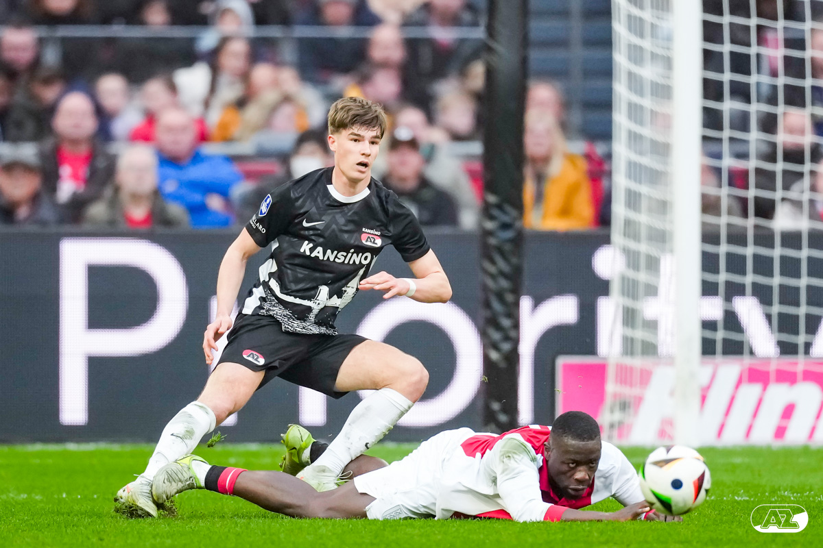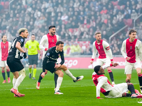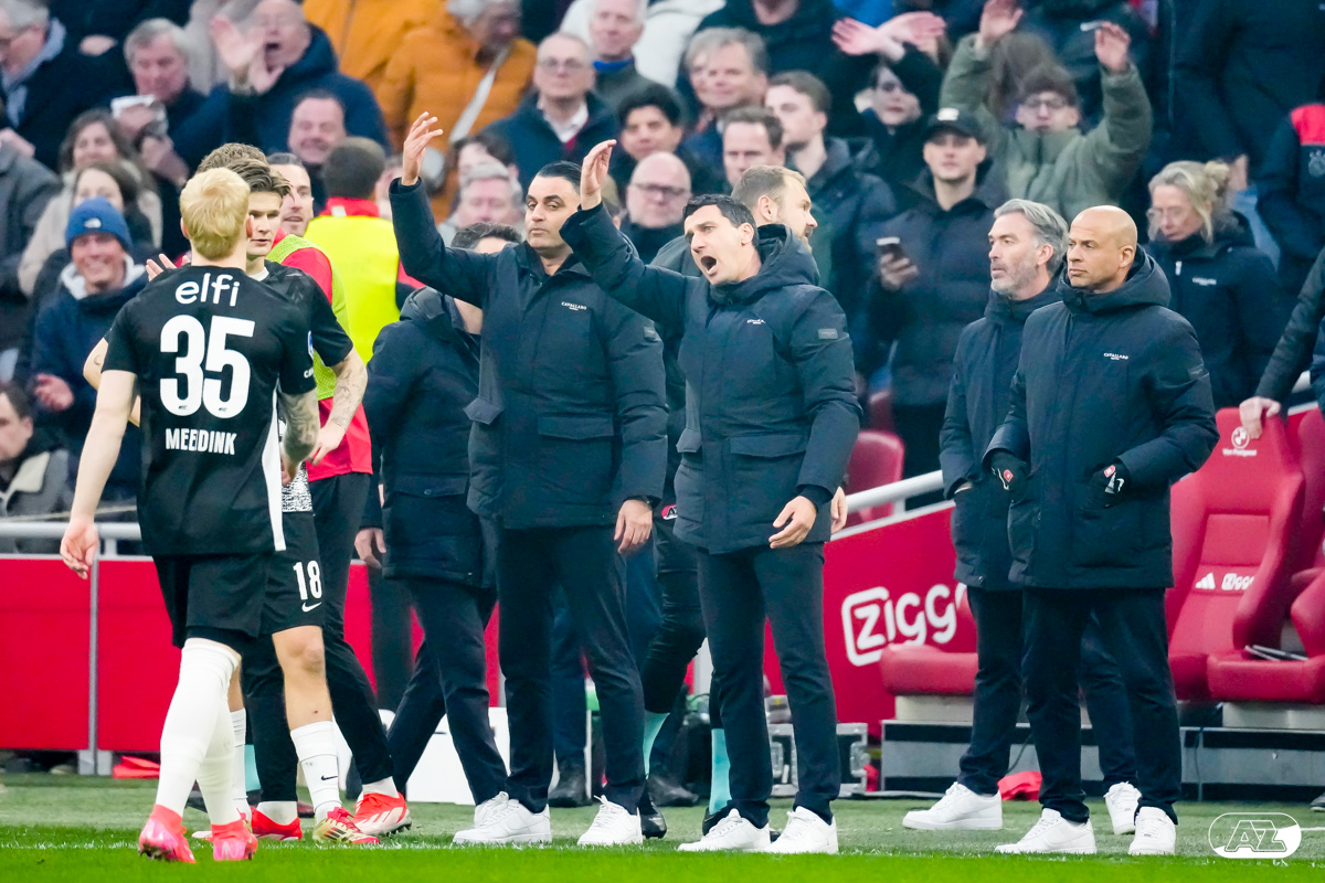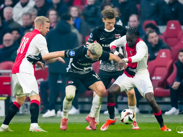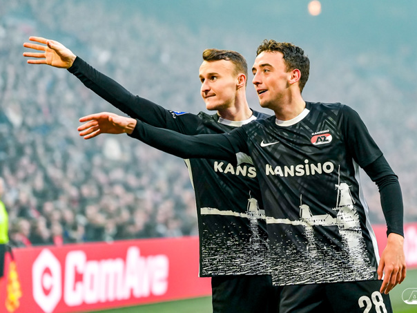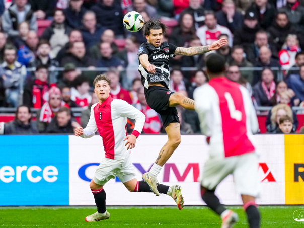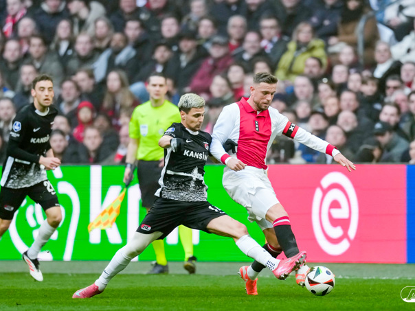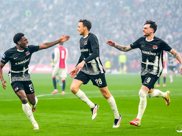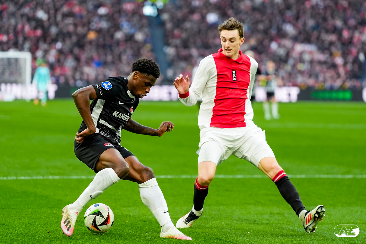 AMSTERDAM- AZ heeft zondagmiddag een gelijkspel behaald tegen koploper Ajax. In een intense tweede helft namen de Alkmaarders tweemaal de leiding, maar slaagden er met tien tegen tien niet in om de volle winst binnen te halen: 2-2. Bekijk hier de wedstrijd in beeld (foto's van Ed van de Pol).
