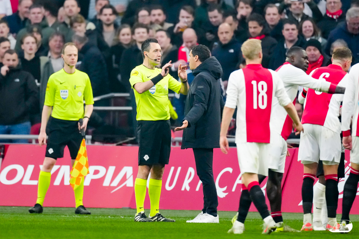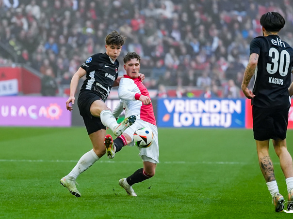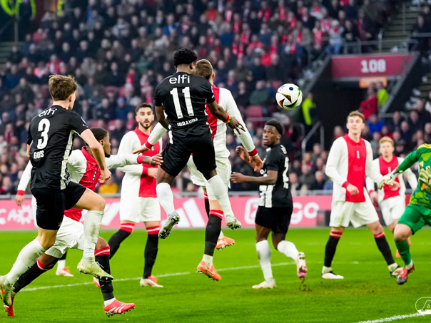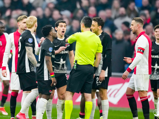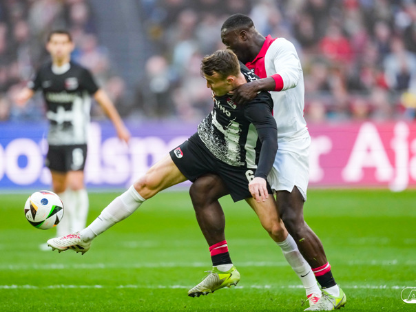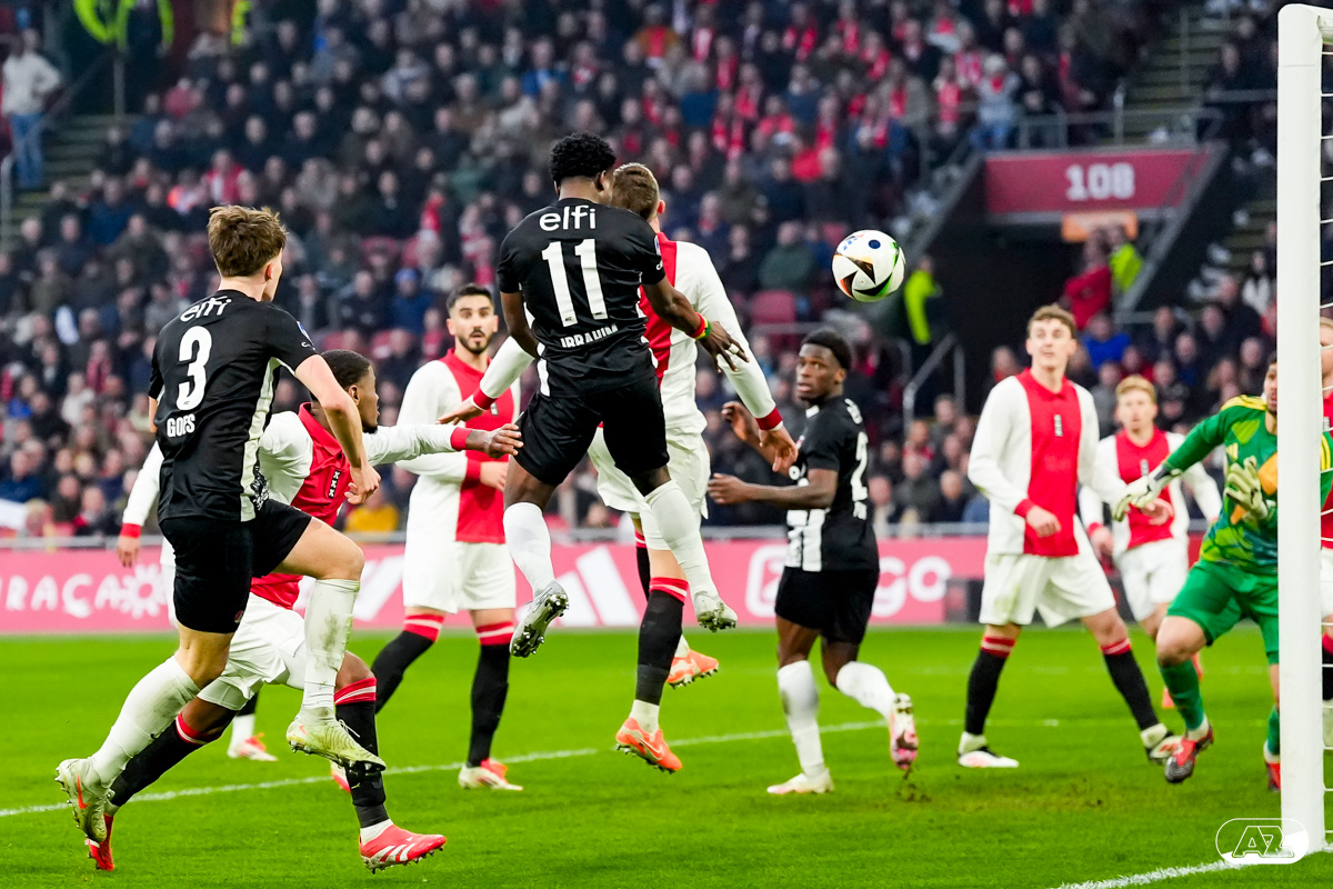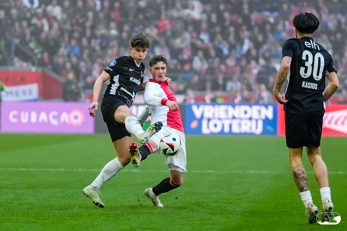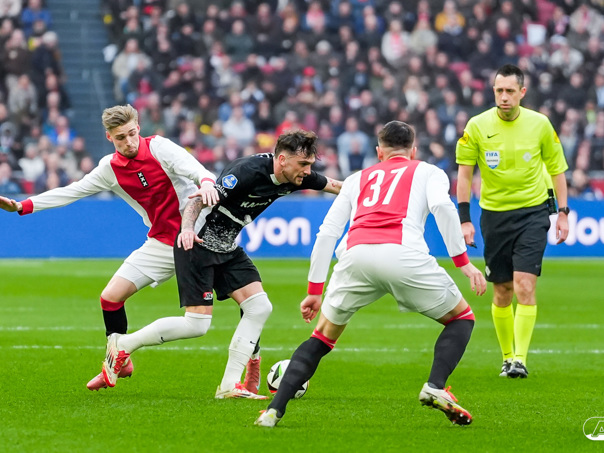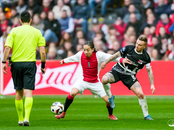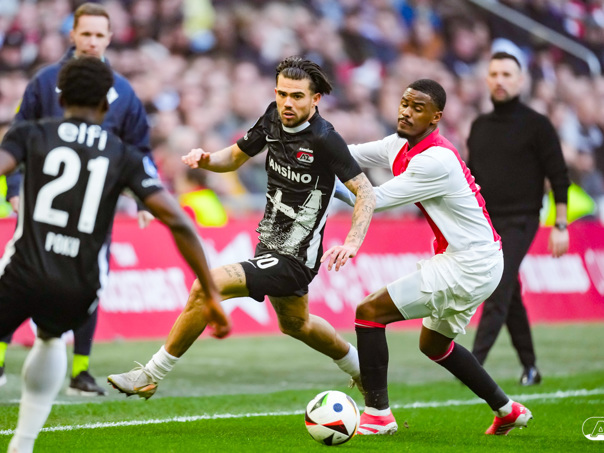 AMSTERDAM- AZ heeft zondagmiddag een gelijkspel behaald tegen koploper Ajax. In een intense tweede helft namen de Alkmaarders tweemaal de leiding, maar slaagden er met tien tegen tien niet in om de volle winst binnen te halen: 2-2. Bekijk hier de wedstrijd in beeld (foto's van Ed van de Pol).