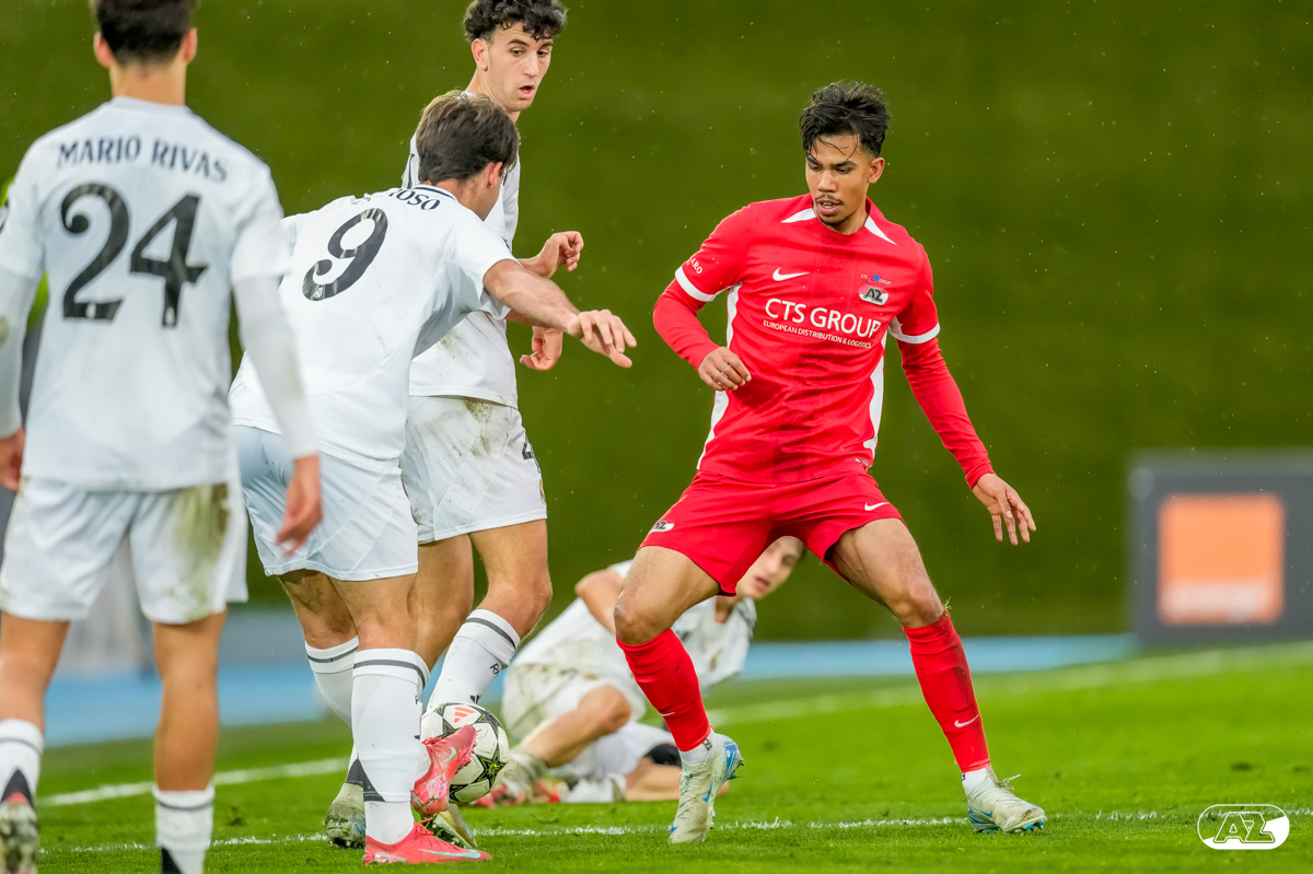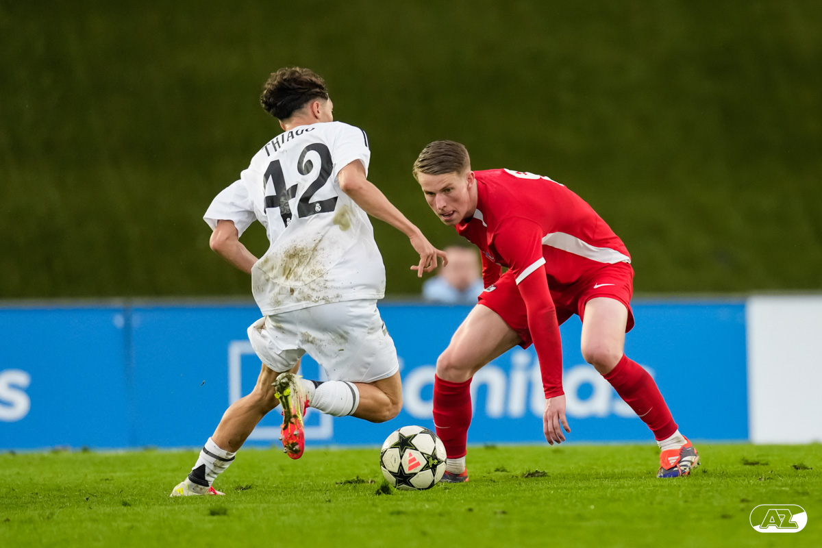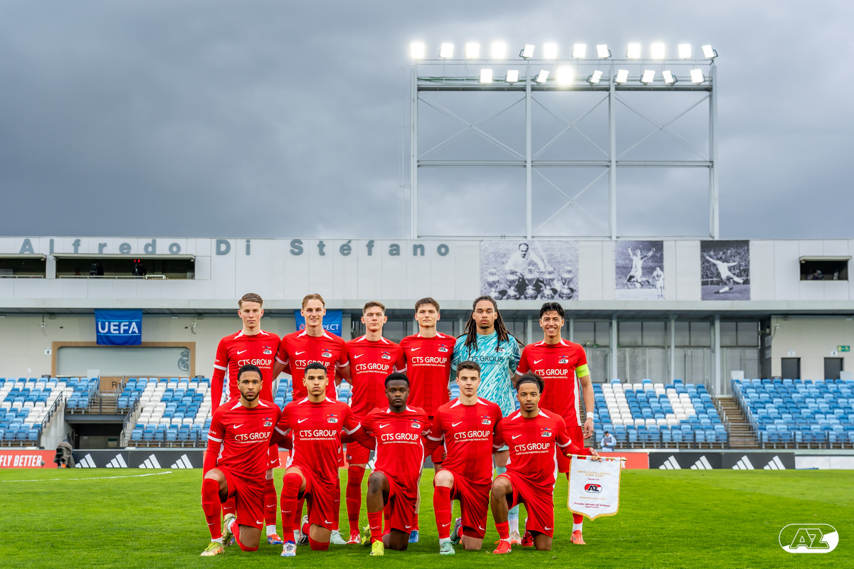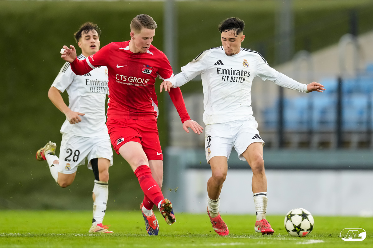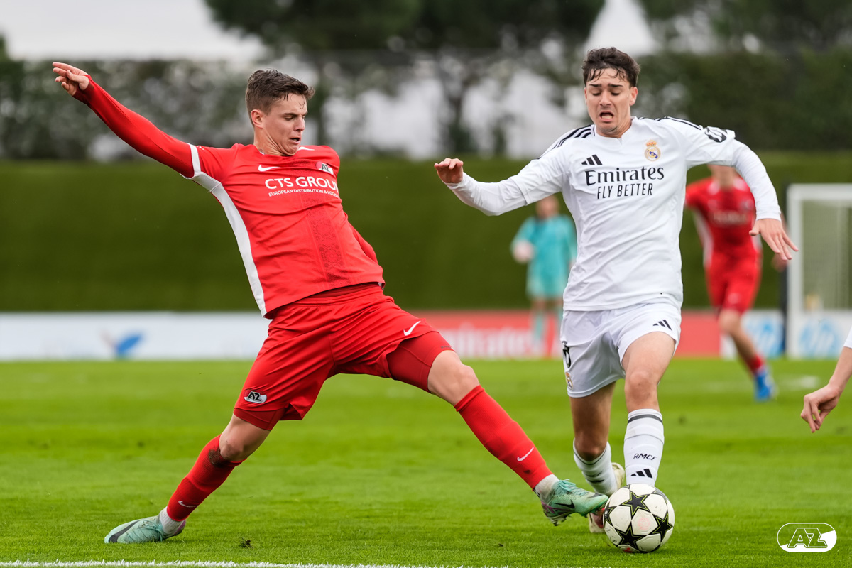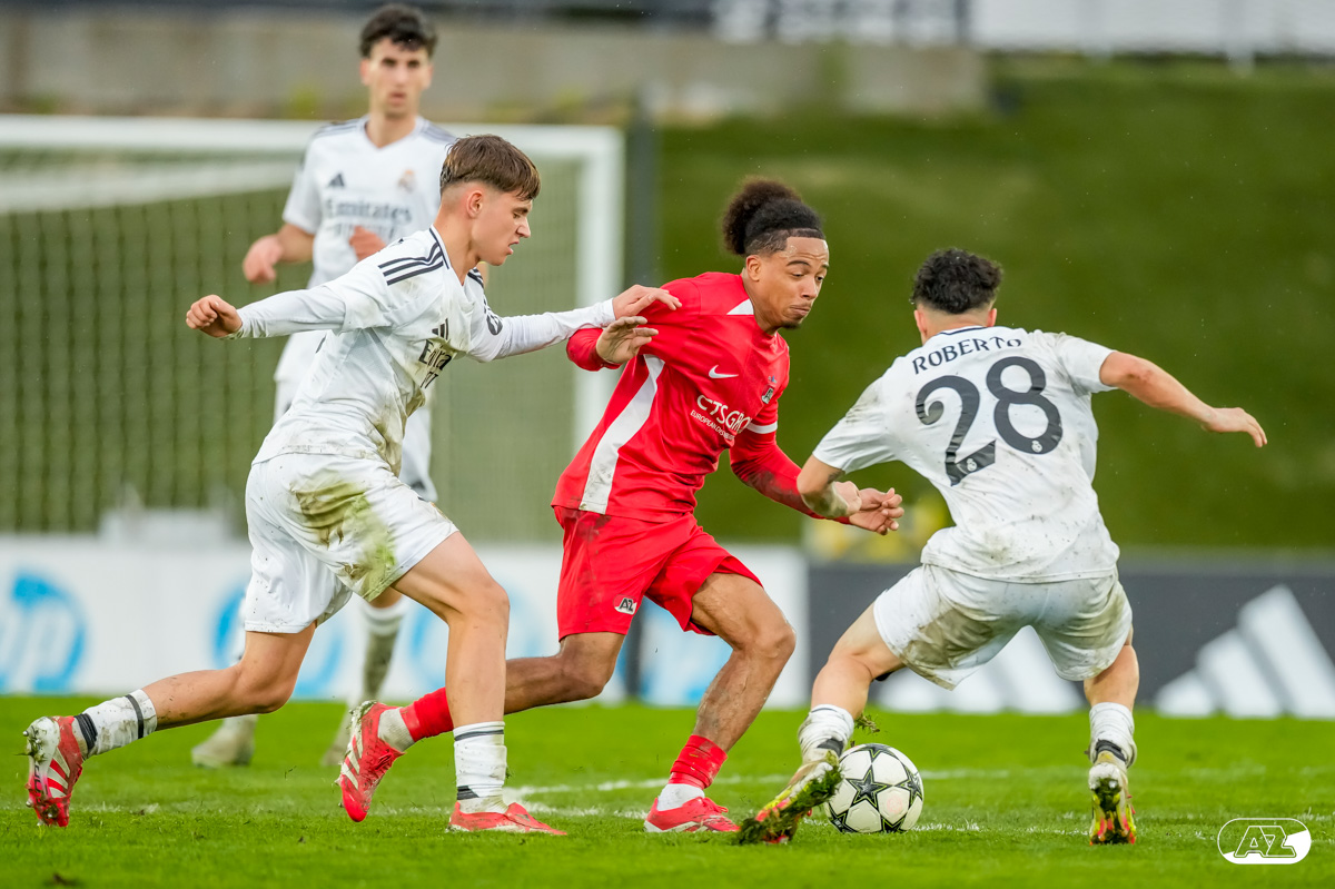 MADRID- AZ Onder 19 plaatste zich woensdagmiddag voor de kwartfinale van de UEFA Youth League. In het Estadio Alfredo Di Stéfano werd het Spaanse Real Madrid met 0-2 verslagen. Wassim Bouziane en Anthony Smits waren trefzeker namens de Alkmaarders. De overwinning in beeld. (Foto's: Ed van de Pol).