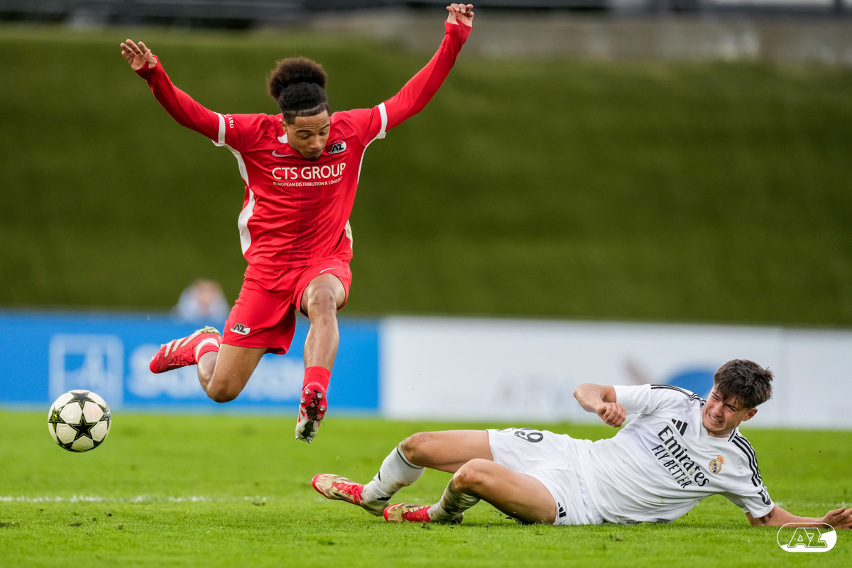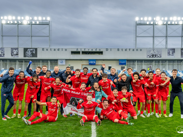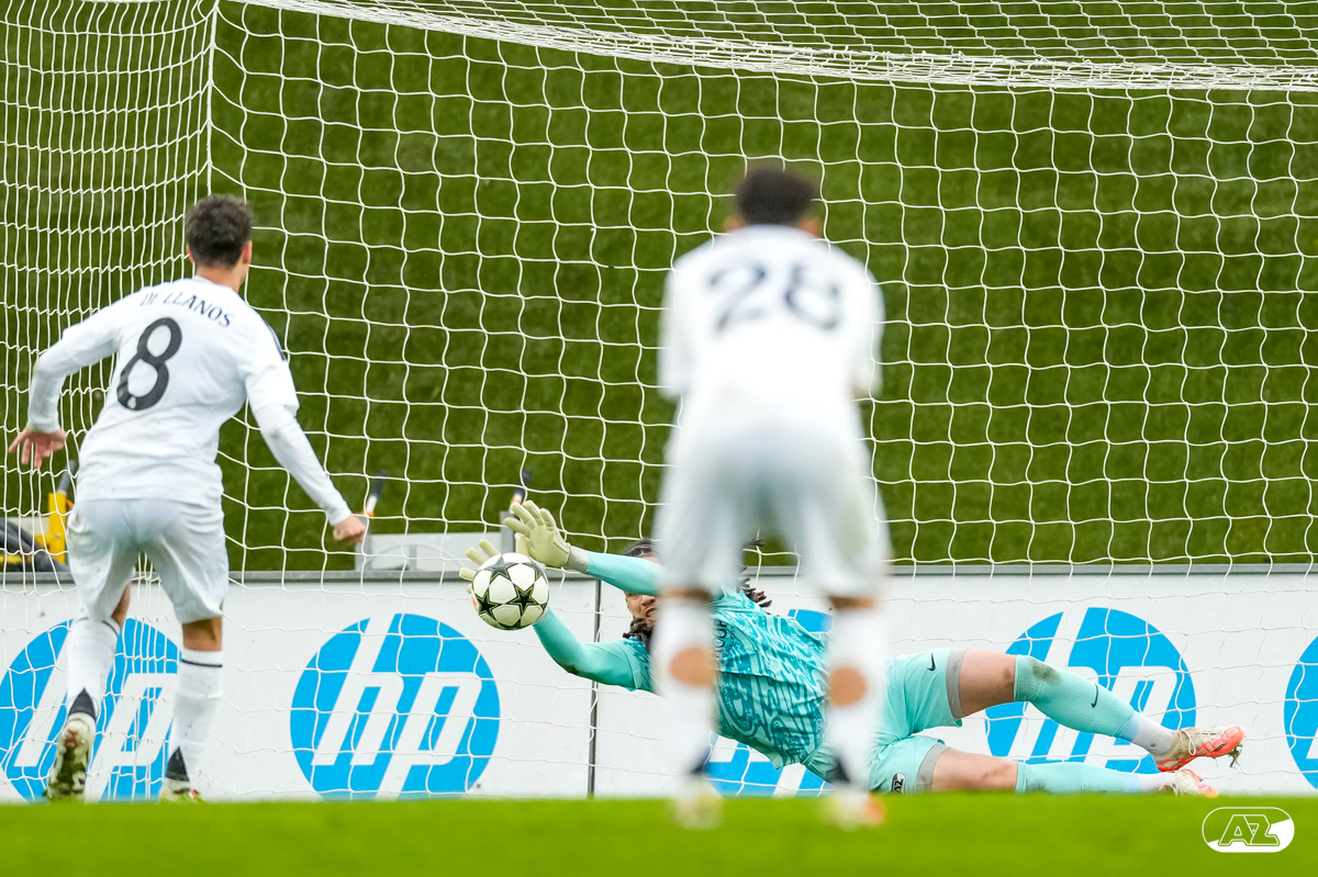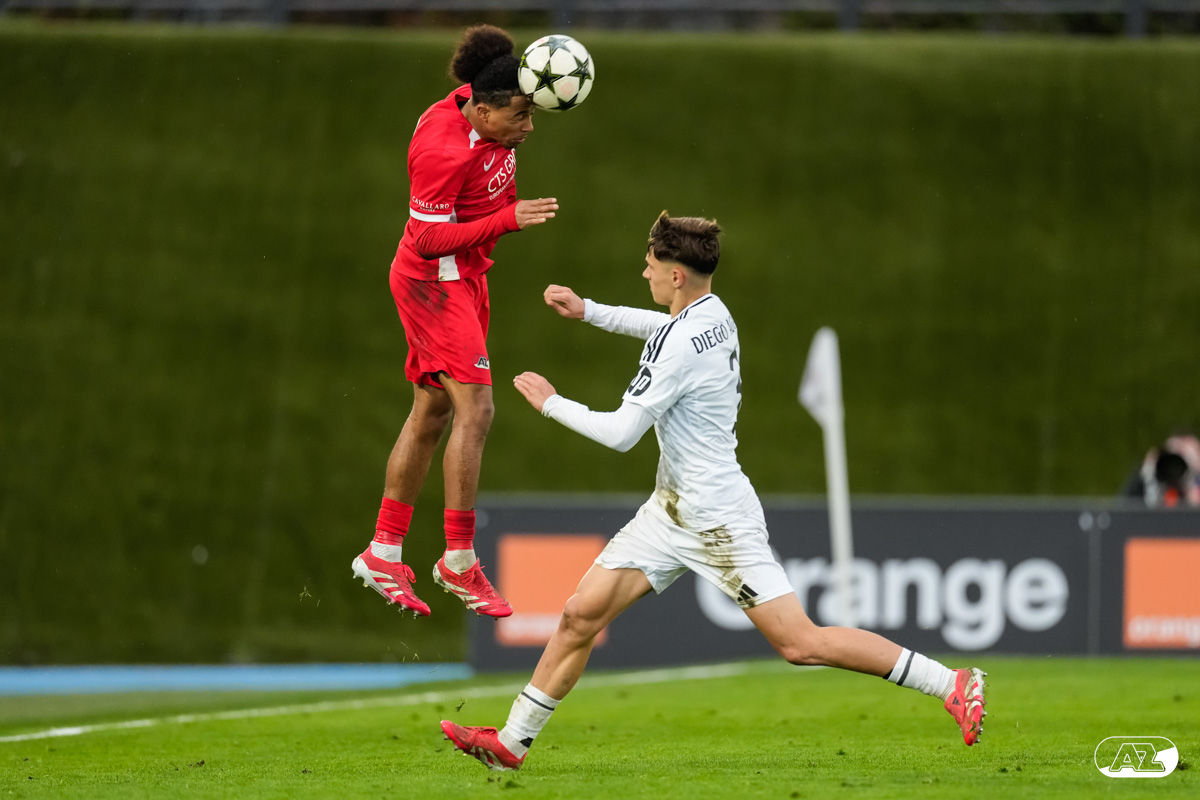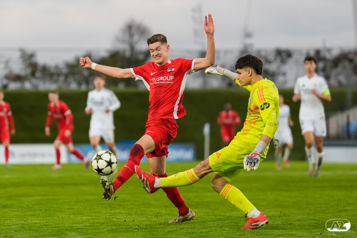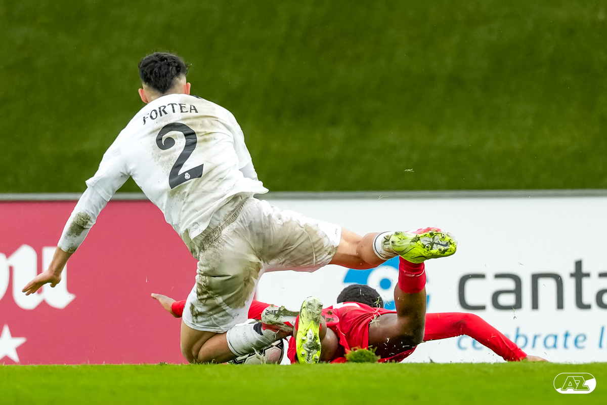 MADRID- AZ Onder 19 plaatste zich woensdagmiddag voor de kwartfinale van de UEFA Youth League. In het Estadio Alfredo Di Stéfano werd het Spaanse Real Madrid met 0-2 verslagen. Wassim Bouziane en Anthony Smits waren trefzeker namens de Alkmaarders. De overwinning in beeld. (Foto's: Ed van de Pol).