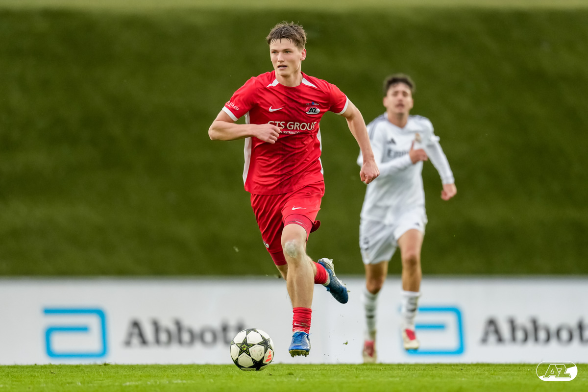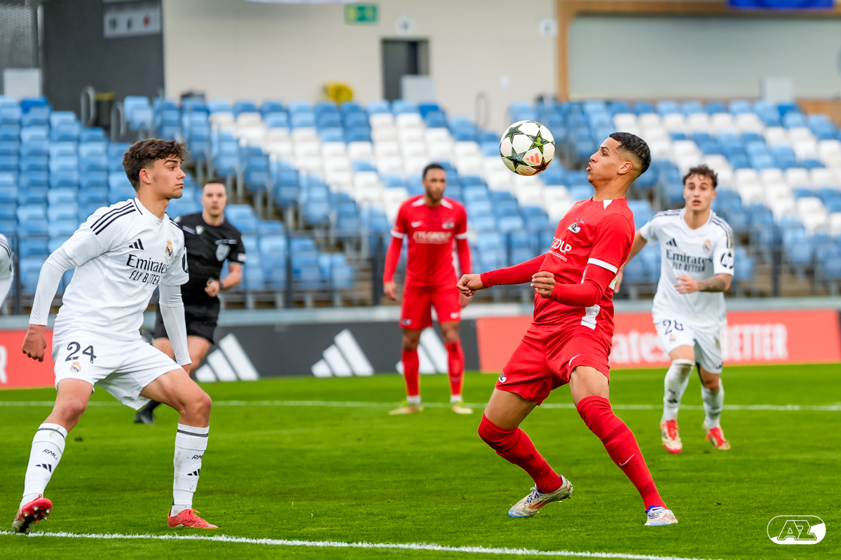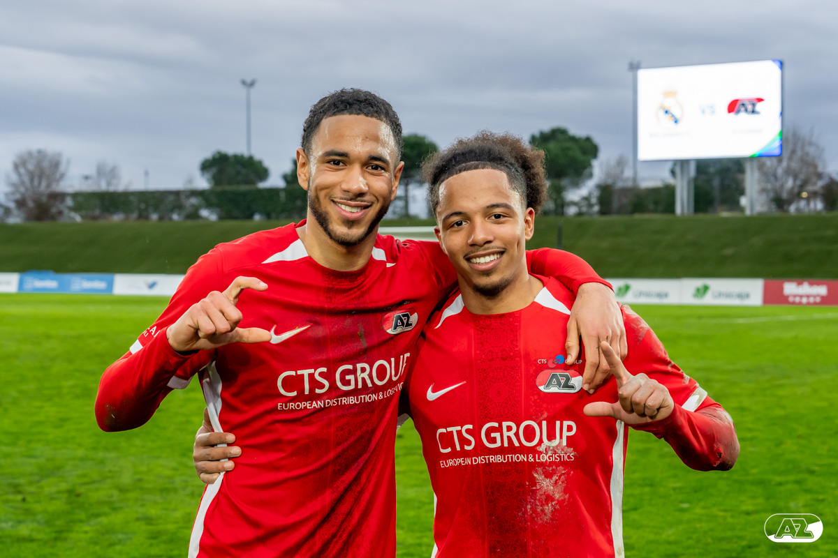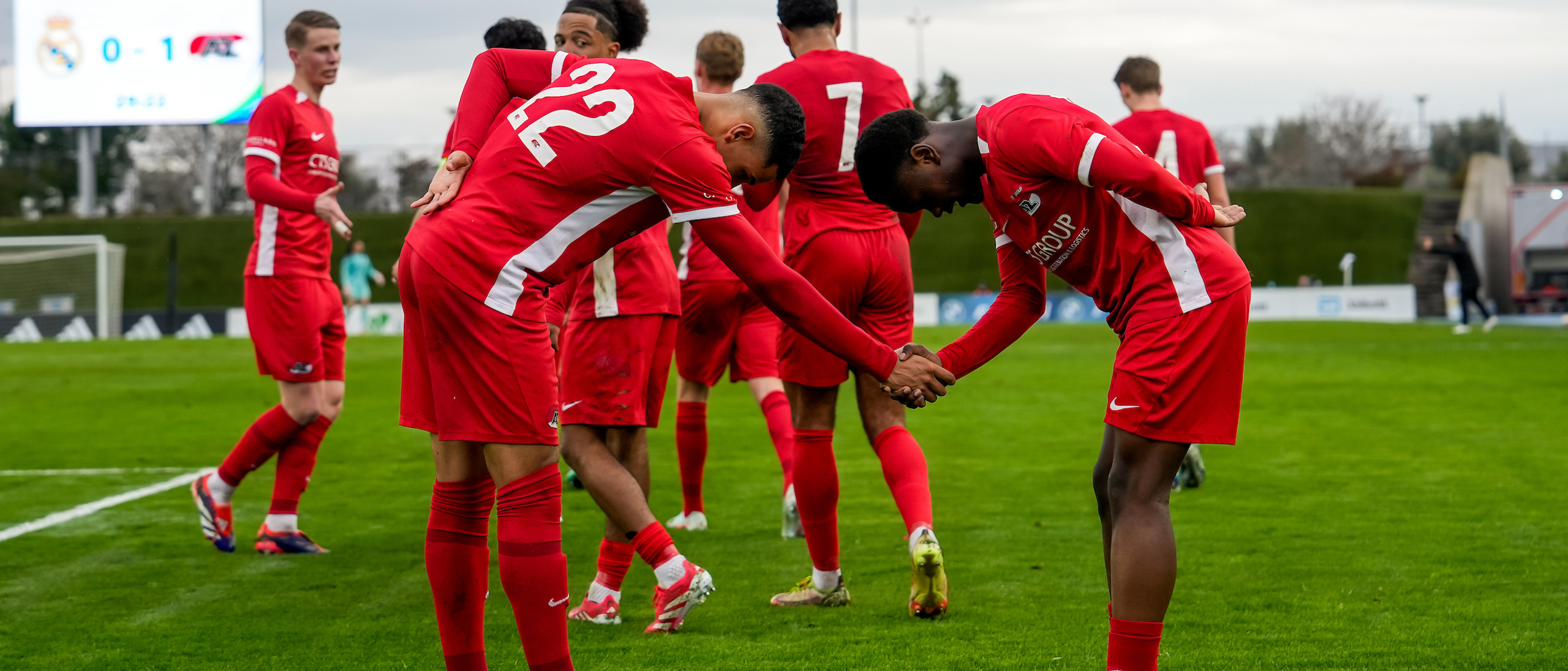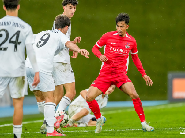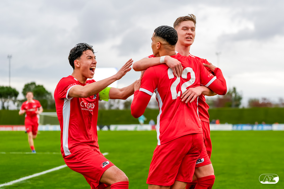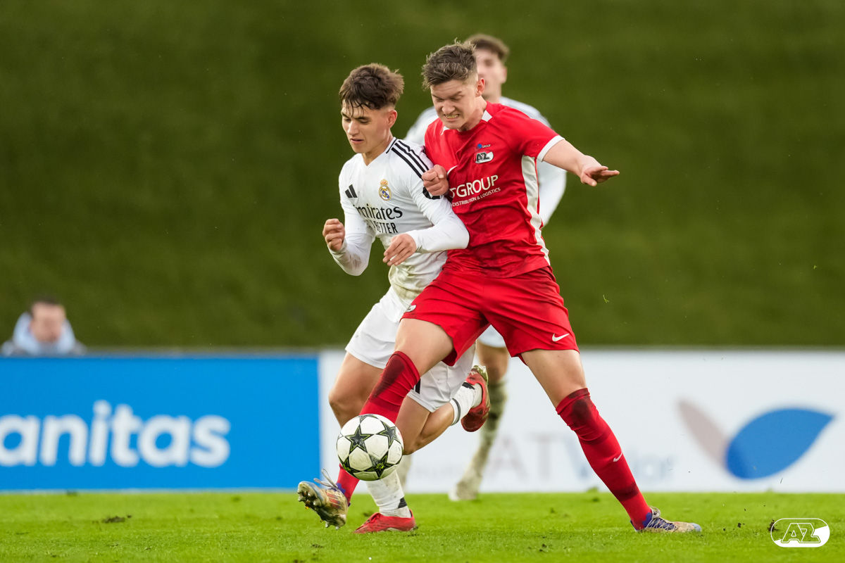 MADRID- AZ Onder 19 plaatste zich woensdagmiddag voor de kwartfinale van de UEFA Youth League. In het Estadio Alfredo Di Stéfano werd het Spaanse Real Madrid met 0-2 verslagen. Wassim Bouziane en Anthony Smits waren trefzeker namens de Alkmaarders. De overwinning in beeld. (Foto's: Ed van de Pol).