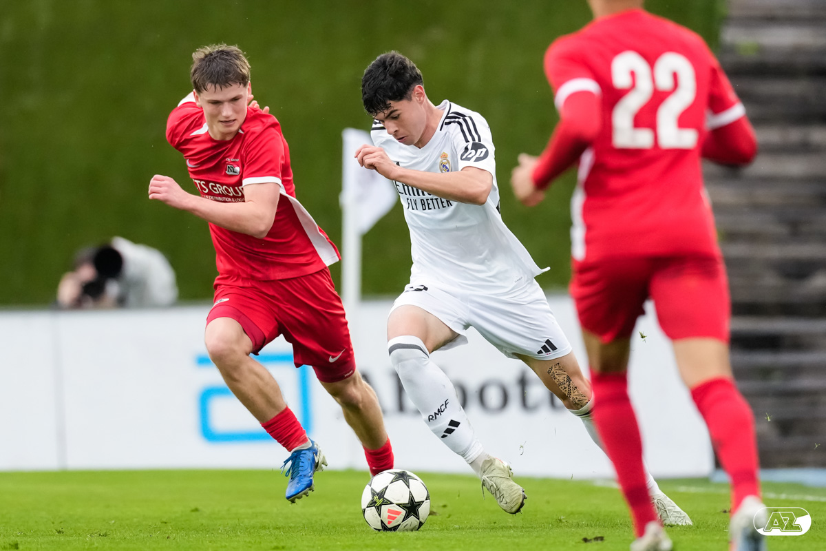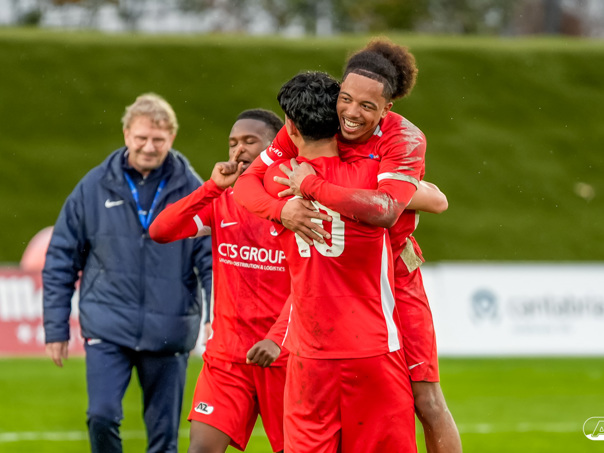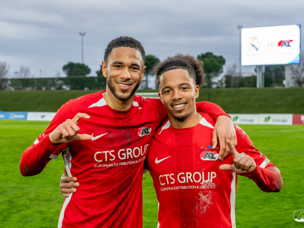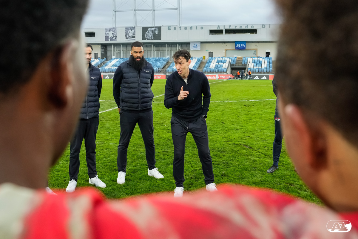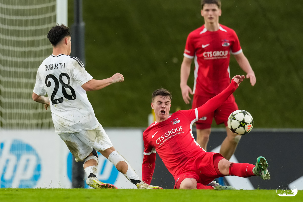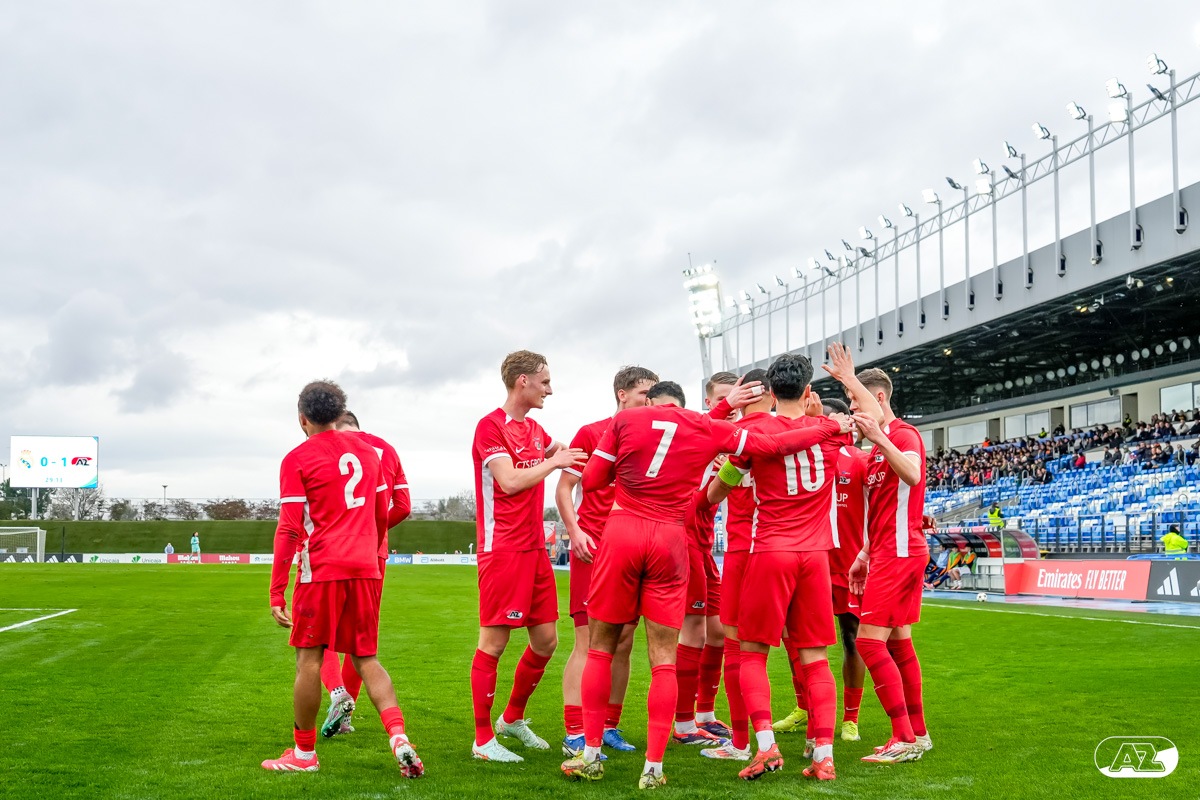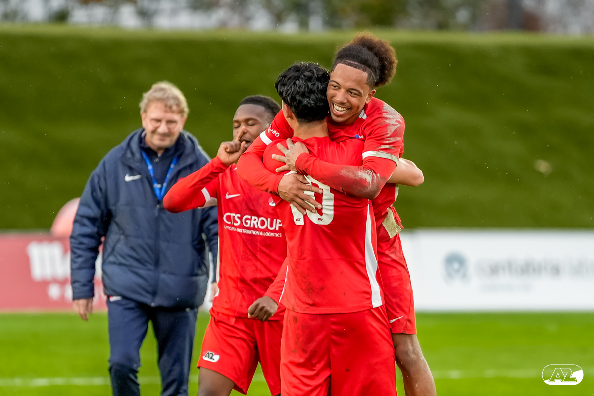 MADRID- AZ Onder 19 plaatste zich woensdagmiddag voor de kwartfinale van de UEFA Youth League. In het Estadio Alfredo Di Stéfano werd het Spaanse Real Madrid met 0-2 verslagen. Wassim Bouziane en Anthony Smits waren trefzeker namens de Alkmaarders. De overwinning in beeld. (Foto's: Ed van de Pol).