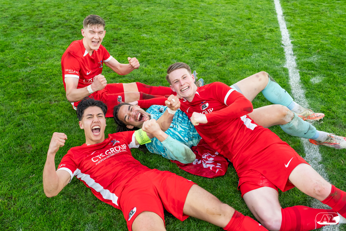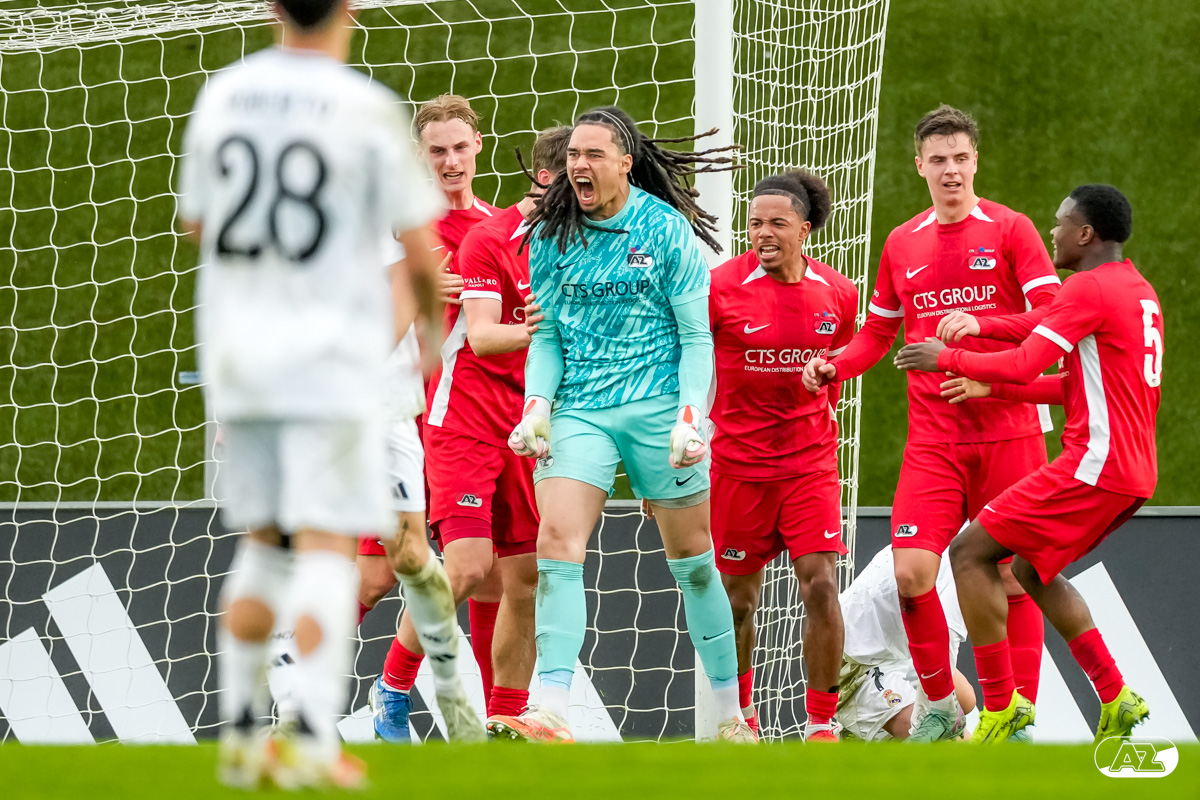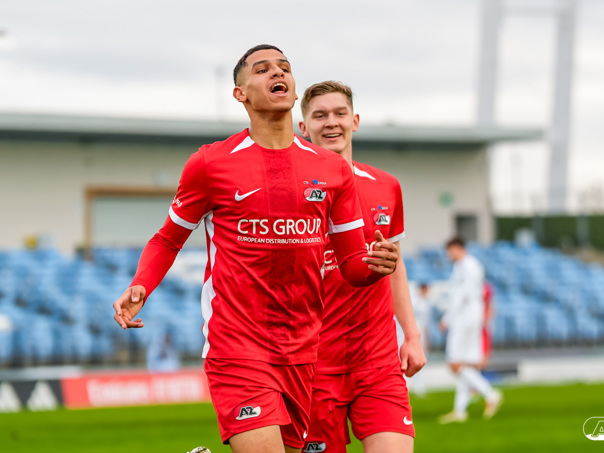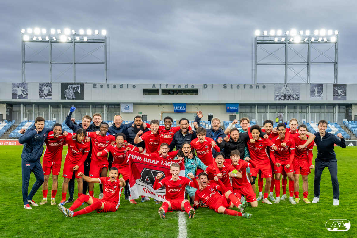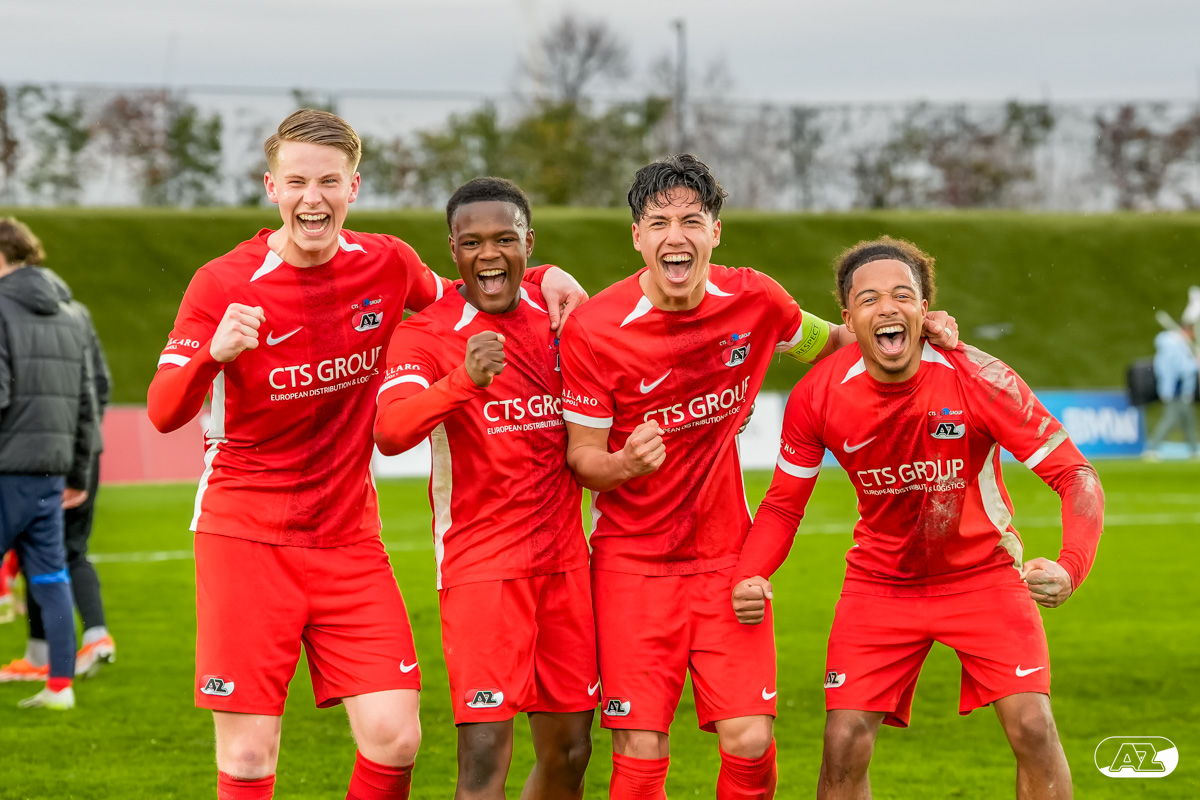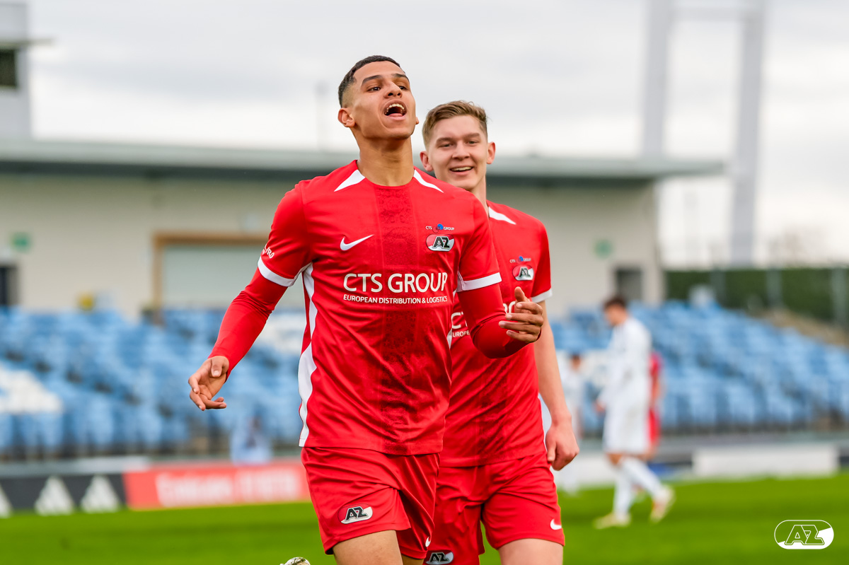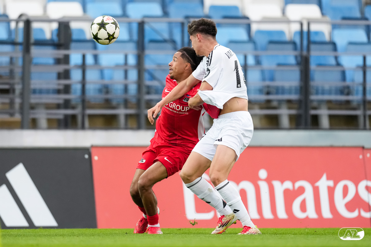 MADRID- AZ Onder 19 plaatste zich woensdagmiddag voor de kwartfinale van de UEFA Youth League. In het Estadio Alfredo Di Stéfano werd het Spaanse Real Madrid met 0-2 verslagen. Wassim Bouziane en Anthony Smits waren trefzeker namens de Alkmaarders. De overwinning in beeld. (Foto's: Ed van de Pol).